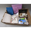 BOX OF FIRST DAY COVERS, STAMPS ETC