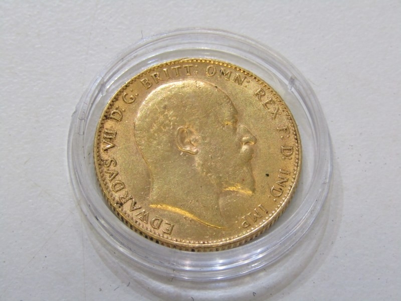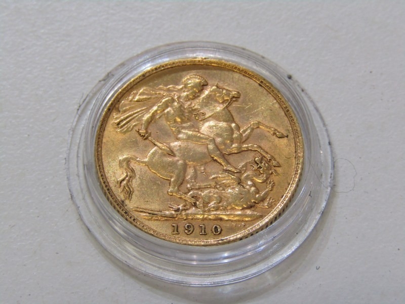 GOLD SOVEREIGN, Edward VII 1910 gold sovereign, higher grade