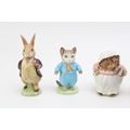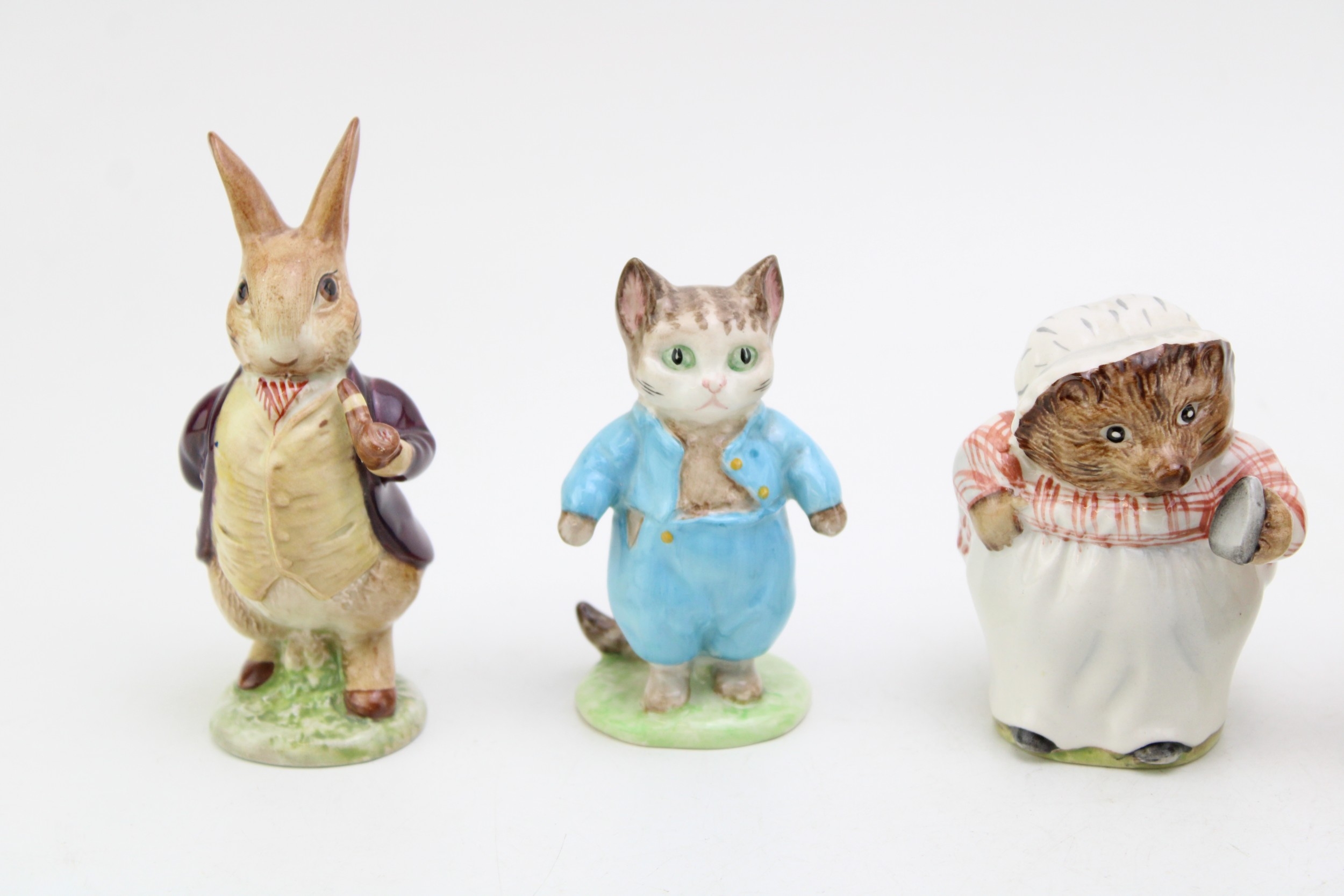 Beswick Beatrix Potter figures, all with gold backstamps, to include Mr Benjamin Bunny, Tom Kitten, Mrs Tiggywinkle, Timmy Tiptoes, Anna Maria and Miss Moppet (6).