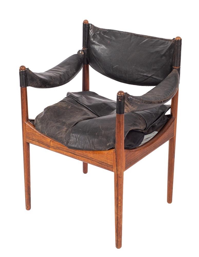 Withdrawn Lot A Danish leather and rosewood Modus armchair designed by Kristian Solmer Vedel for Soren Willadsens, model introduced 1963, 77cm high, 62cm wide. Note: Rosewood CITES sale licence applied for