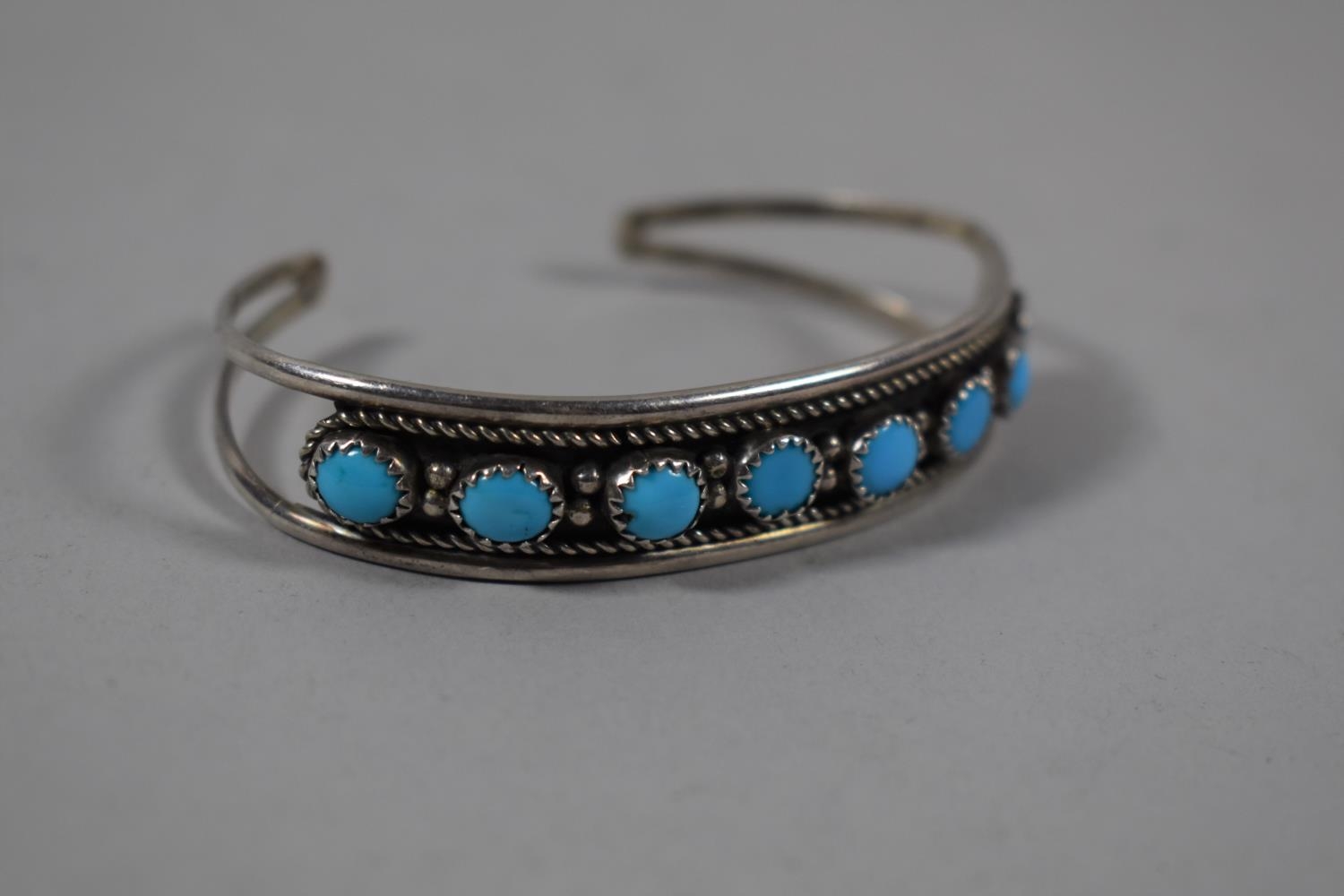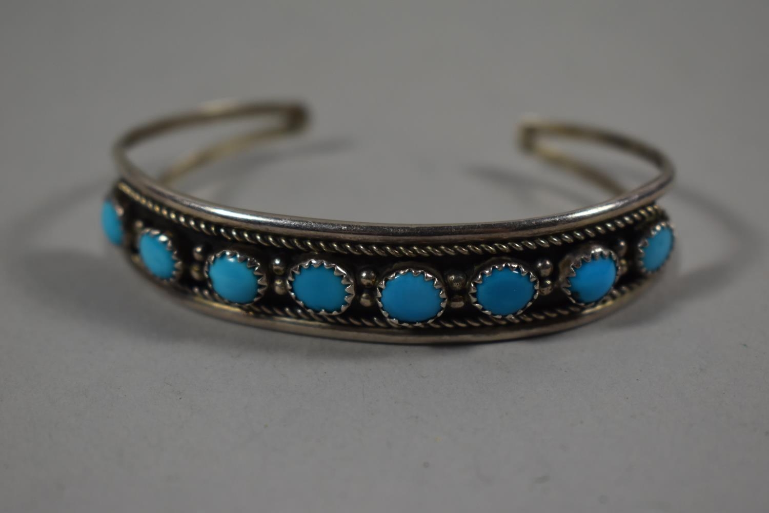 A Navajo Silver and Turquoise Bracelet, Stamped H