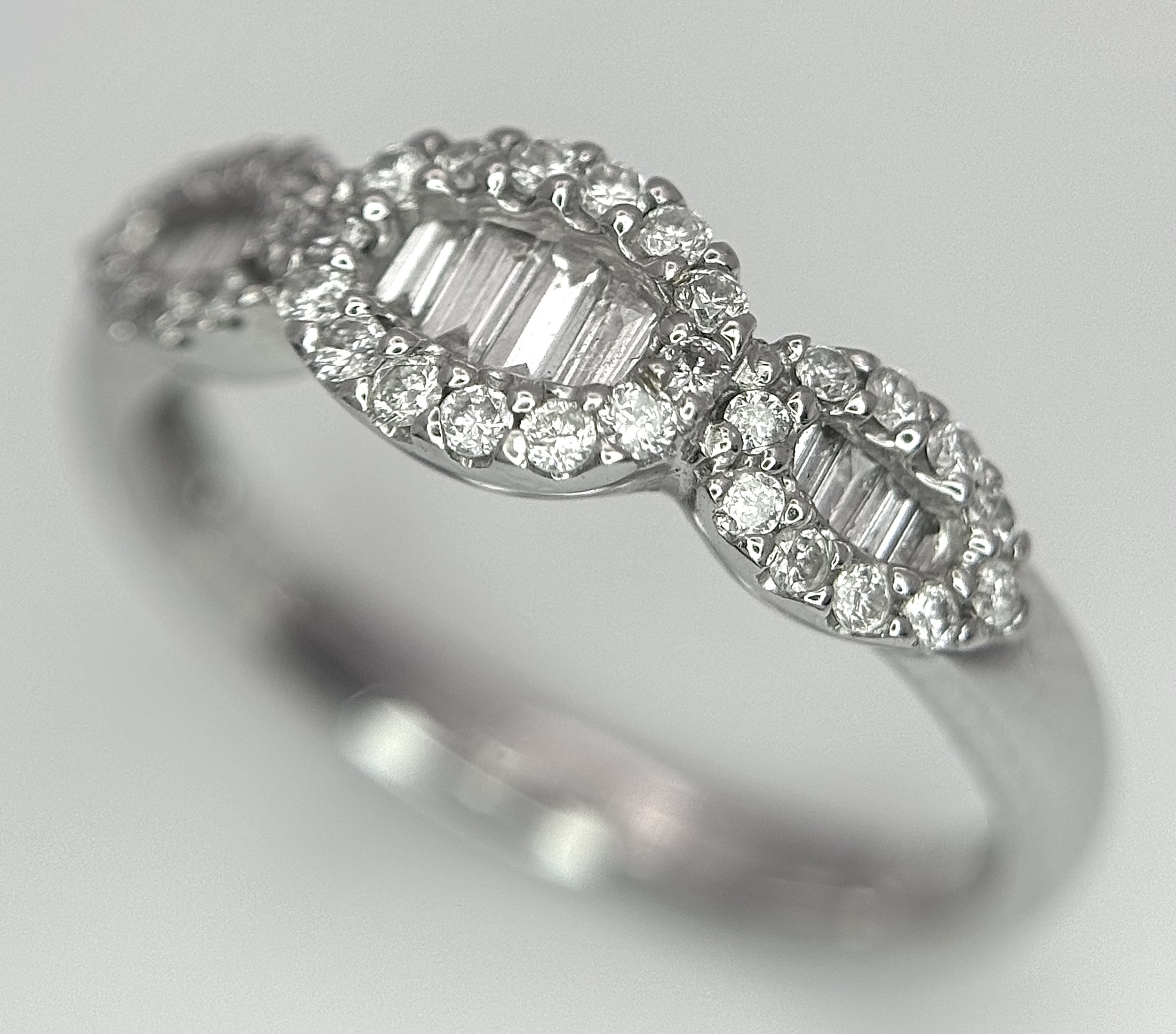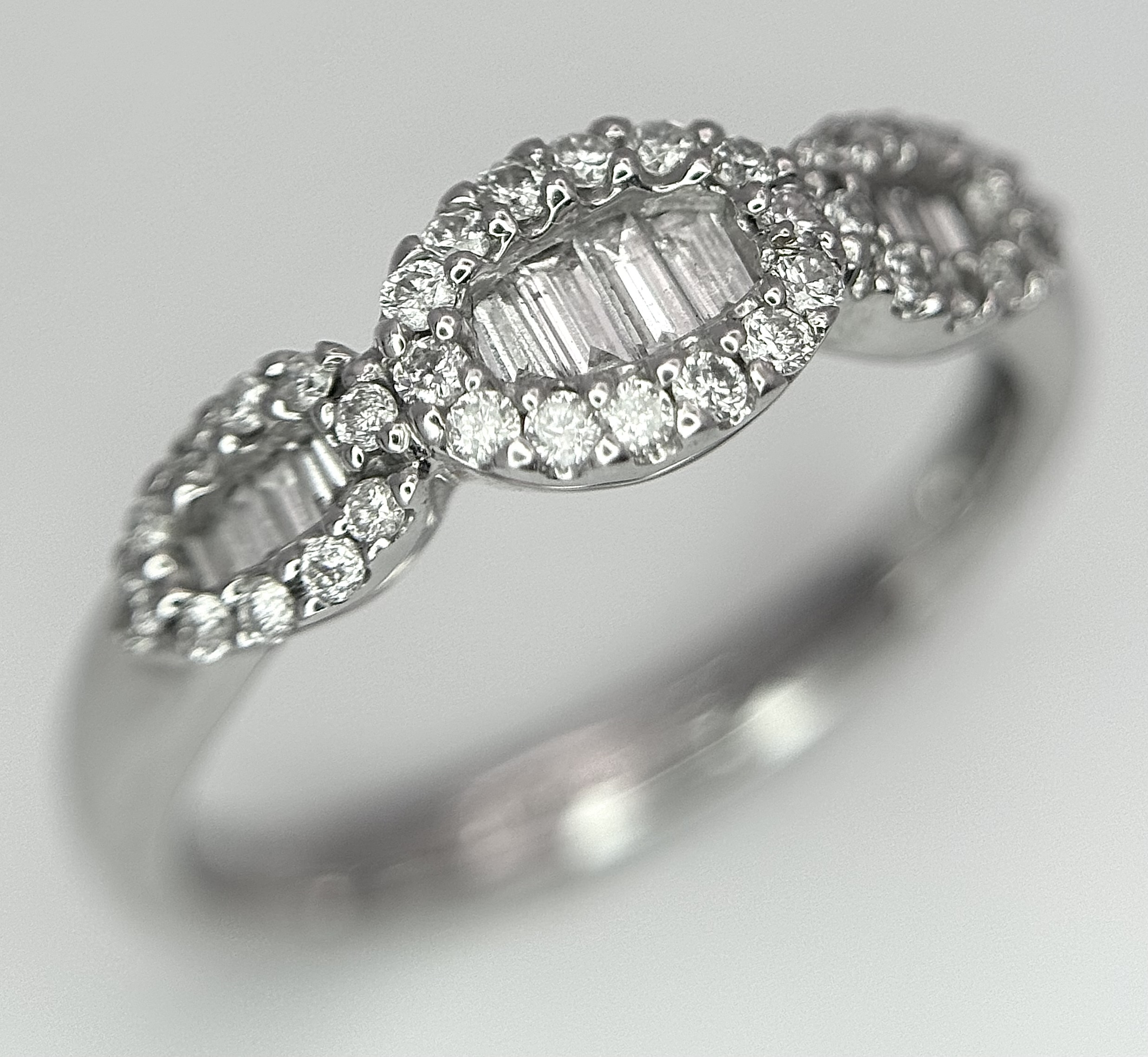 A 14K WHITE GOLD MIXED CUT DIAMOND RING. 0.35CTW, 2.5G TOTAL WEIGHT. SIZE M. Ref: SC 2067