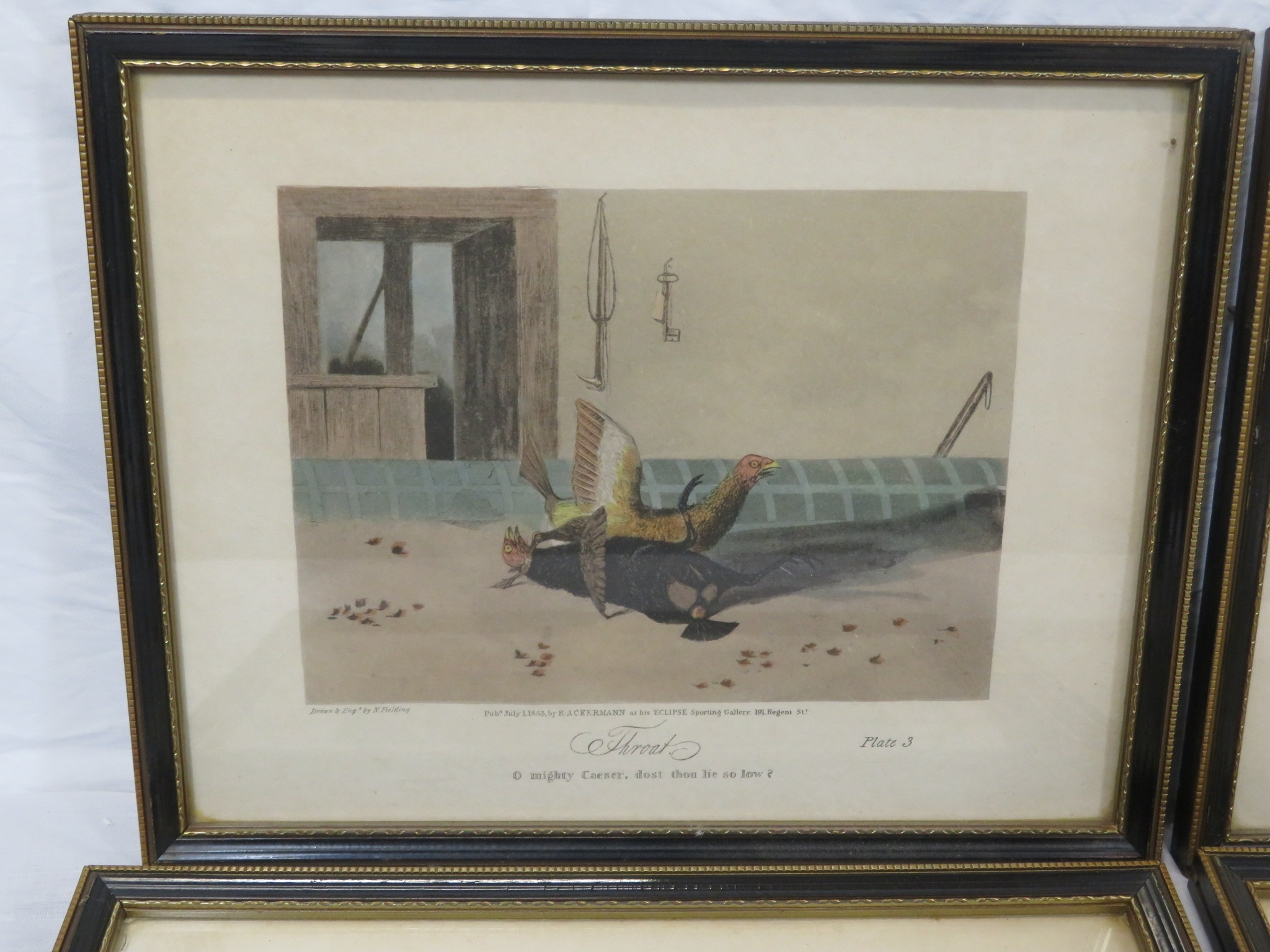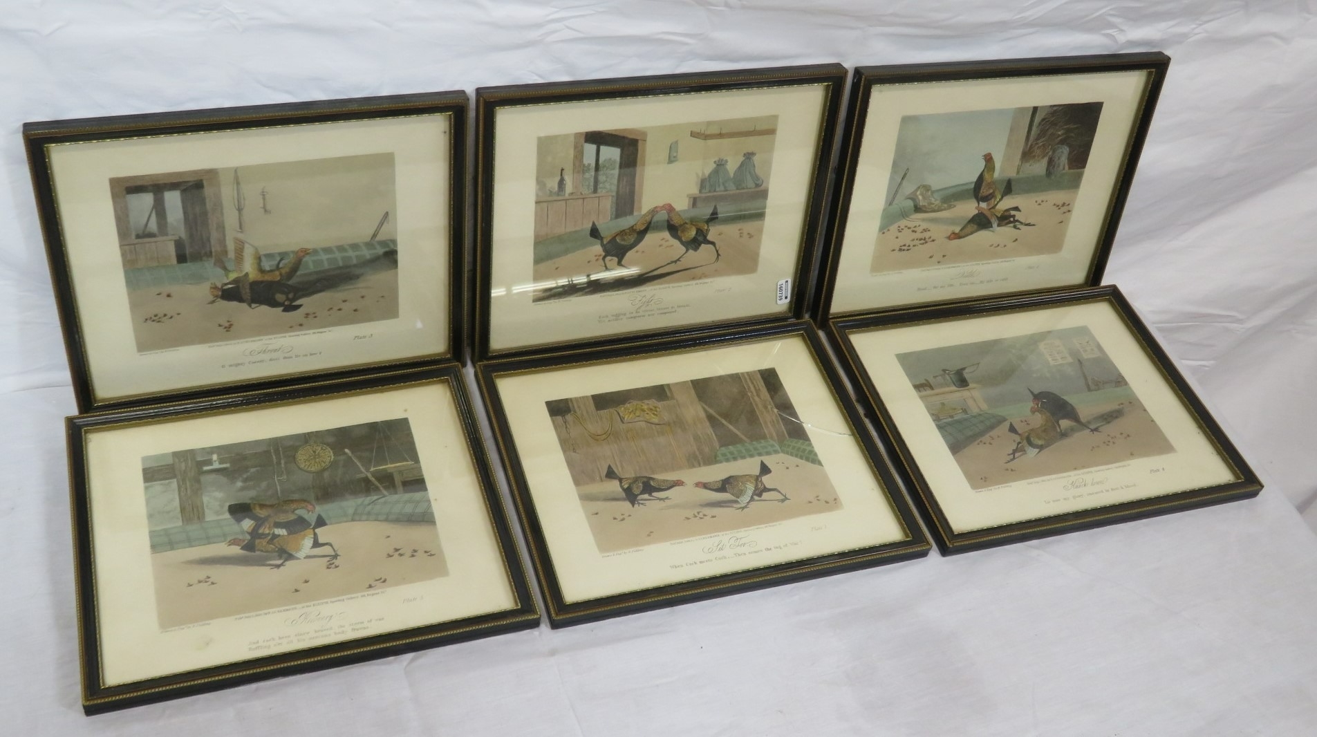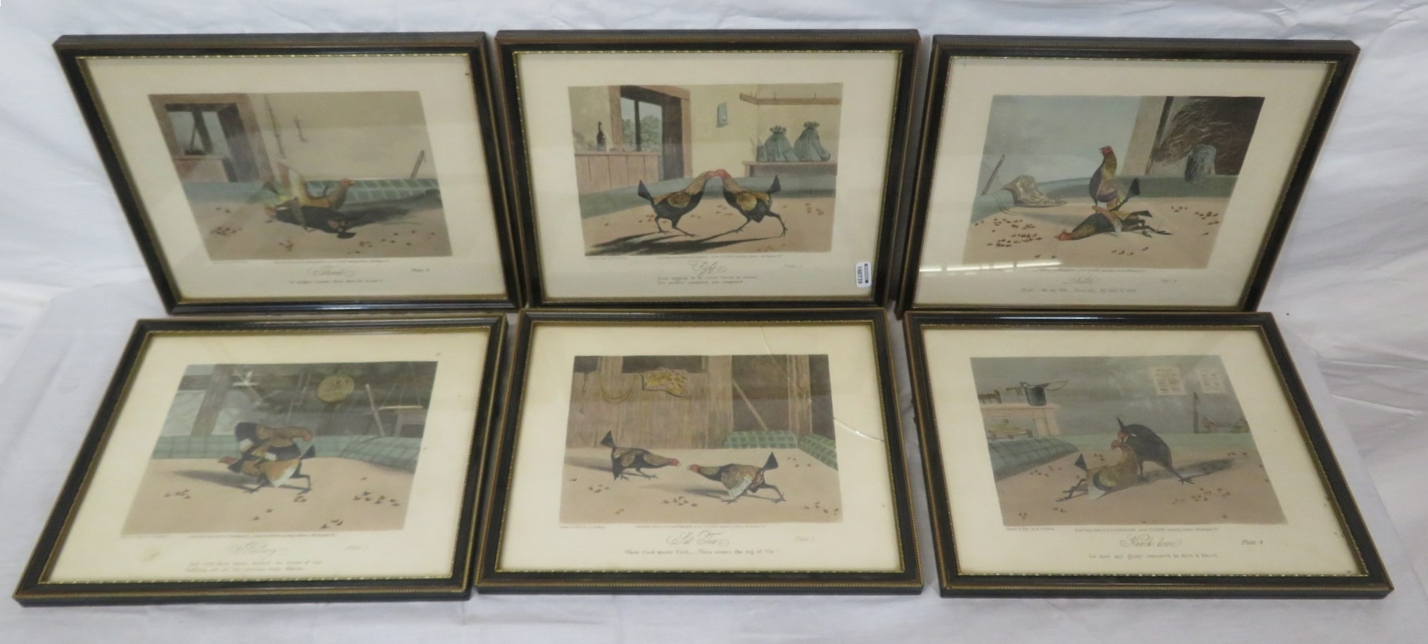 Newton Fielding (1799-1856) 'Cock fighting', A suite of six plates of cock fighting, etching and aquatints with hand-colouring, 15x20cm each