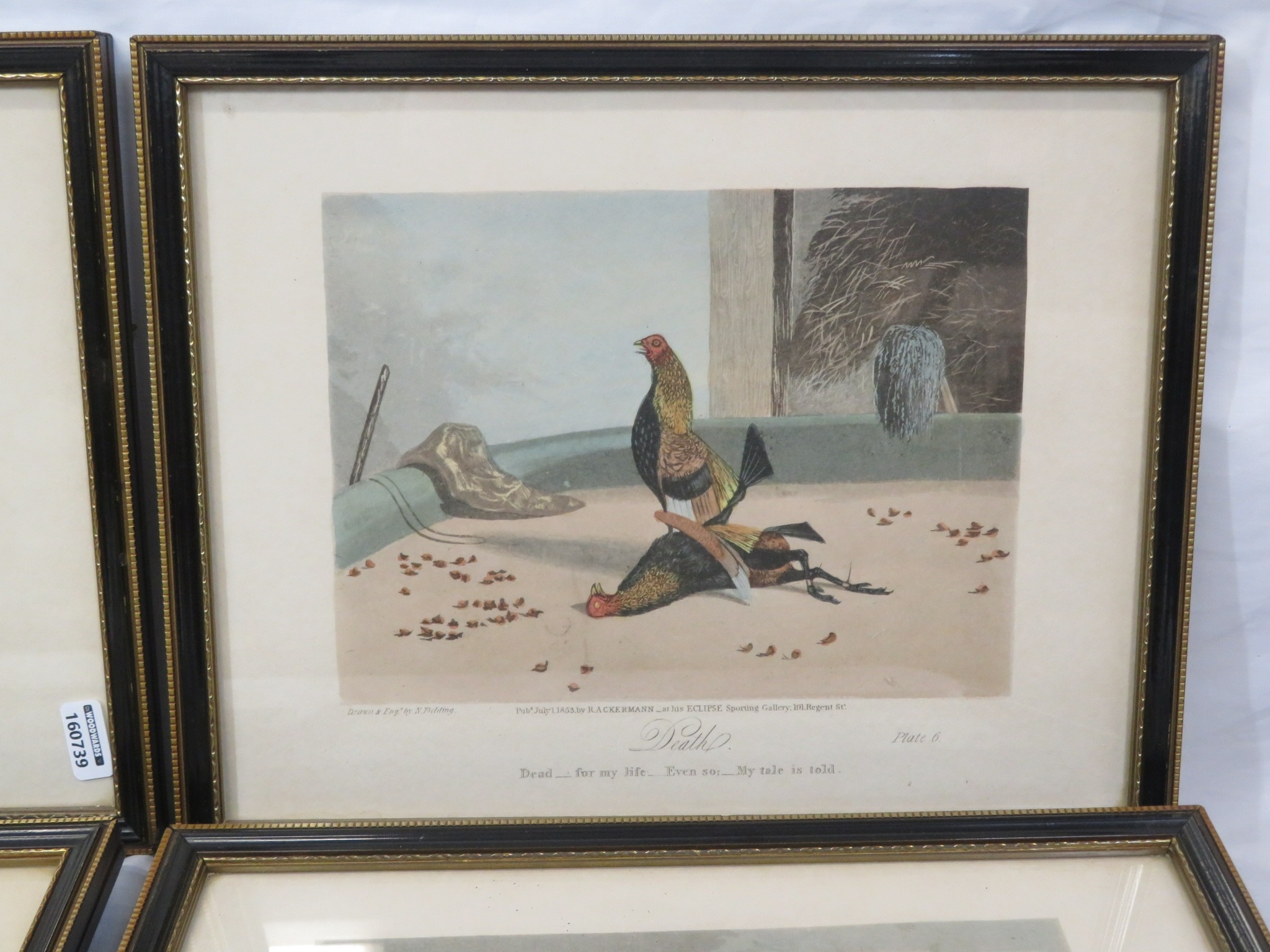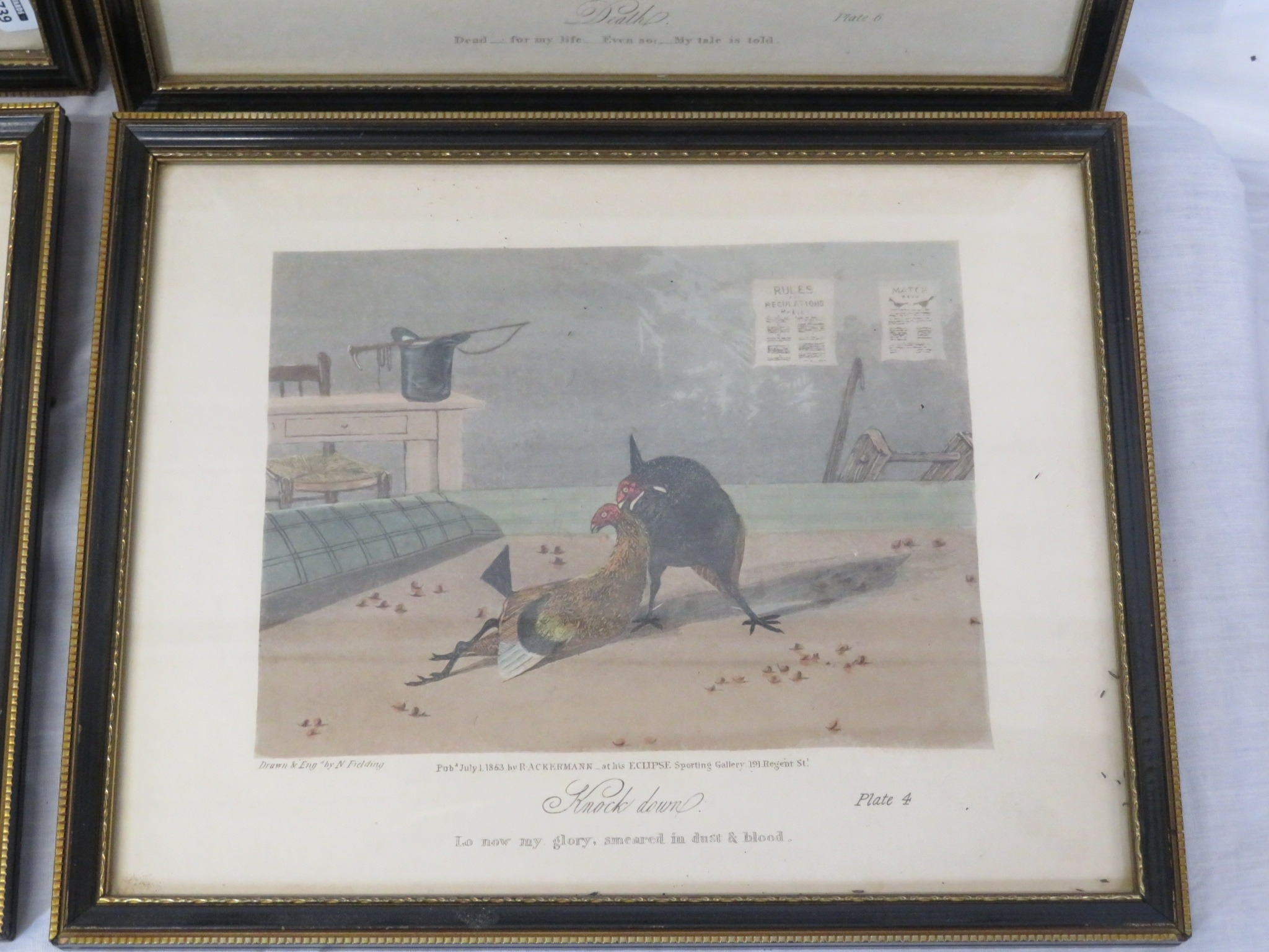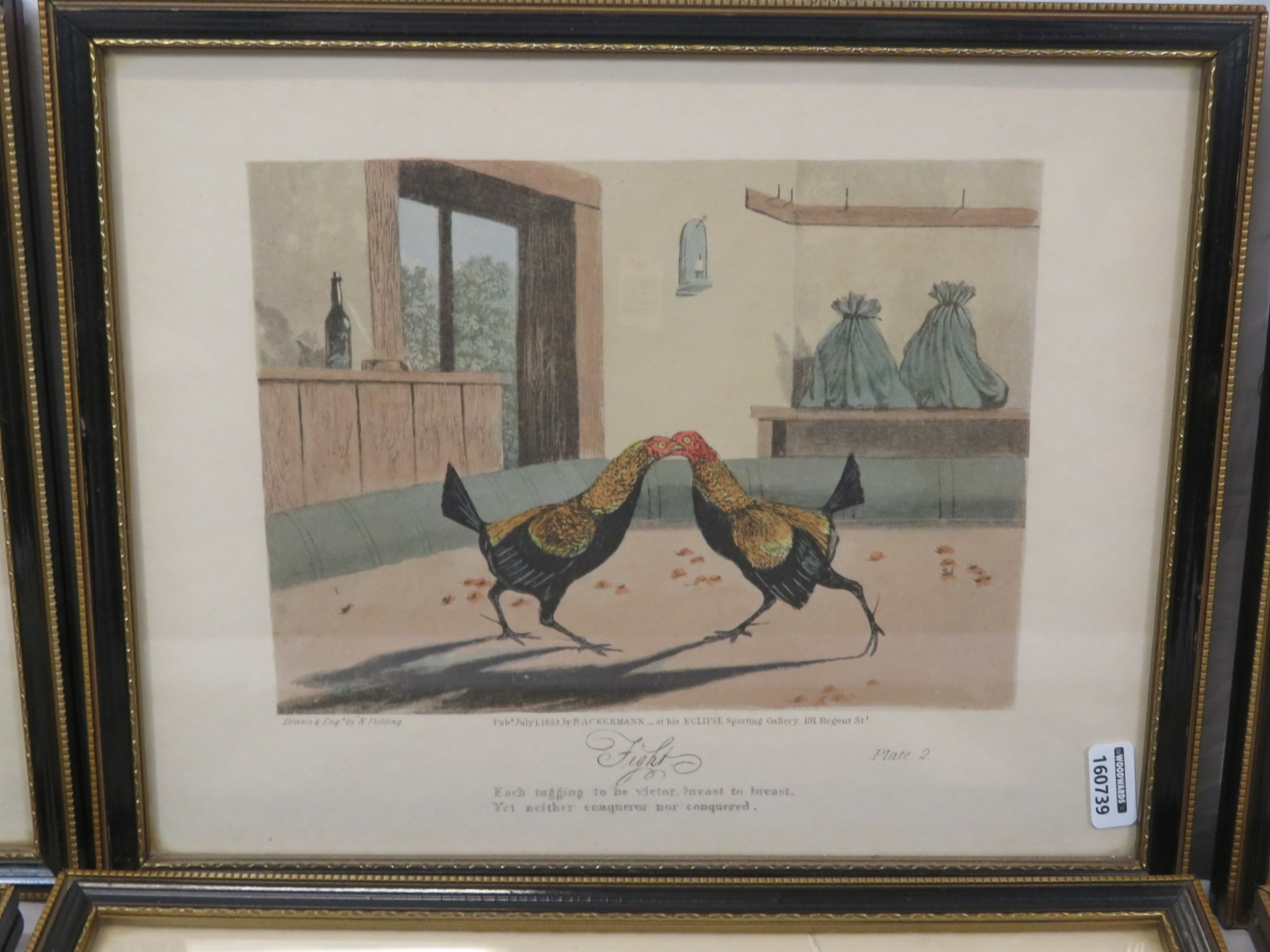 Newton Fielding (1799-1856) 'Cock fighting', A suite of six plates of cock fighting, etching and aquatints with hand-colouring, 15x20cm each