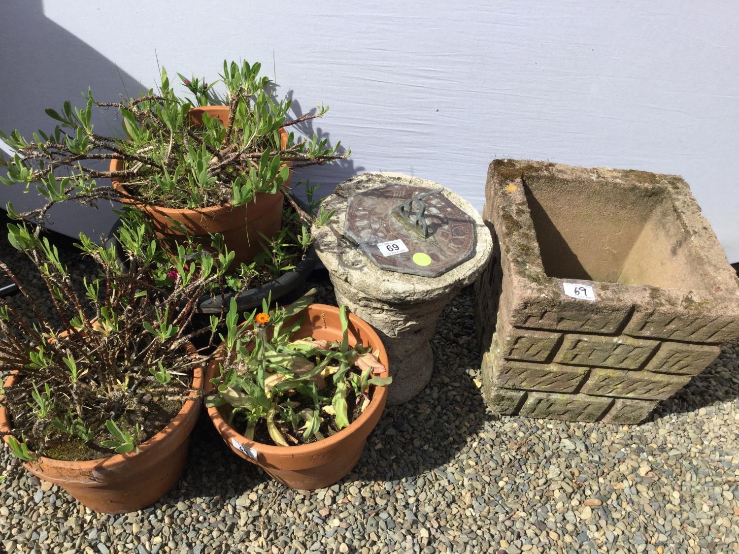GARDEN SUNDIAL GARDEN PLANTER AND 4 GARDEN POTS