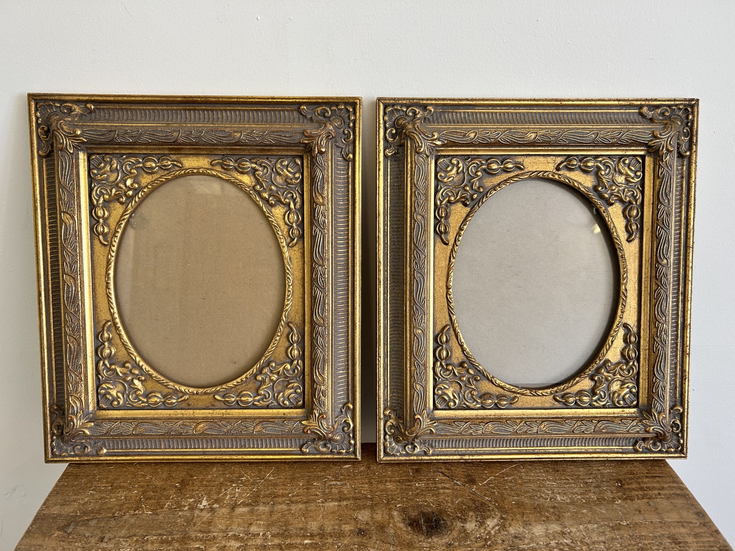 A pair of vintage gilded wood and glazed photograph or picture frames, frame size 14" x 15 3/4"