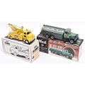 5 First Gear 1:34 1950's-60's American Trucks. 1951 Ford F6 Dry Goods Van, 'Navajo'. 1952 GMC Heavy Duty Wrecker, 'SPRA-STRIP'. 1957 International R-200 with Moving Van, 'dean Van Lines'.1960 Model B61 Mack Tractor & Trailer, 'Mayflower Transit Co'. Together with a 1966 Mack 'R' Fuel Tanker 'Mack Service'. All boxed, minor wear. Vehicles VGC-Mint, a few small parts maybe loose. £50-70