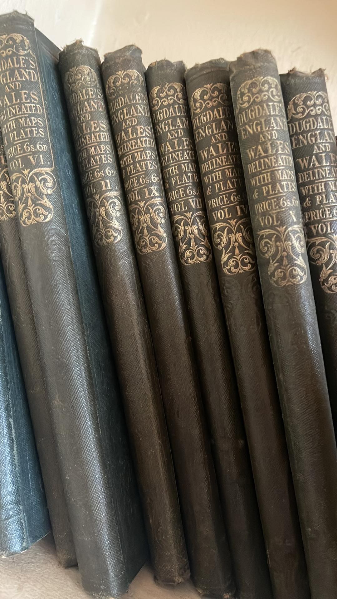 Dugdale, Thomas: England and Wales Delineated. In 10 volumes. Embossed cloth covered board. All maps and plates removed from all volumes, but otherwise good with minor foxing.