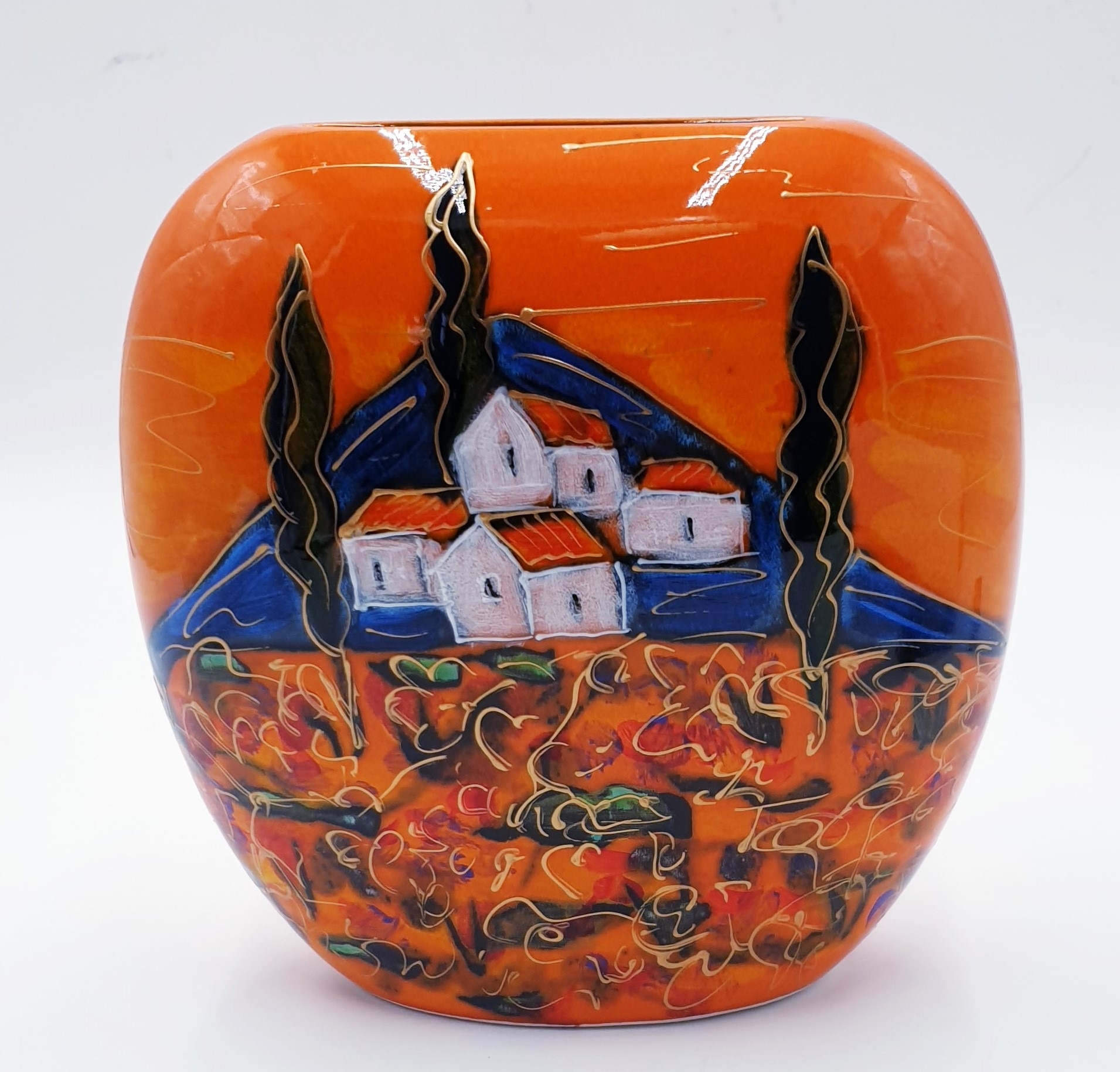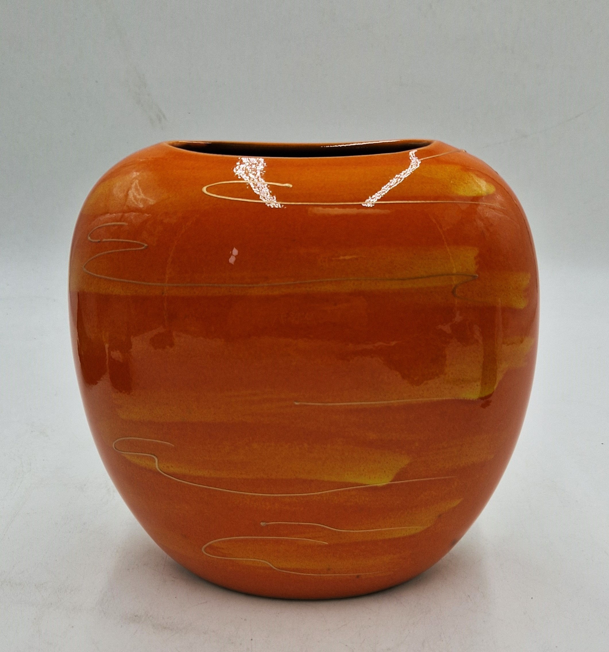 ANITA HARRIS ART POTTERY Large 19cm PURSE VASE IN THE TUSCANY DESIGN (Signed In Gold By Anita Harris)