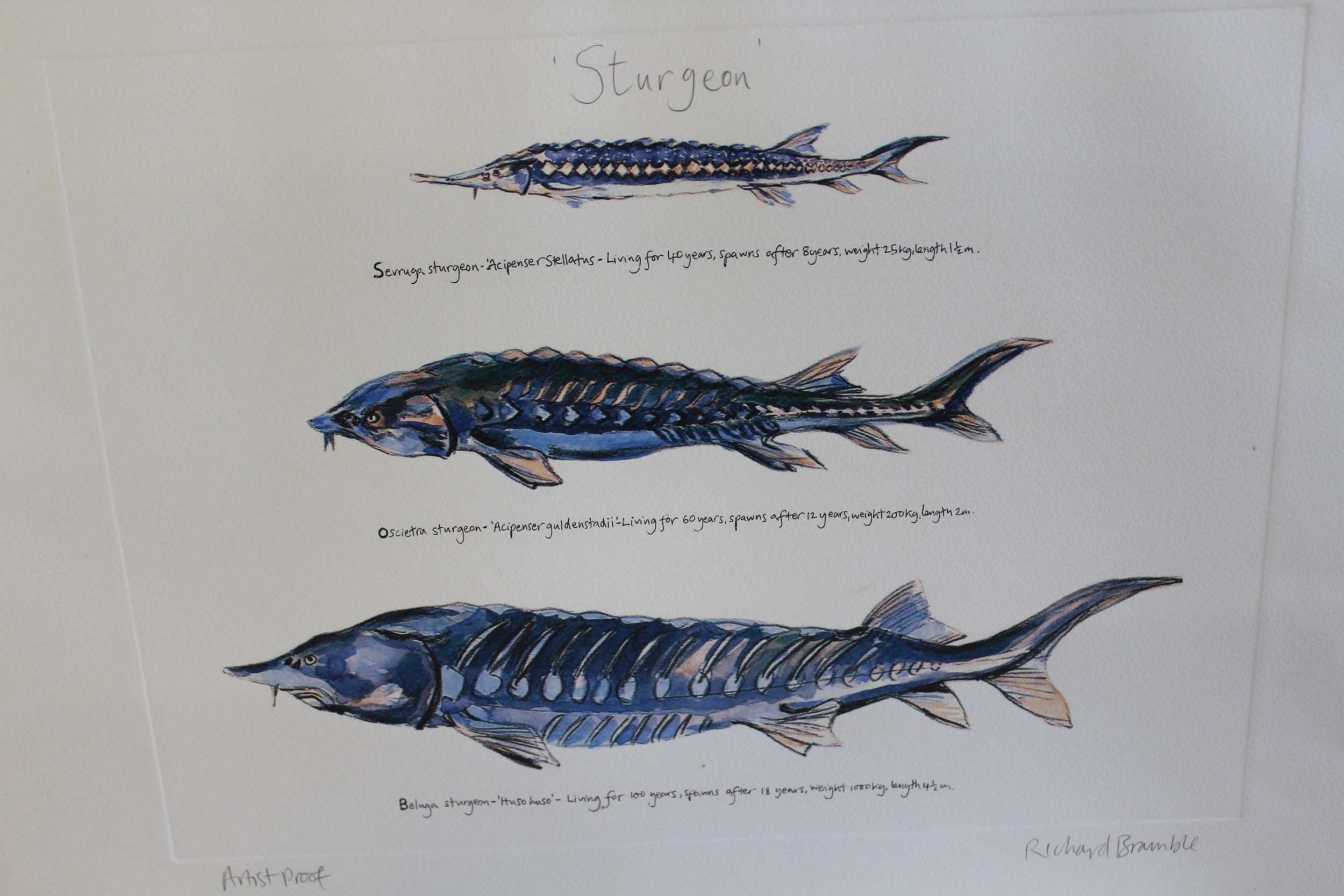 Richard Bramble, artist proof print, ' Sturgeon ', together with a small quantity of other various unframed prints