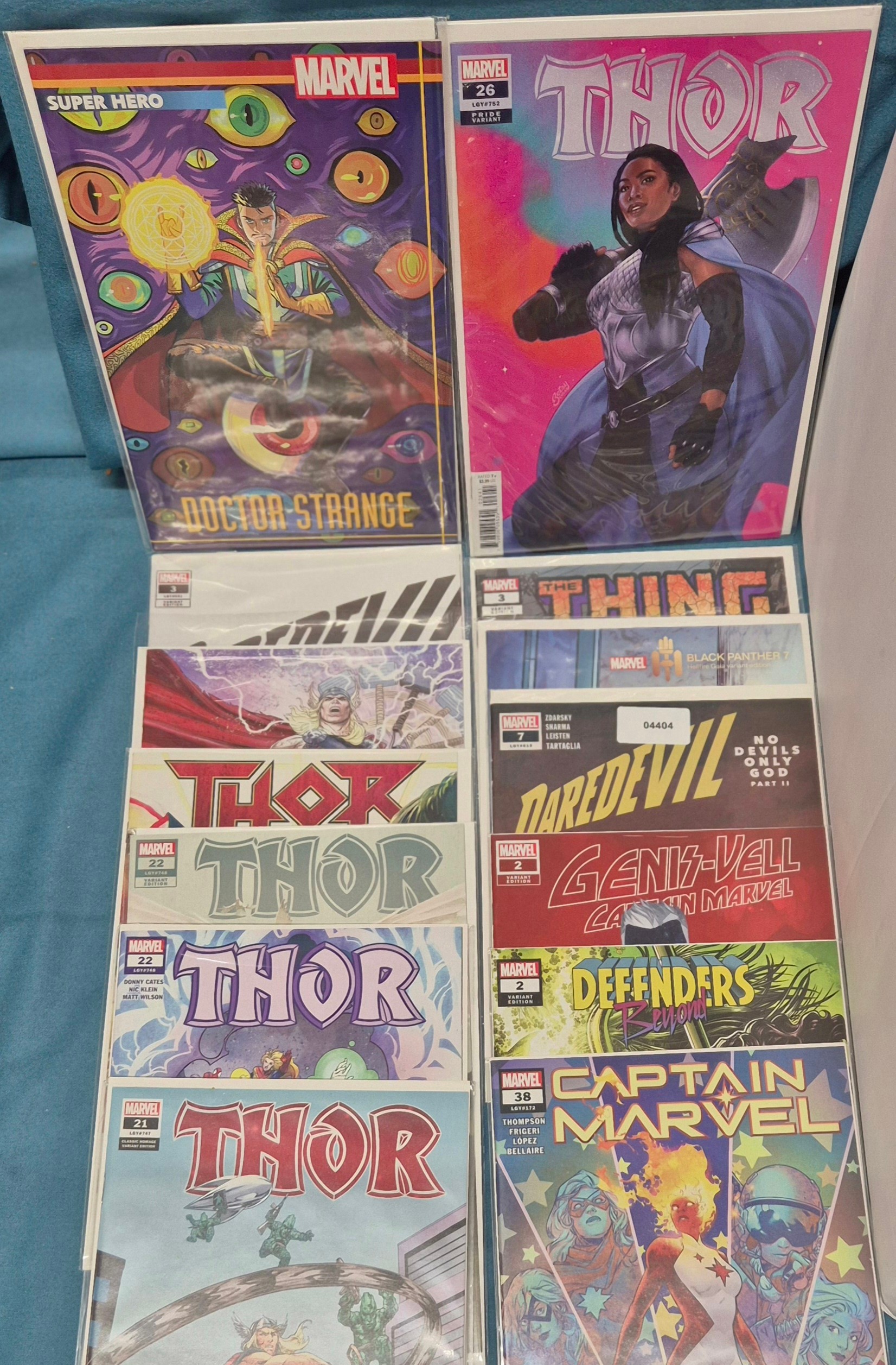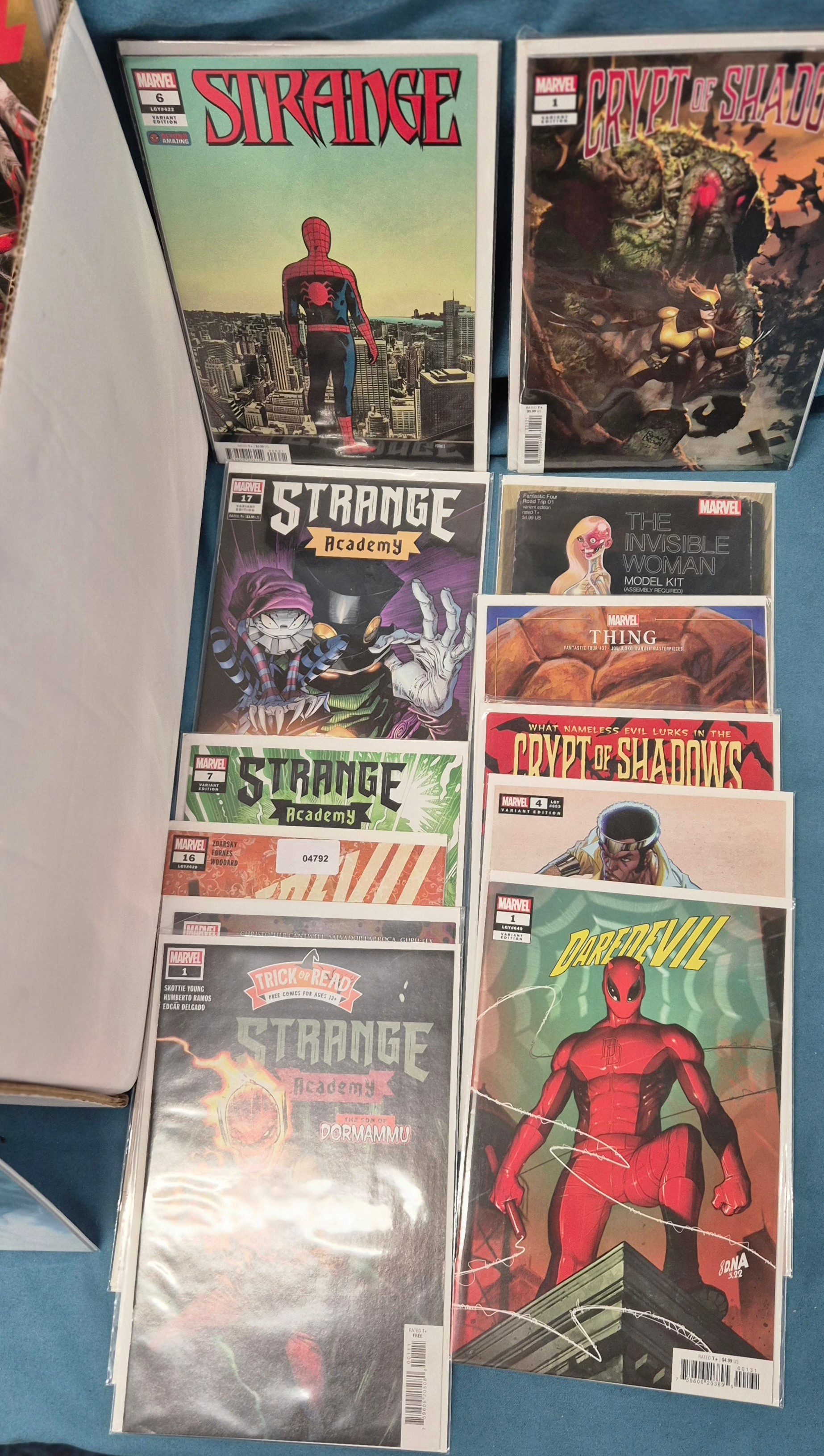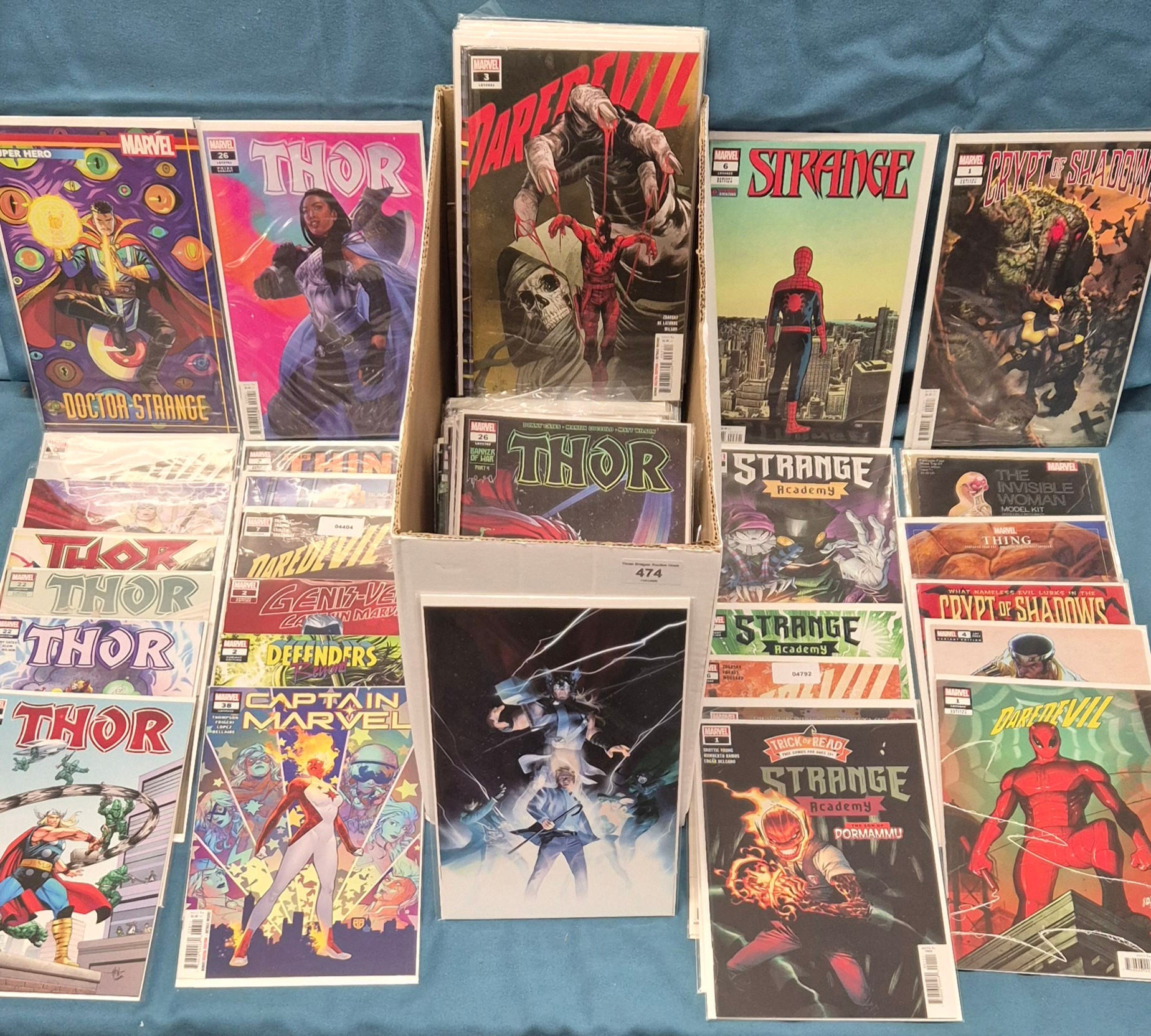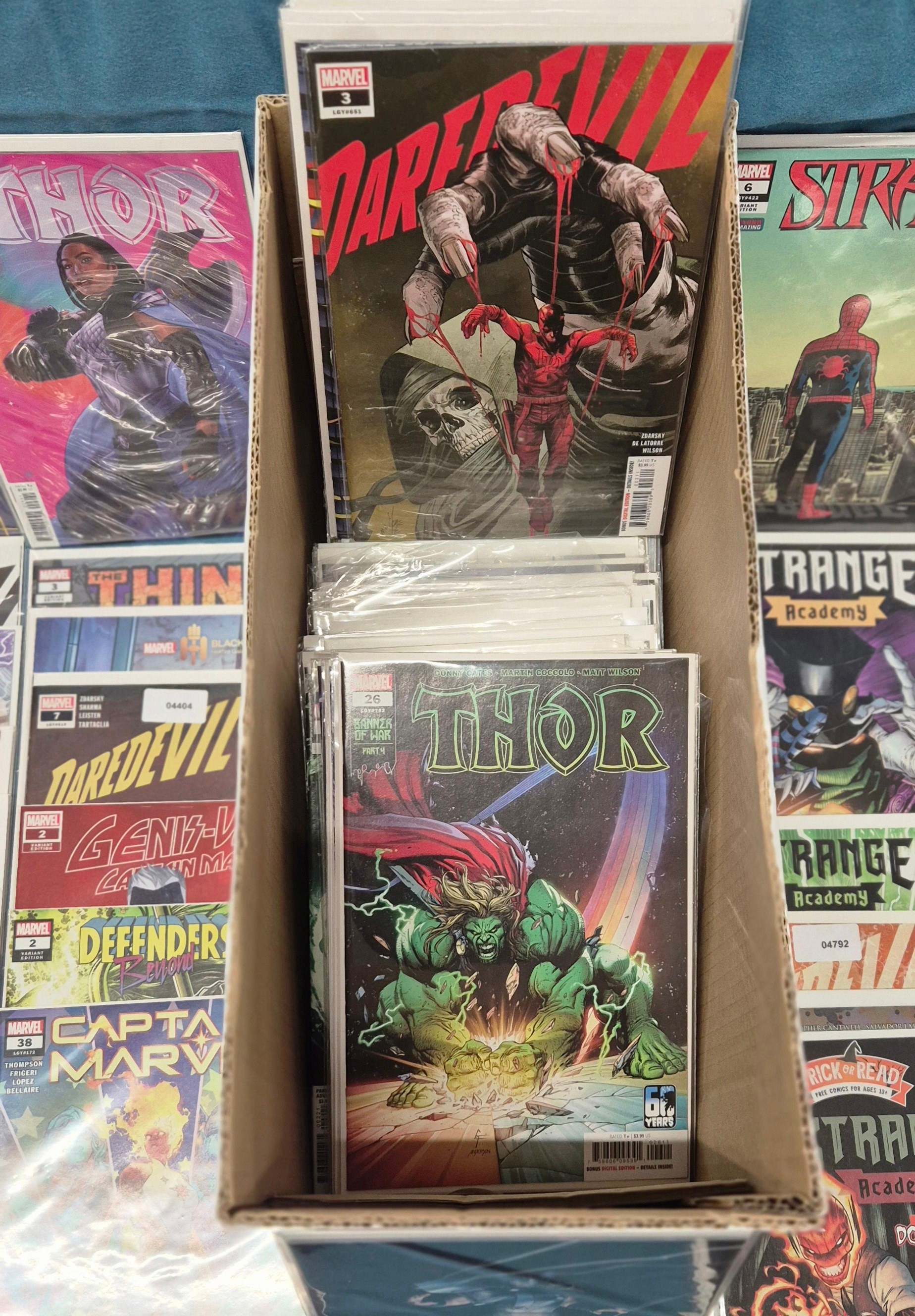 Crate of Marvel Comics; Variant editions, Thor, Marvel Strange, Captain Marvel, #1 comics along with others.