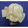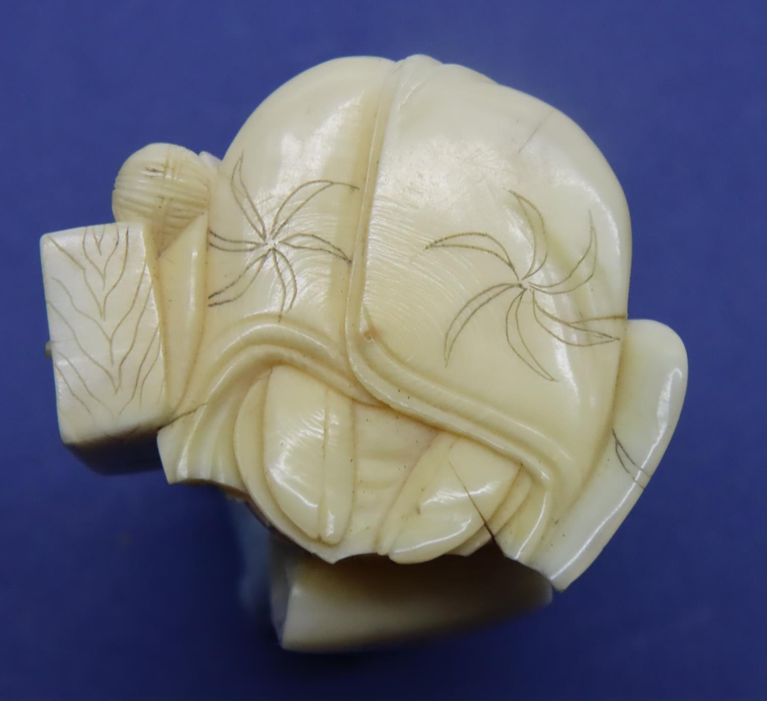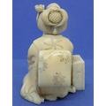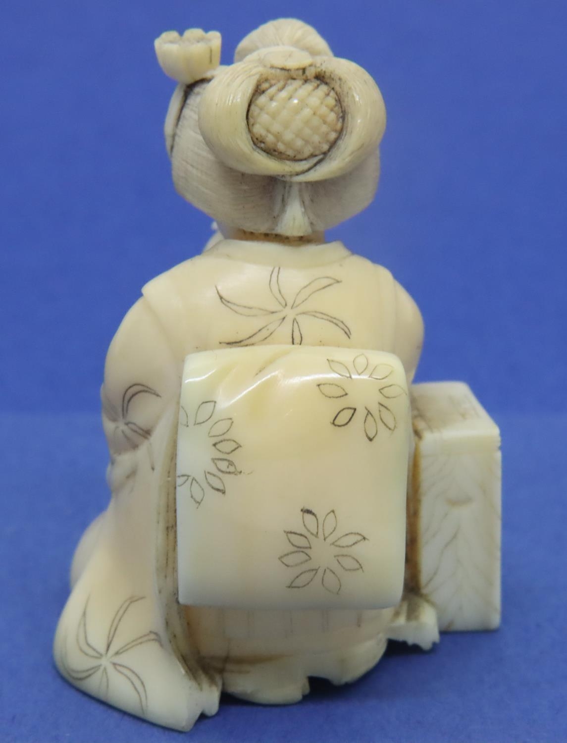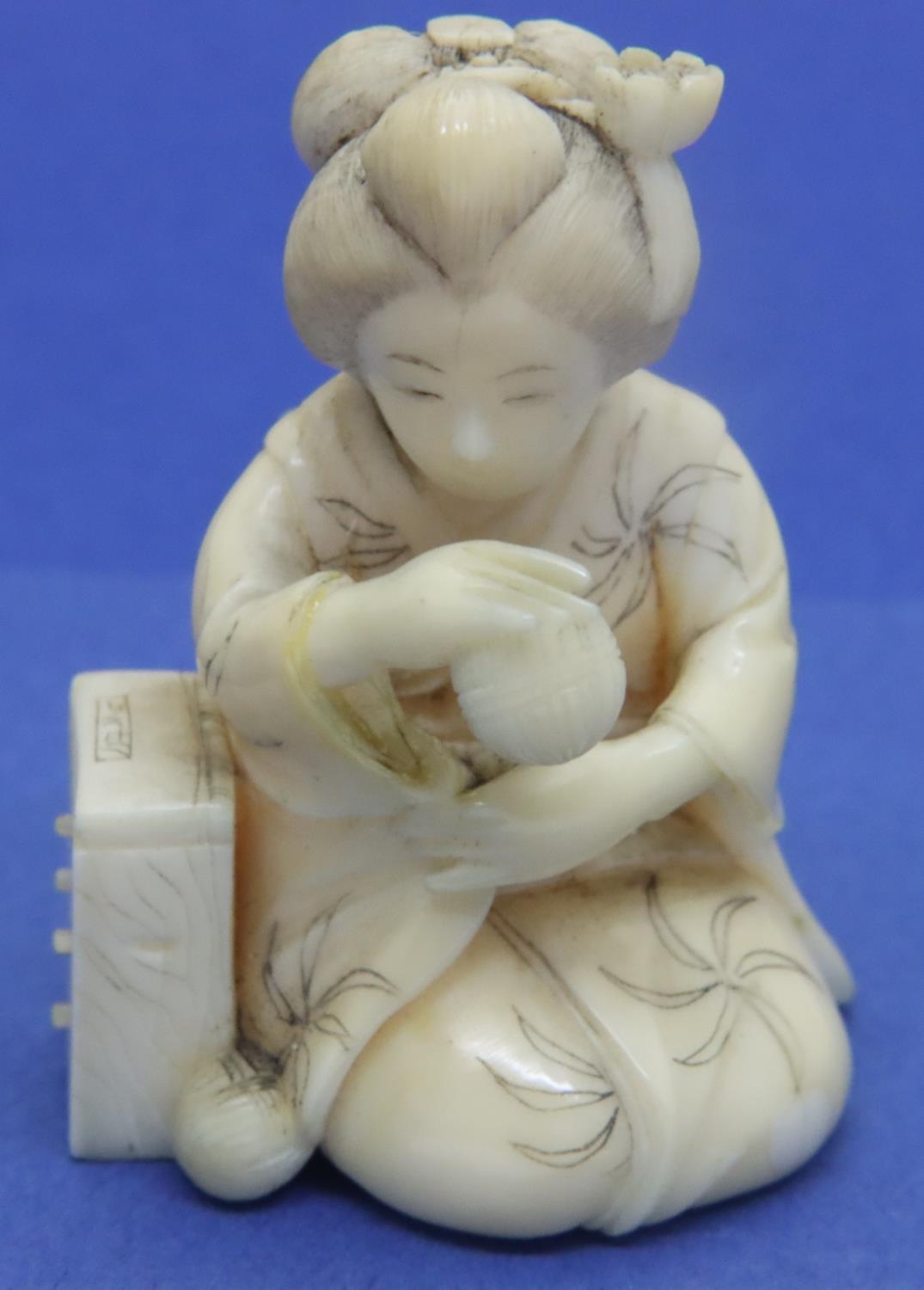 Carved ivory figurine of a kneeling lady holding a ball, H: 42 mm. P&P Group 1 (£14+VAT for the first lot and £1+VAT for subsequent lots)
