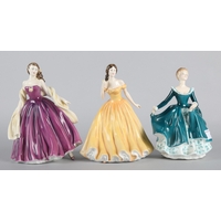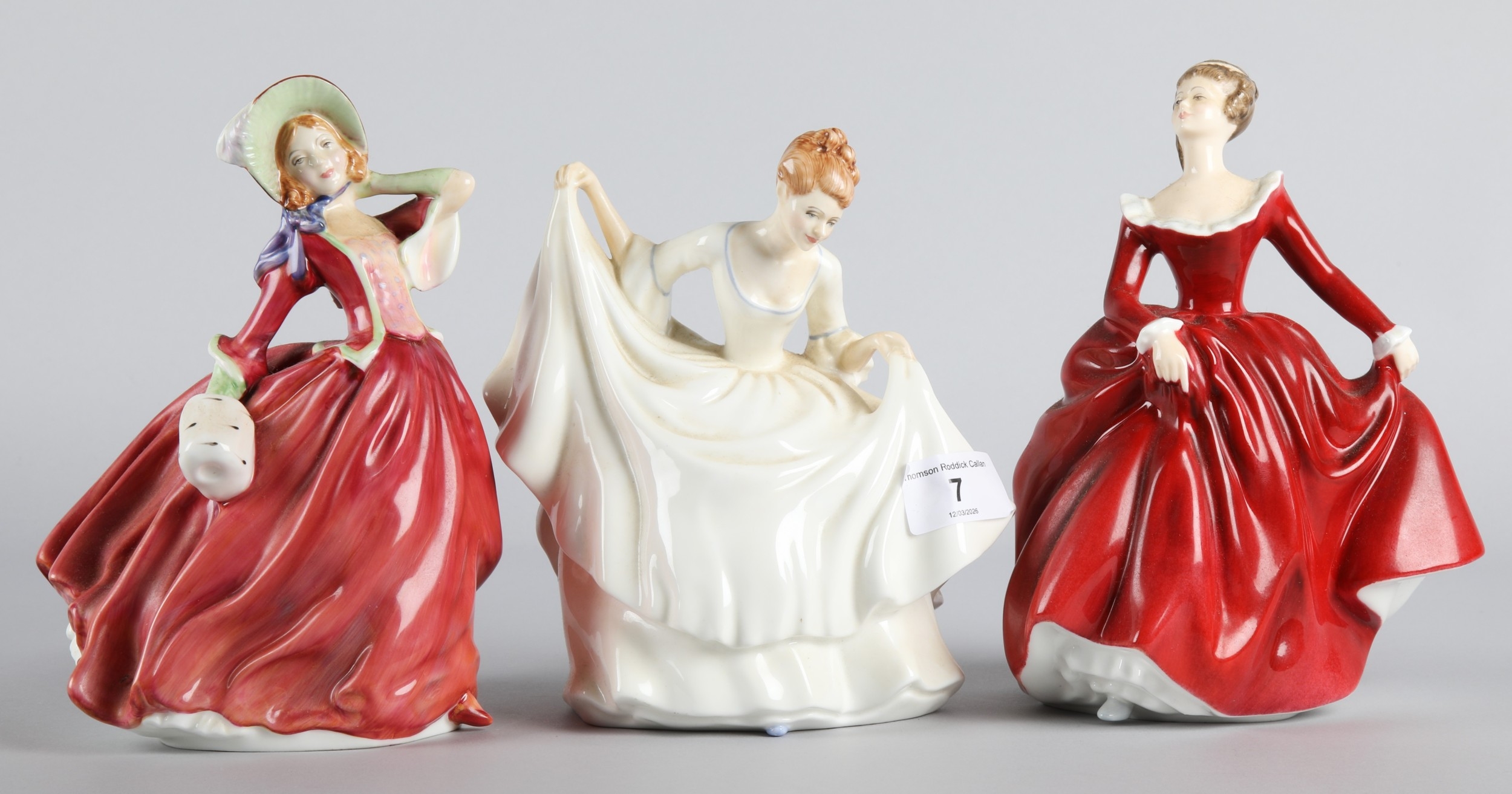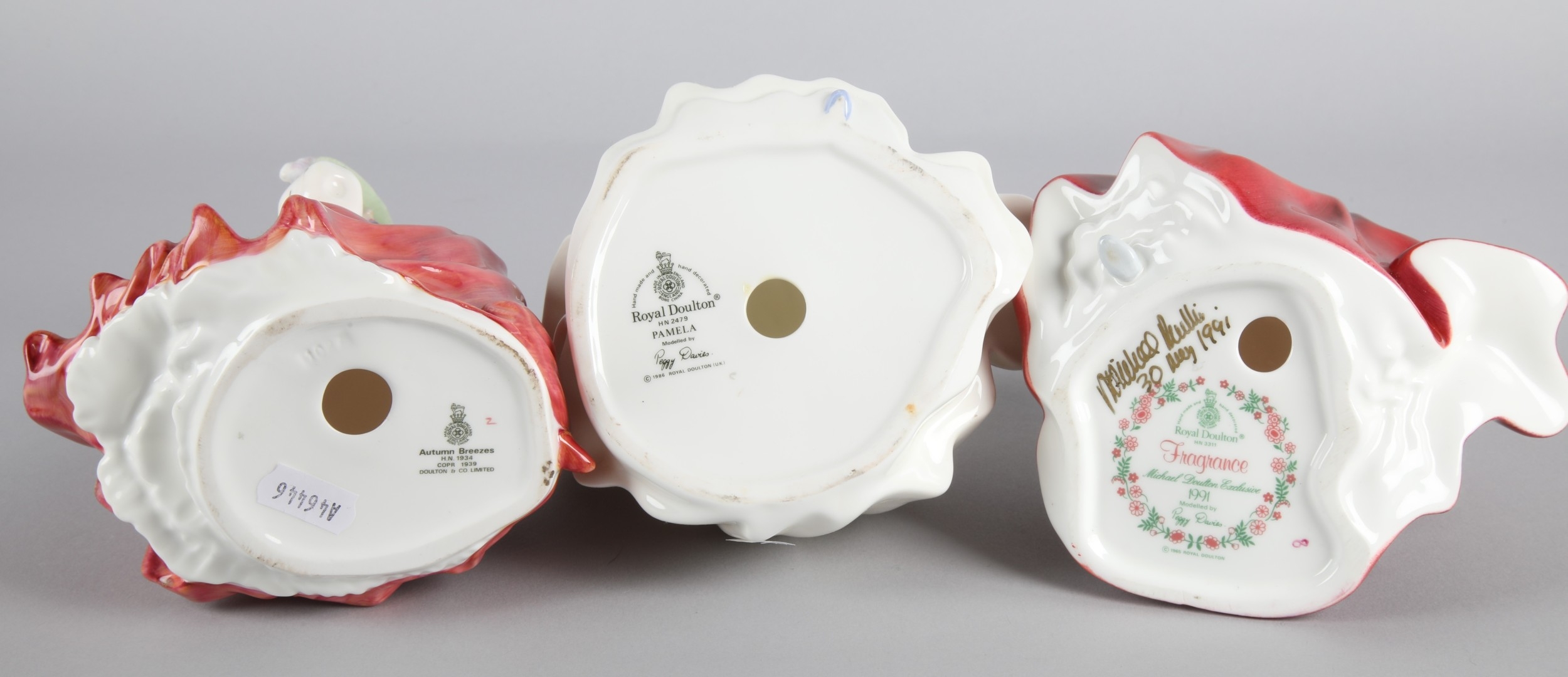 Three Royal Doulton figures to include Autumn Breezes HN1934, Pamela HN2479, and Fragrance HN3311 (3)