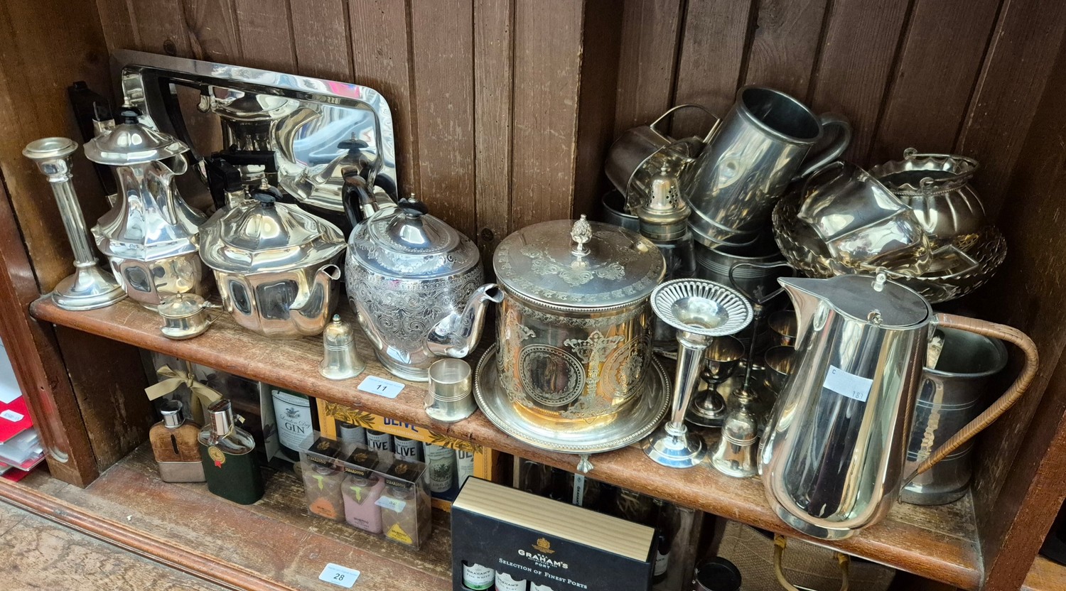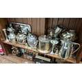 A collection of plated wares including coffee pot, tea pot tray etc
