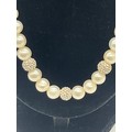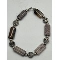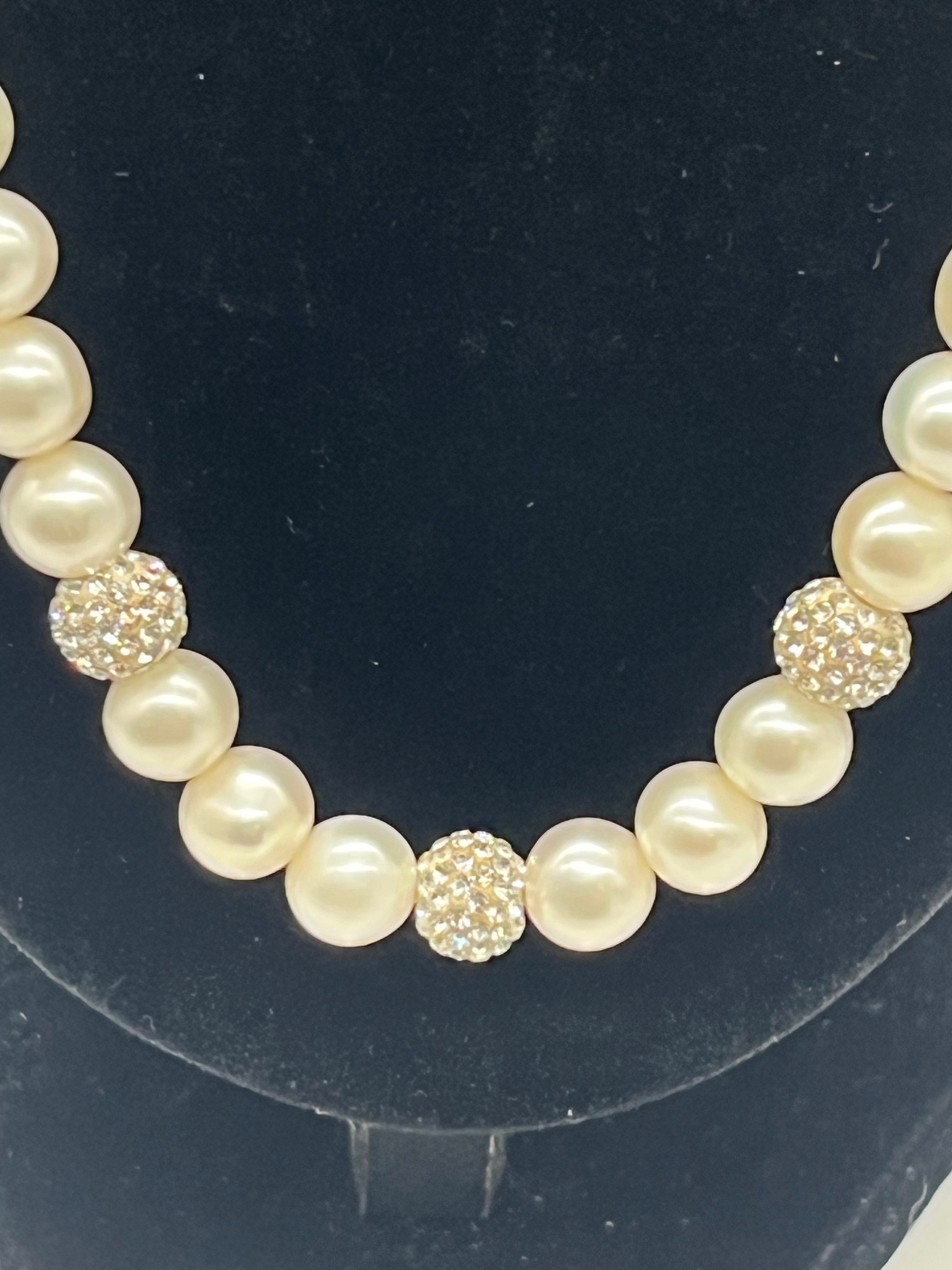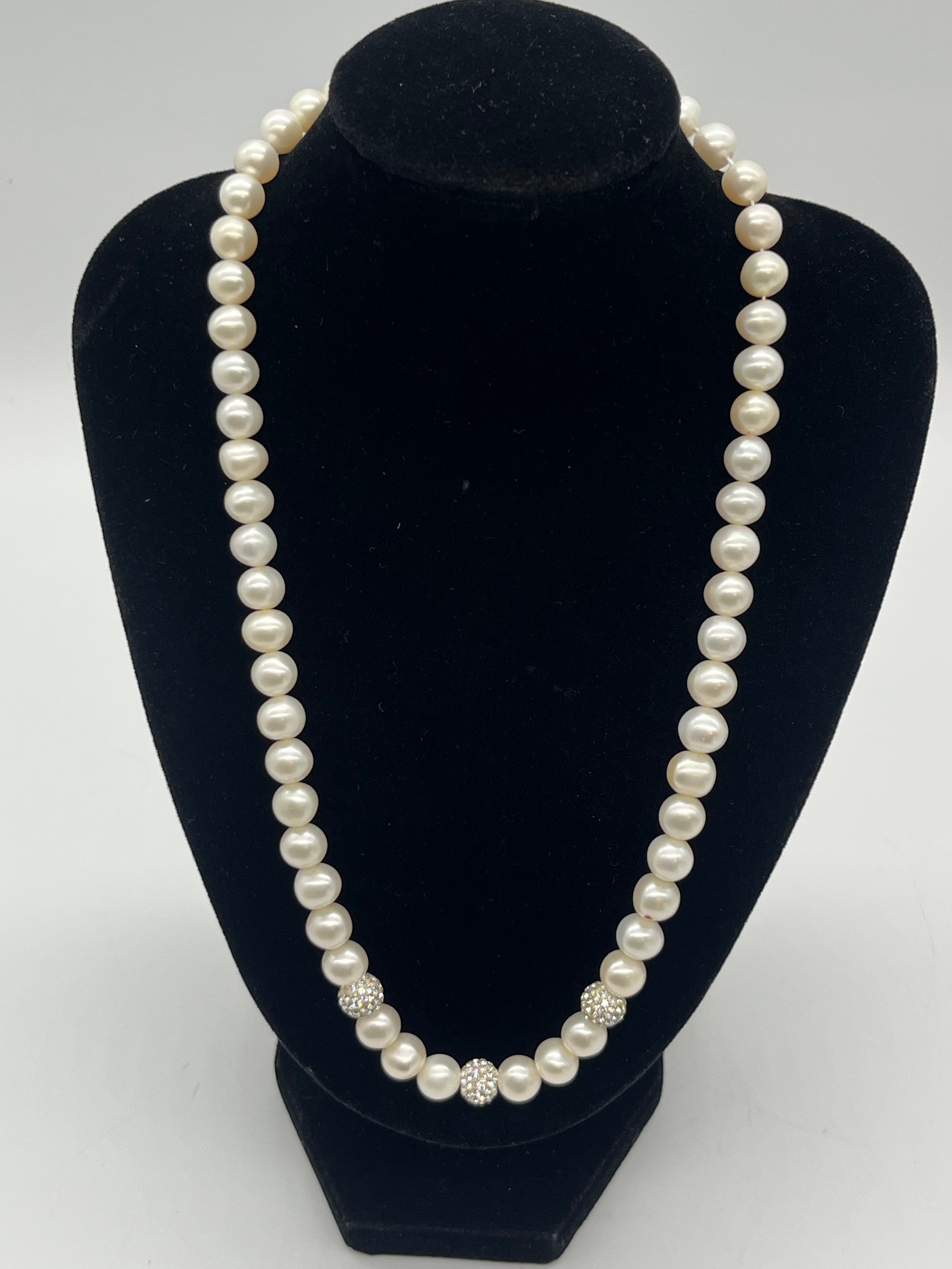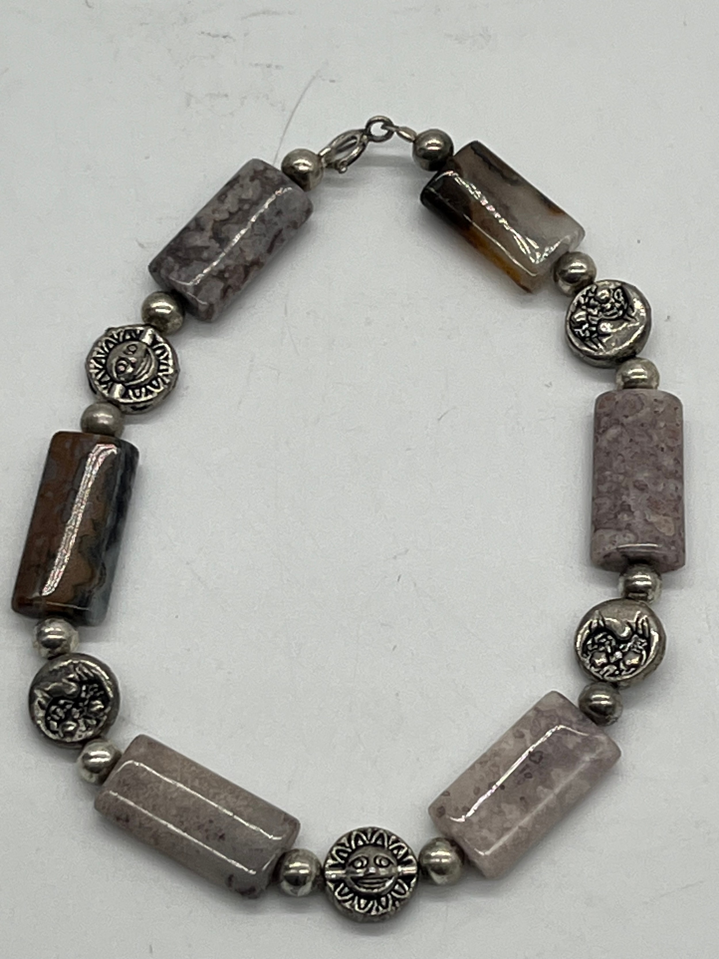 Unusual tribal style necklace with onyx beads and silver toned spacers along with silver and pearl necklace and silver and quartz bracelet.