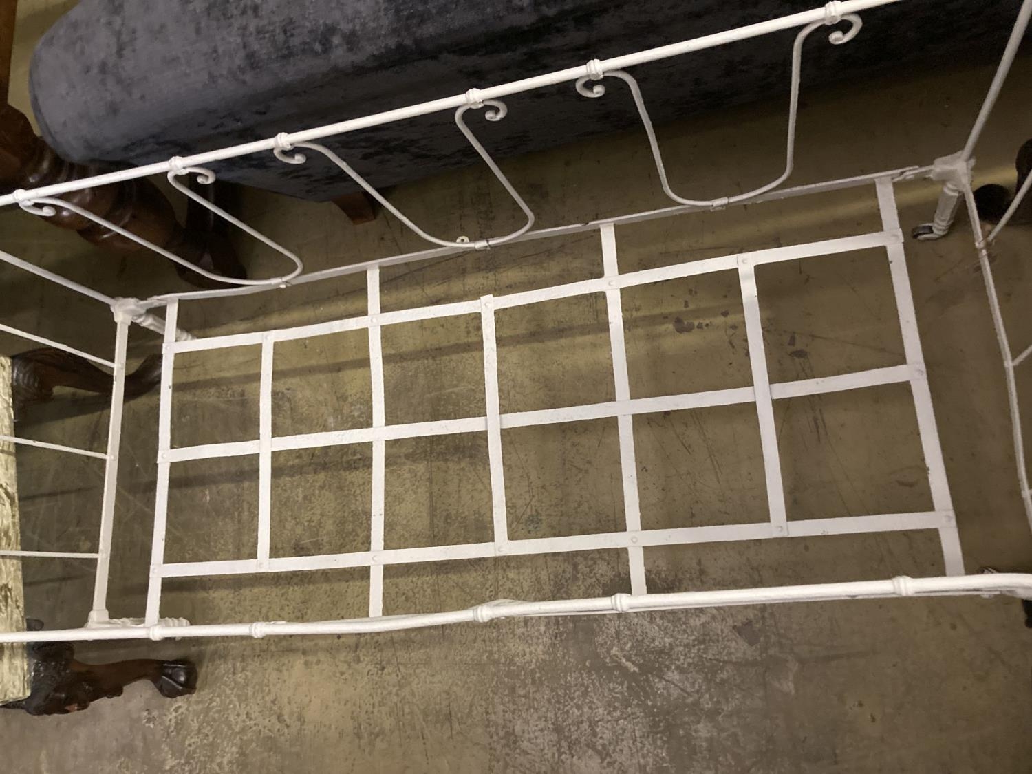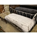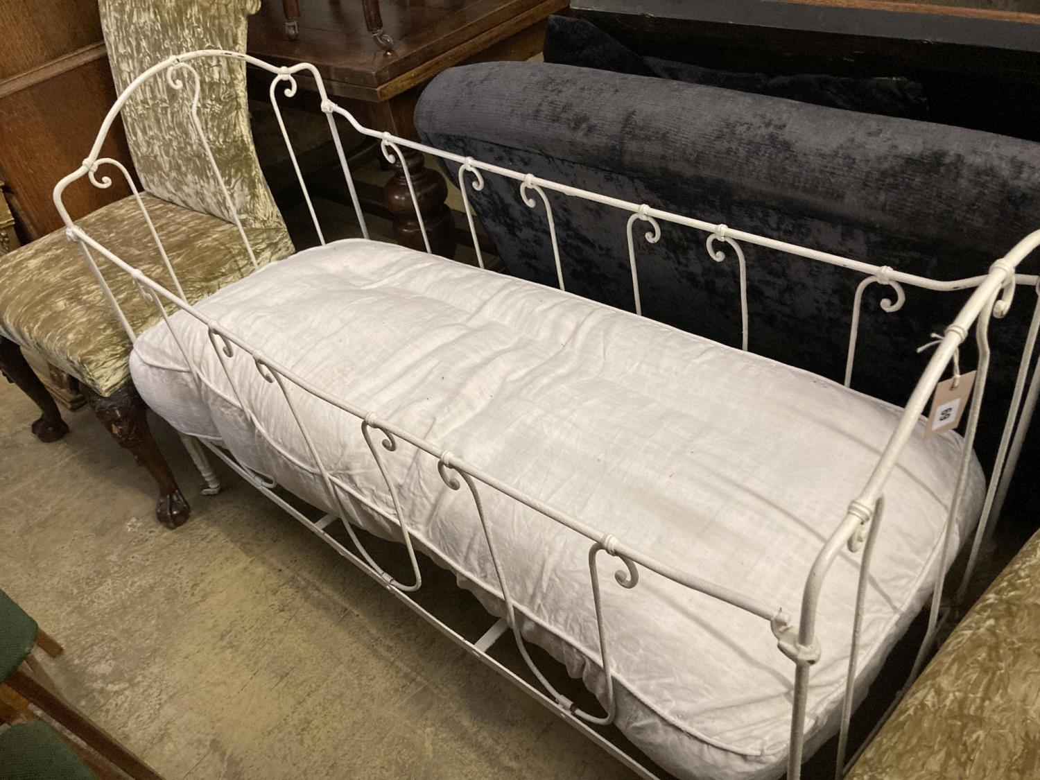 A 19th century French painted wrought iron crib, length 140cm, depth 59cm, height 90cm