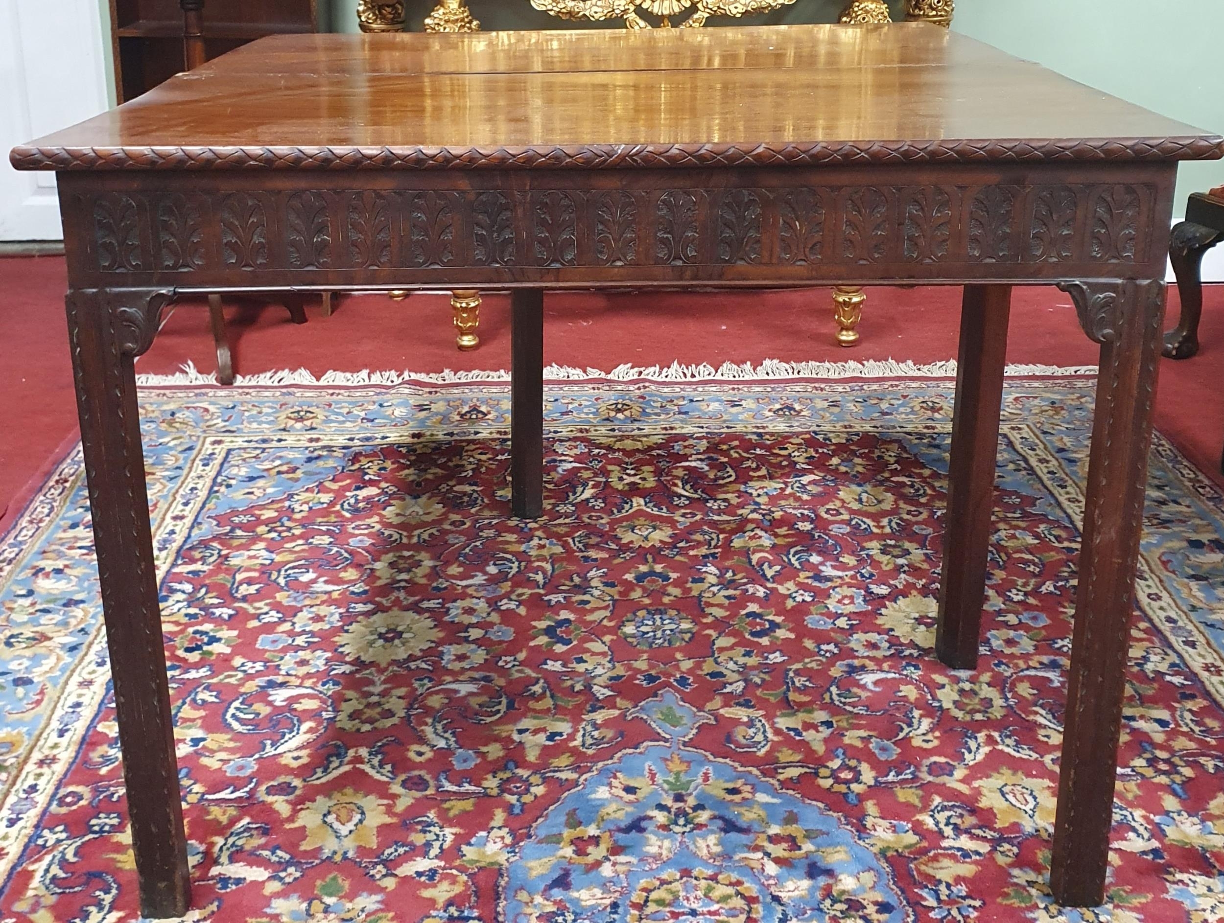 A good 19th Century Foldover Tea Table with highly carved outline on square carved supports. 45 x 92 x H70cm approx.