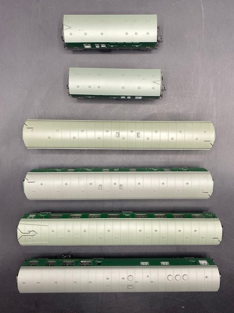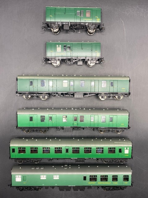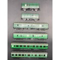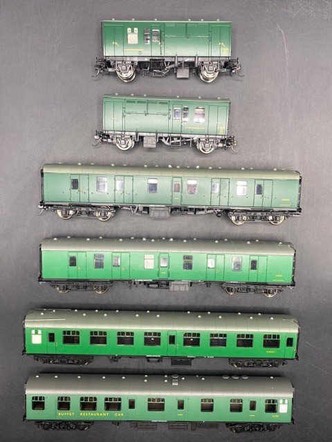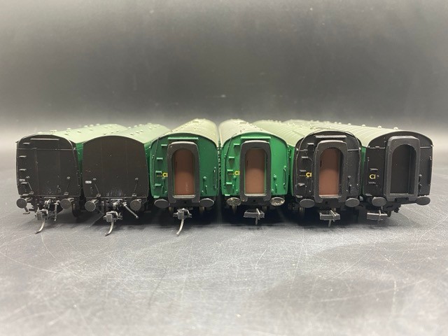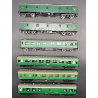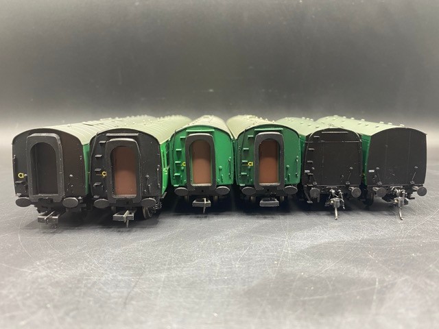 Six OO gauge Bachmann (5) Hornby (1) BR Green livery coaches/wagon