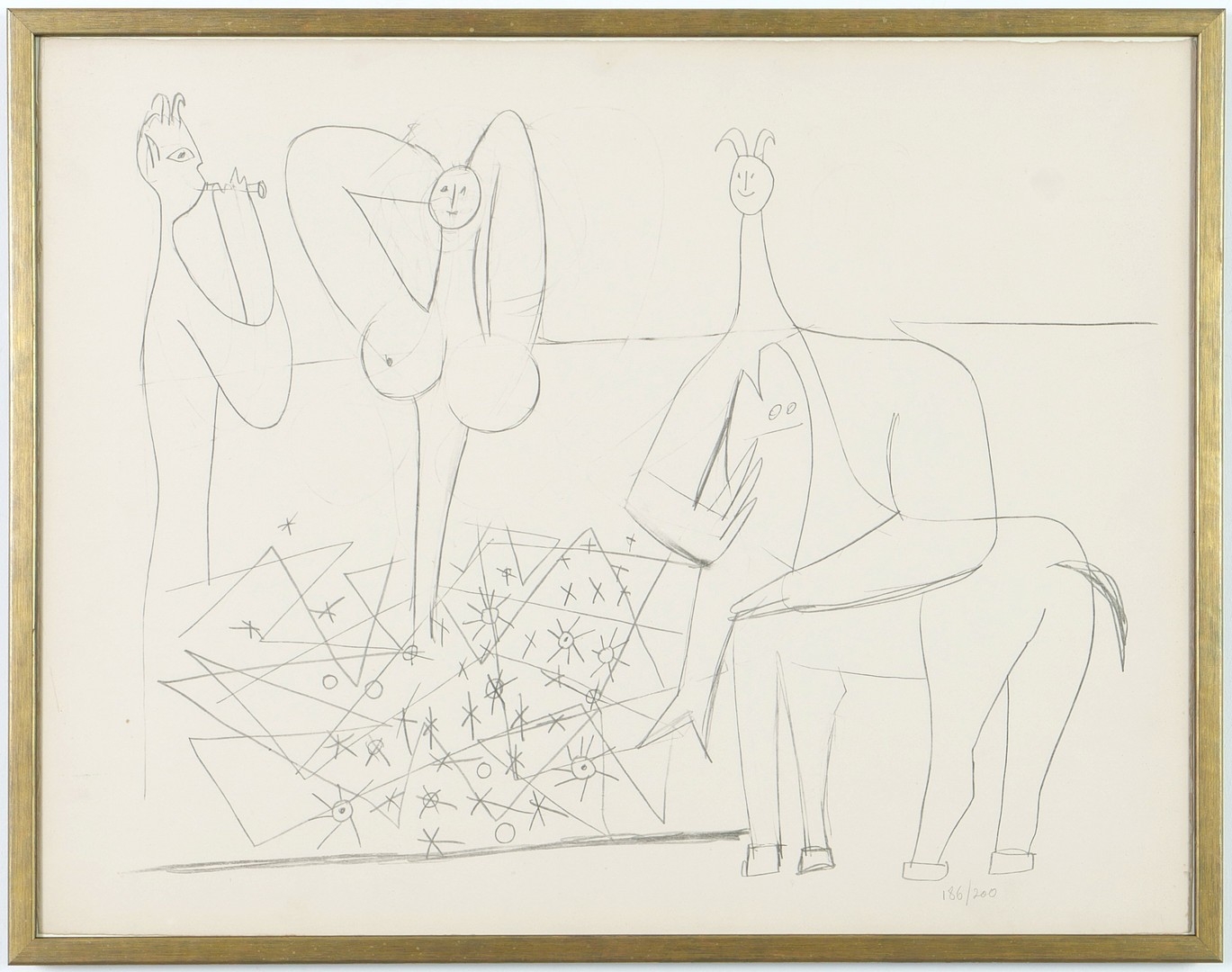 PABLO PICASSO. FAUN WITH FLUTE. (d) Lithograph numbered in pencil on arches paper, suite: Mes Dessins DAntibes, 1958