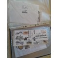 Box of oddments : Prinz binoculars, brassware, stamps First Day Covers and other items