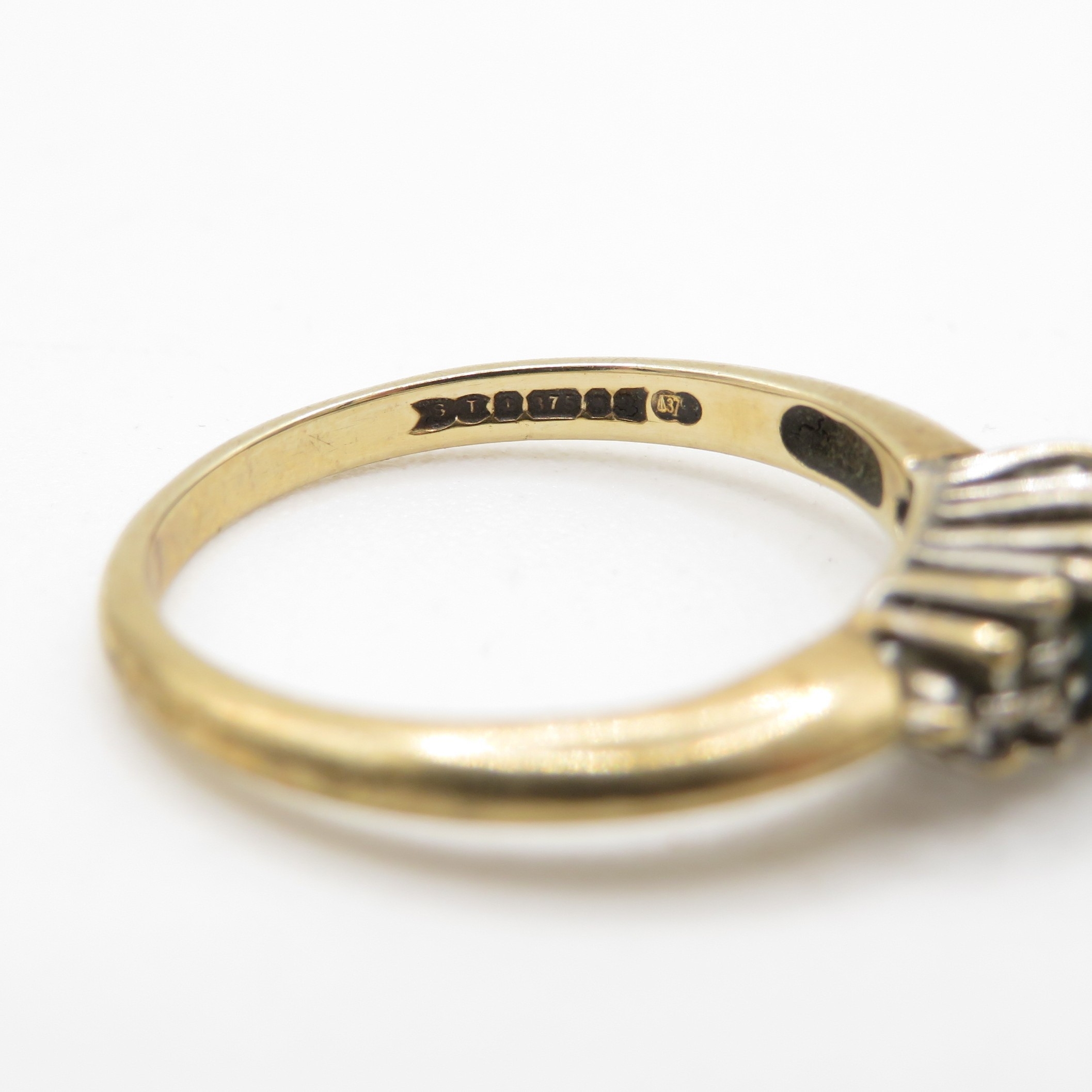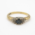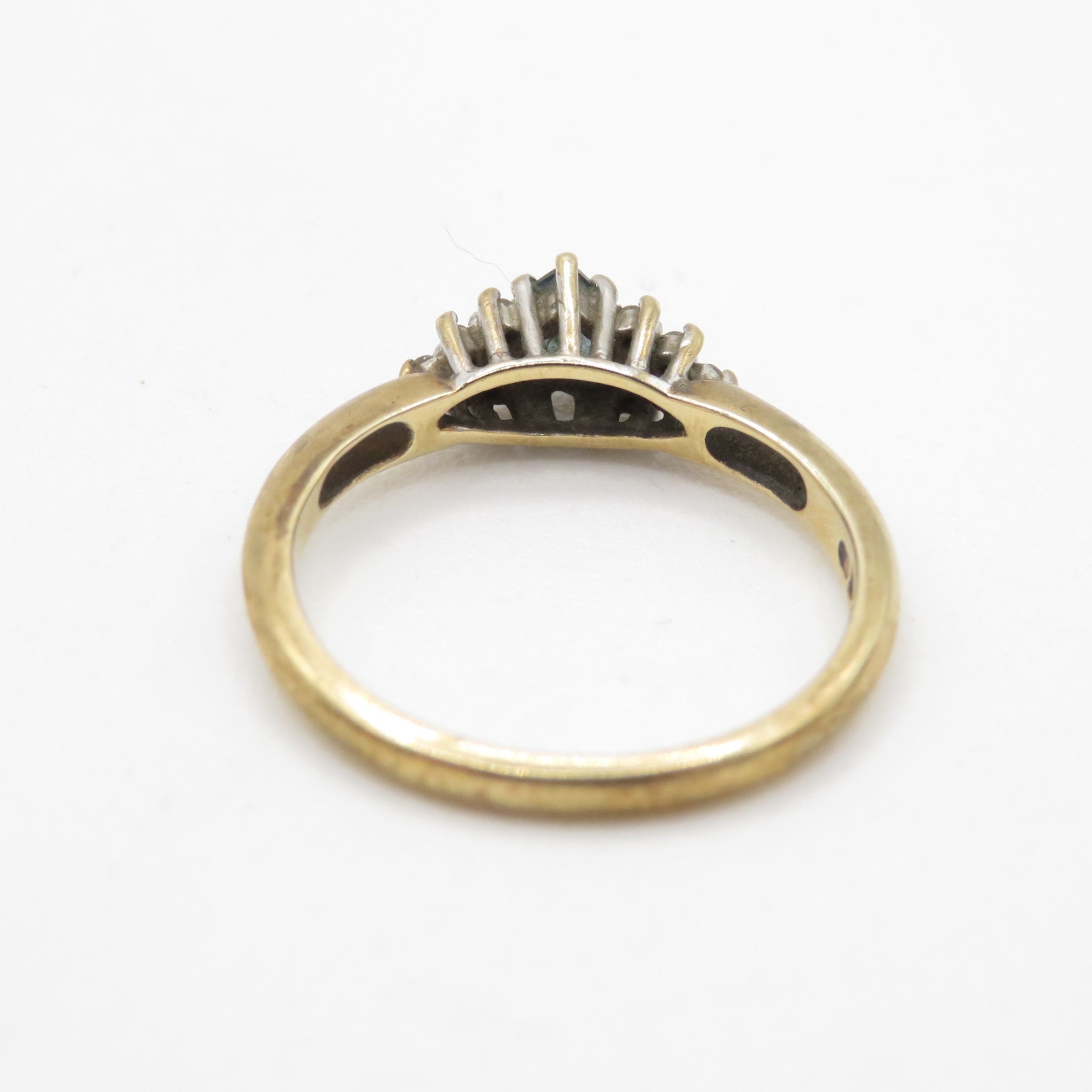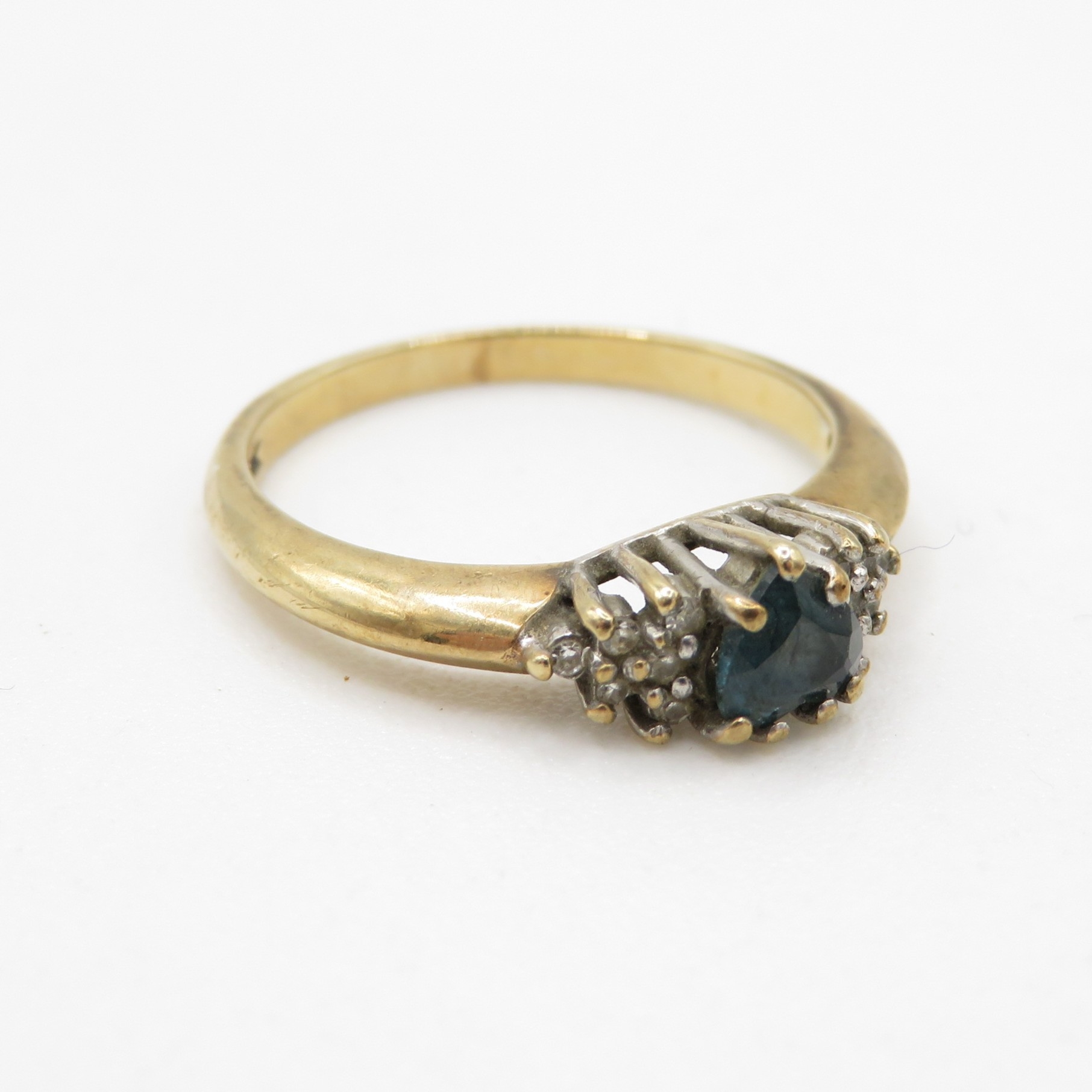 9ct gold diaond cluster & blue gemstone clawset dress ring (2.3g) Size N
