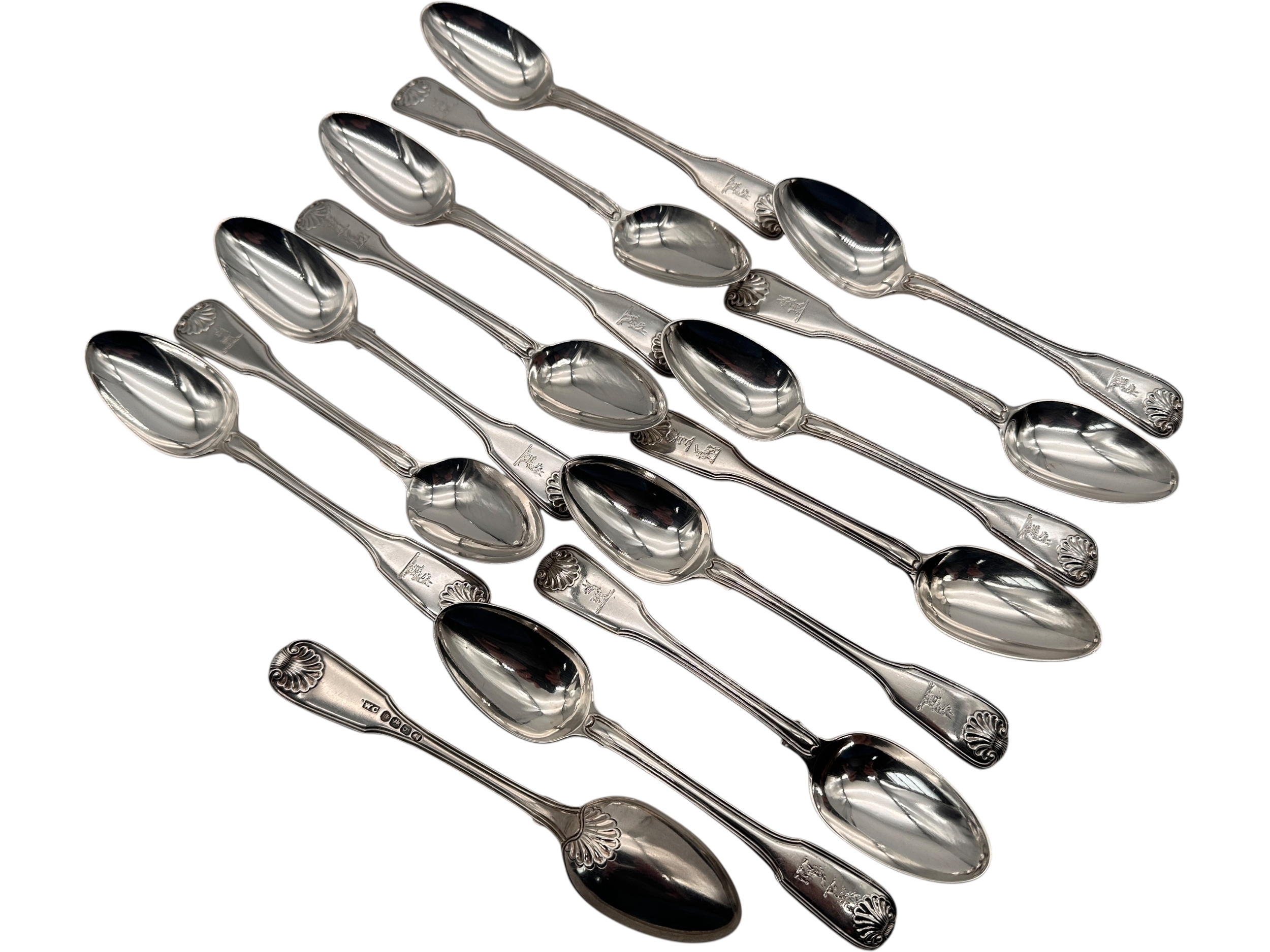 Set of 15 Georgian Hallmarked Silver Tea Spoons. 540g