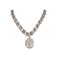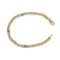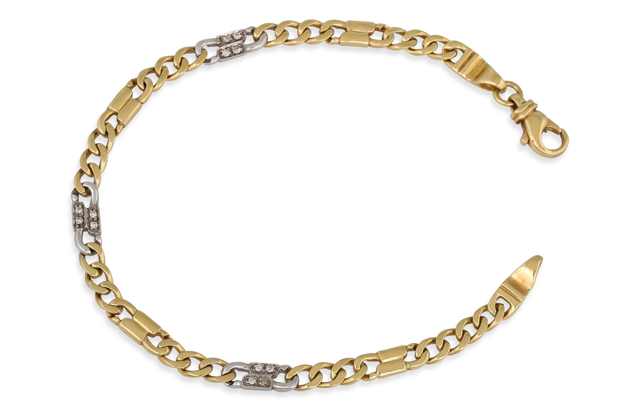 AN 18CT GOLD FIGARO LINK CHAIN, two colour gold and diamond set, 7" long, 10 g.