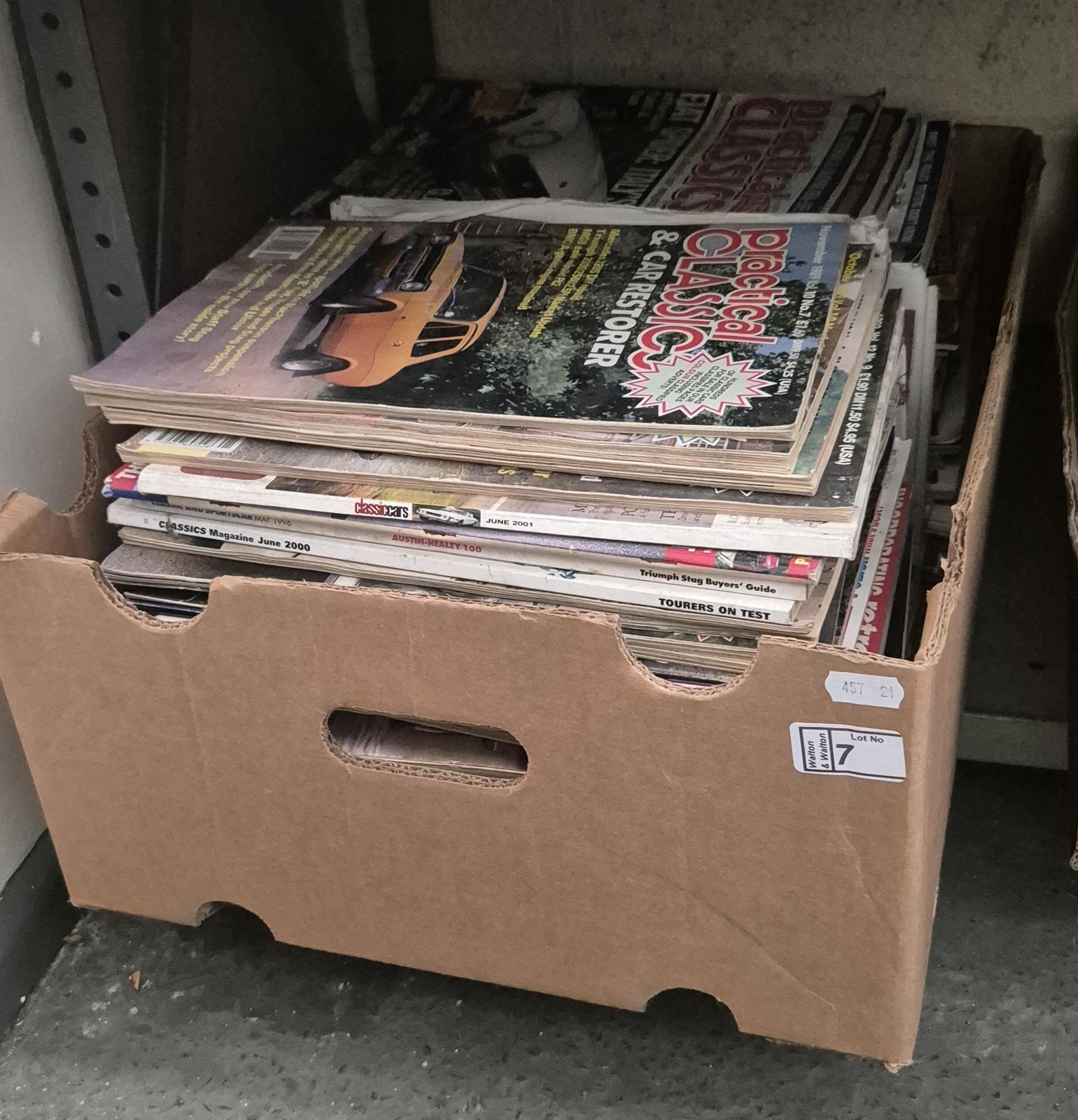 Box containing 'Practical Classics' car magazines