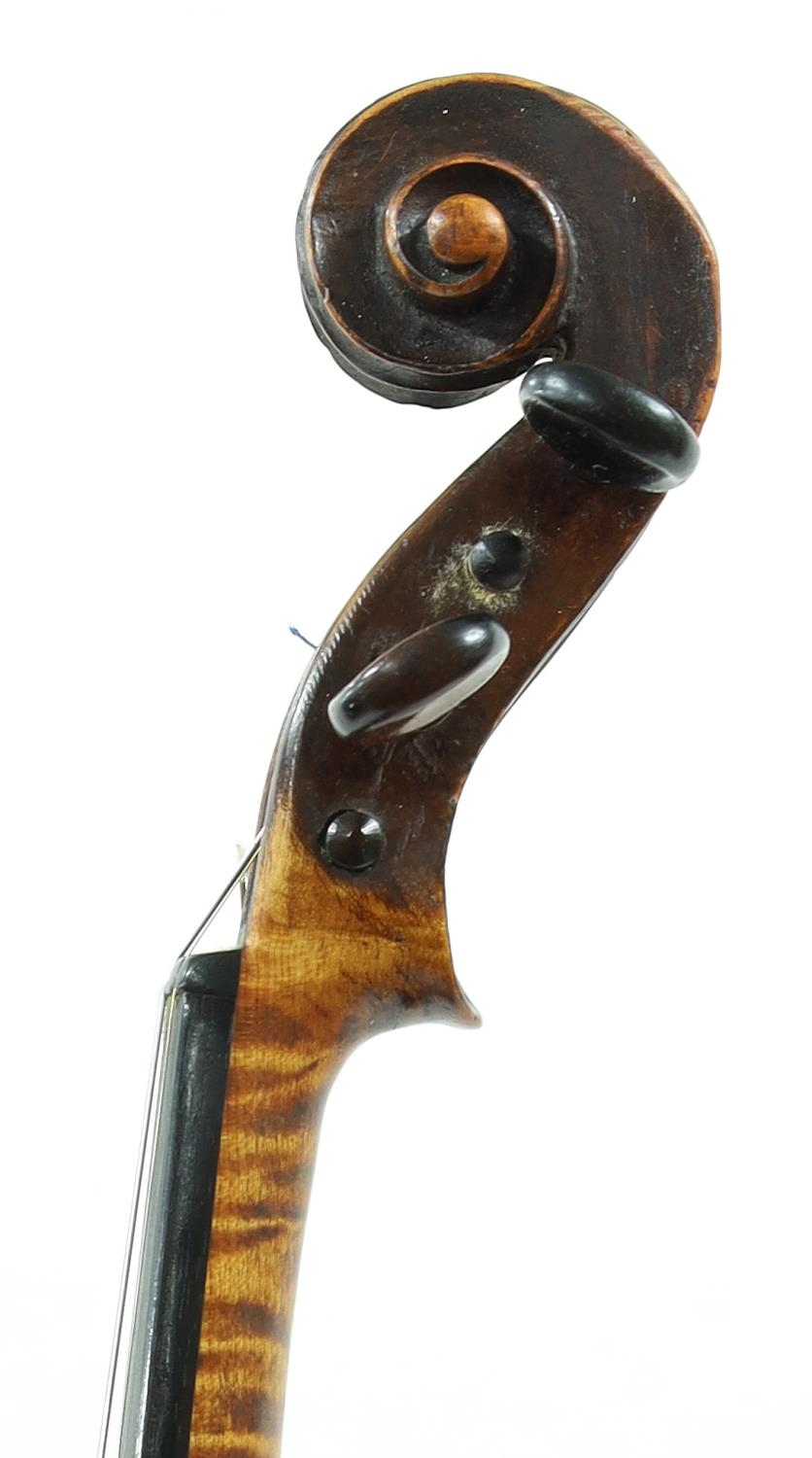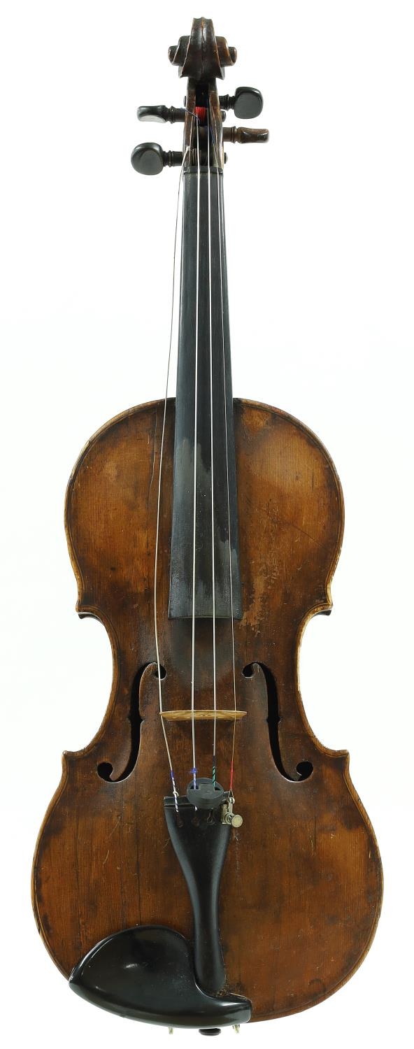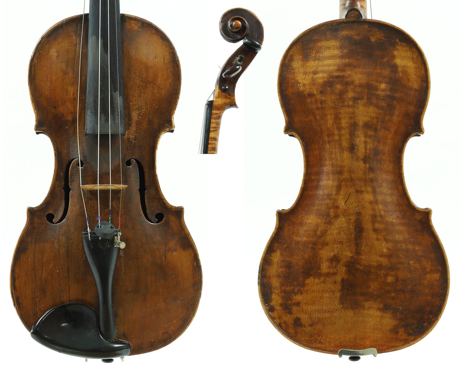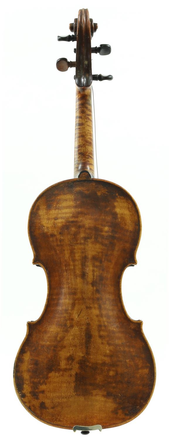 Interesting 18th century German violin labelled and possibly by Martin Smiller...Anno 17*7, the two piece back of very faint medium curl with plainish wood to the sides and head, the table of a fine width grain and the varnish of a yellow-brown colour, 14 1/8", 35.90cm, case