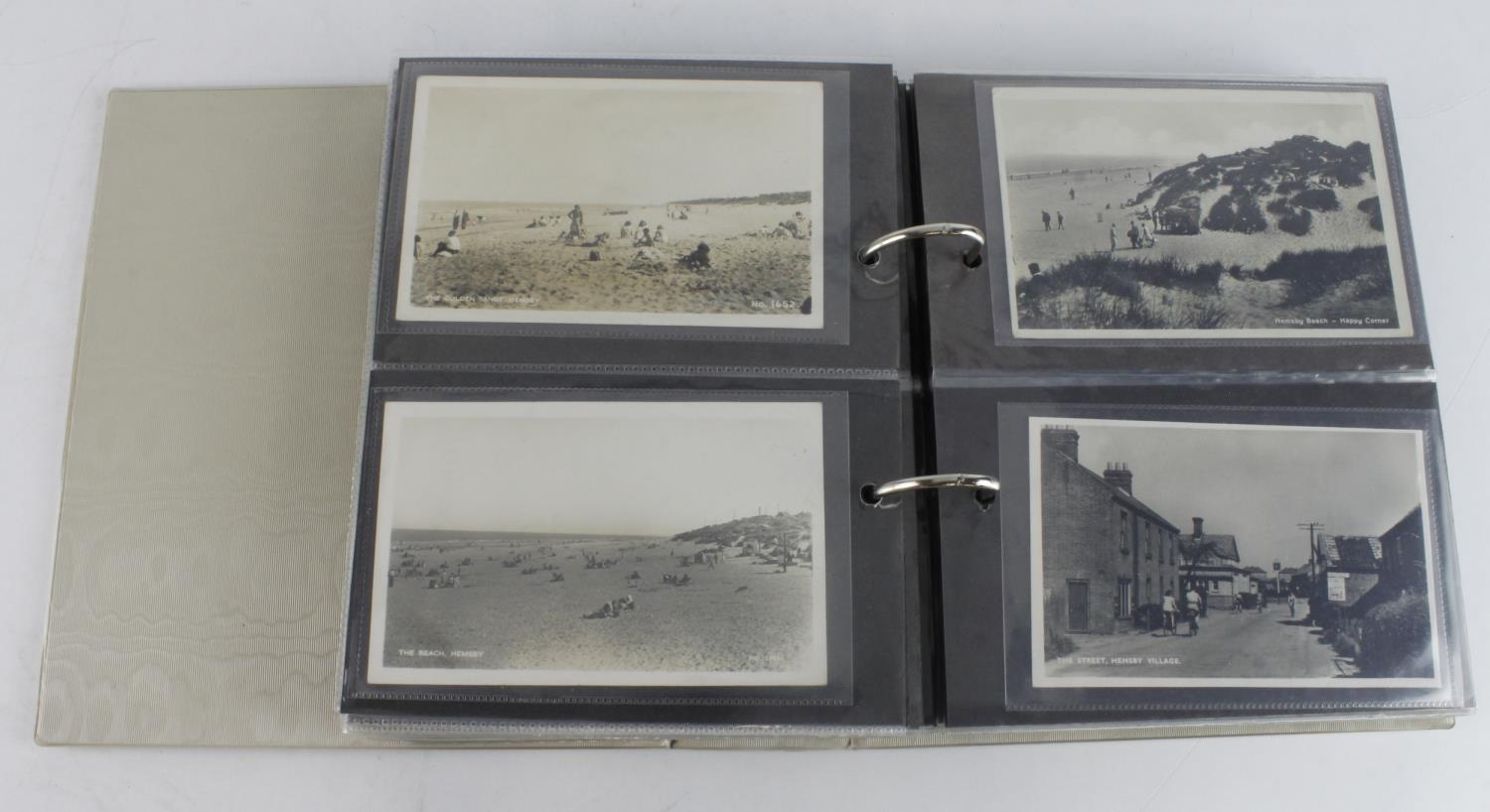 Norfolk, Hemsby: Collection in an album of mainly older RP cards of the village including houses and beach scenes. A significant number show areas destroyed by coastal erosion. Interesting lot (approx 100+ cards)