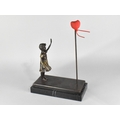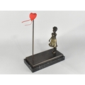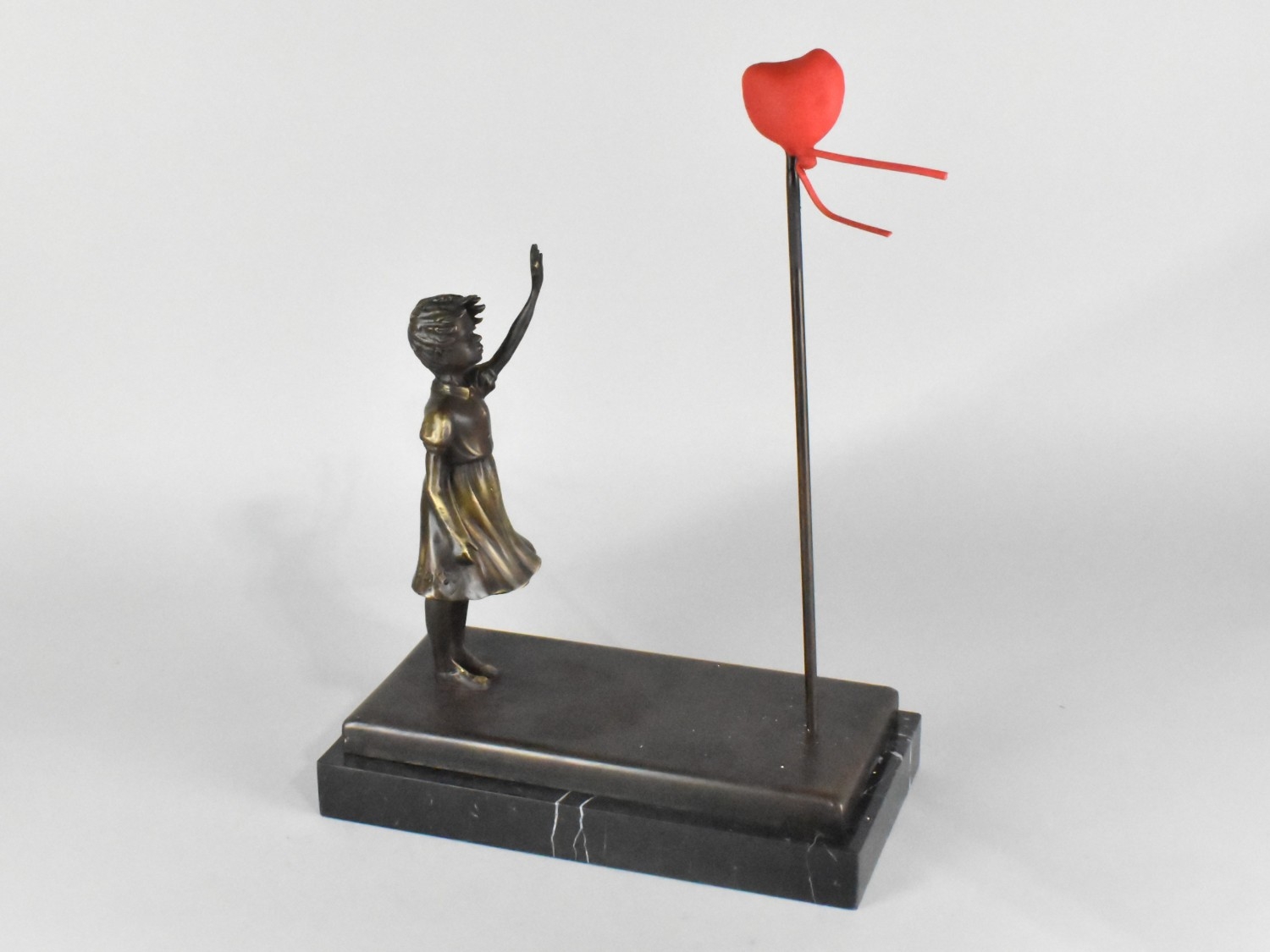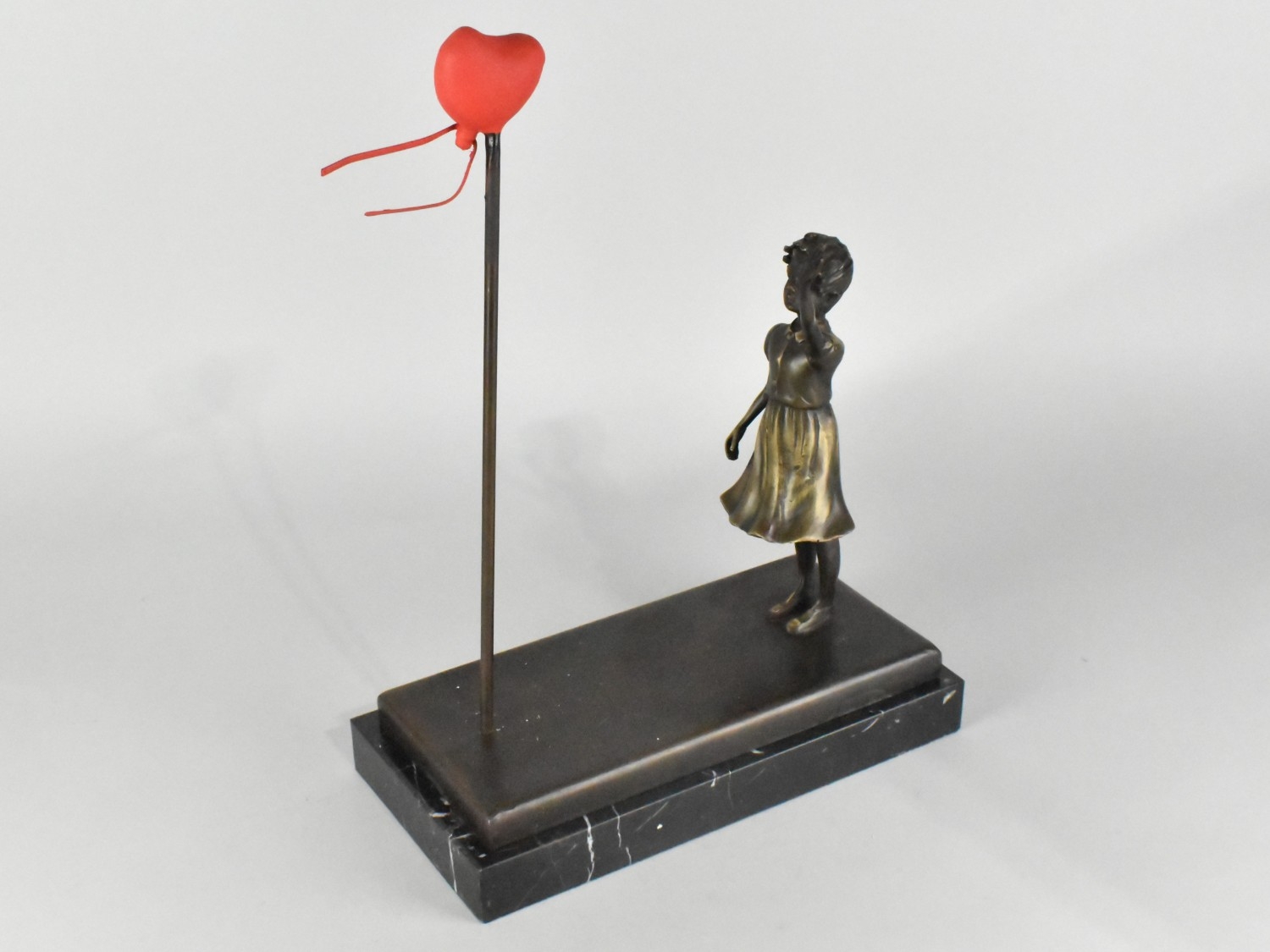 A Contemporary Bronze Sculpture after Banksy, "The Girl and The Red Balloon", Marble Plinth 28cms Wide