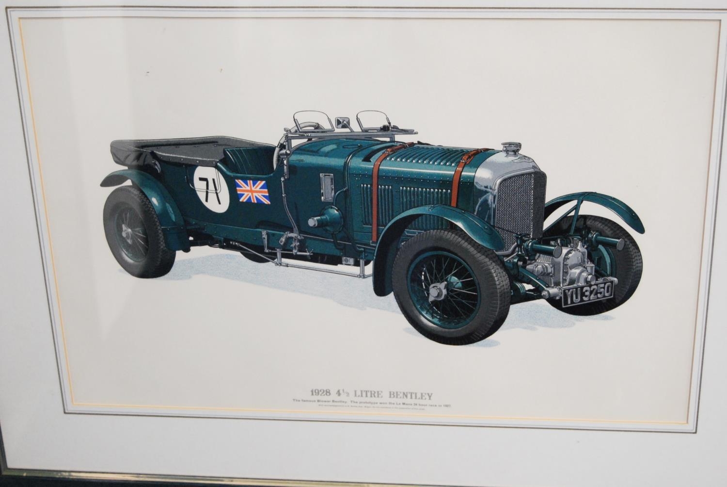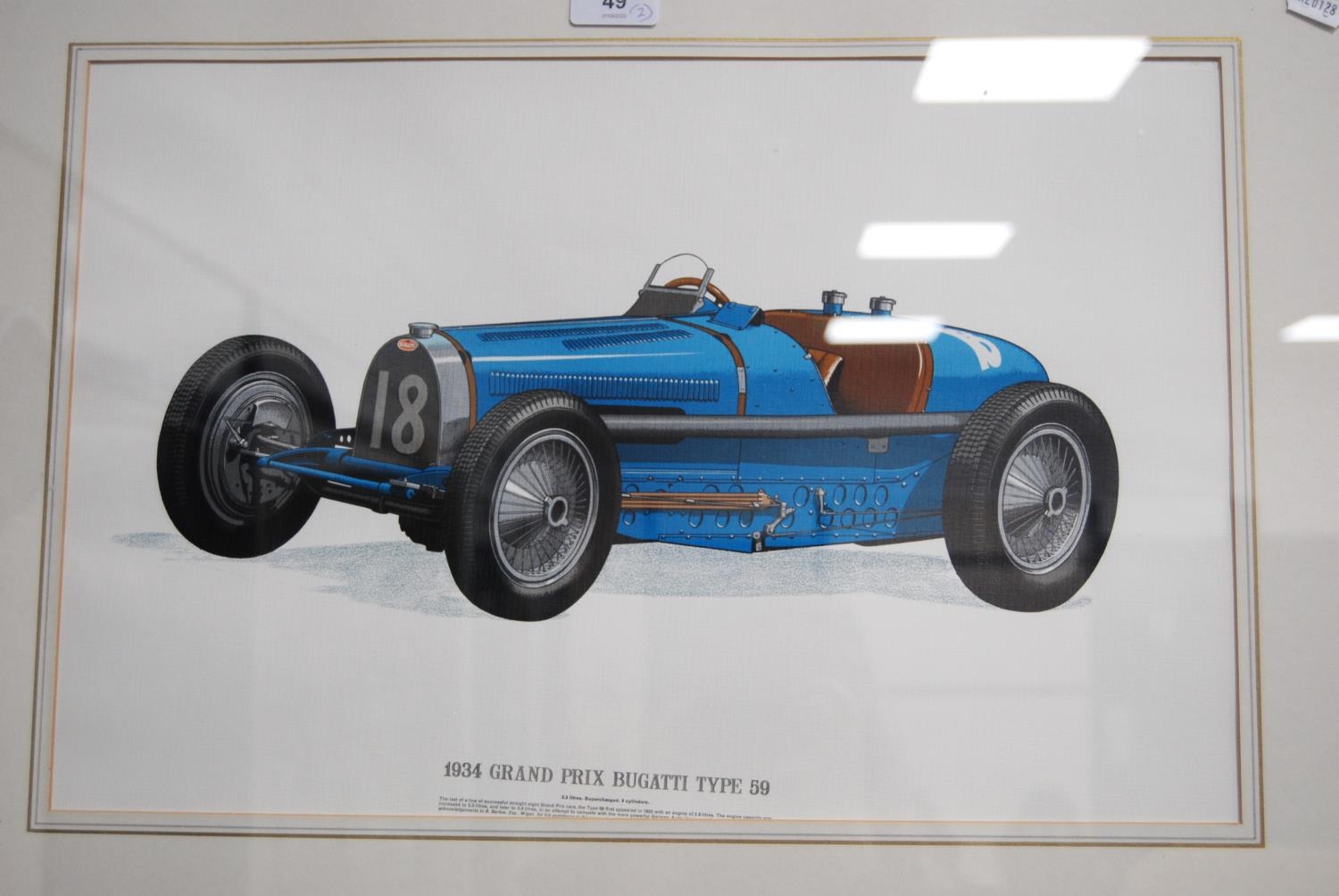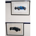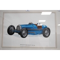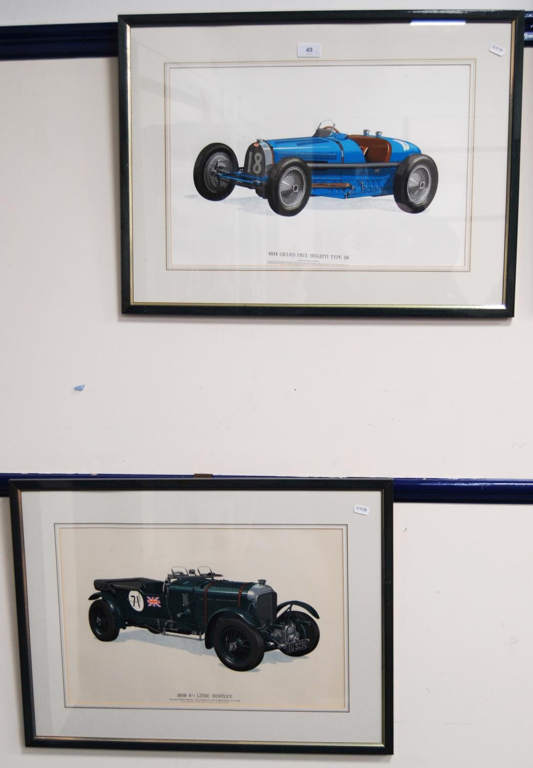 Two advertising pictures for a 1928 4½ litre Bentley and a 1934 Grand Prix Bugatti Type 59. (2)