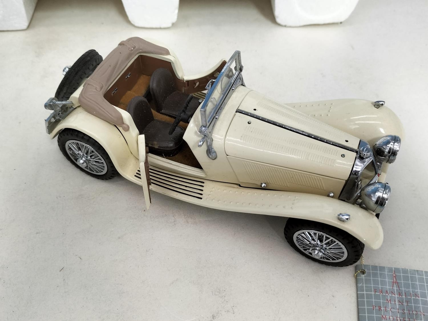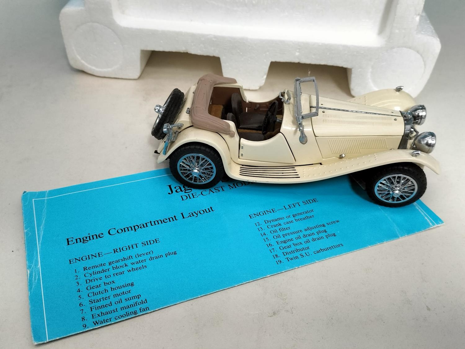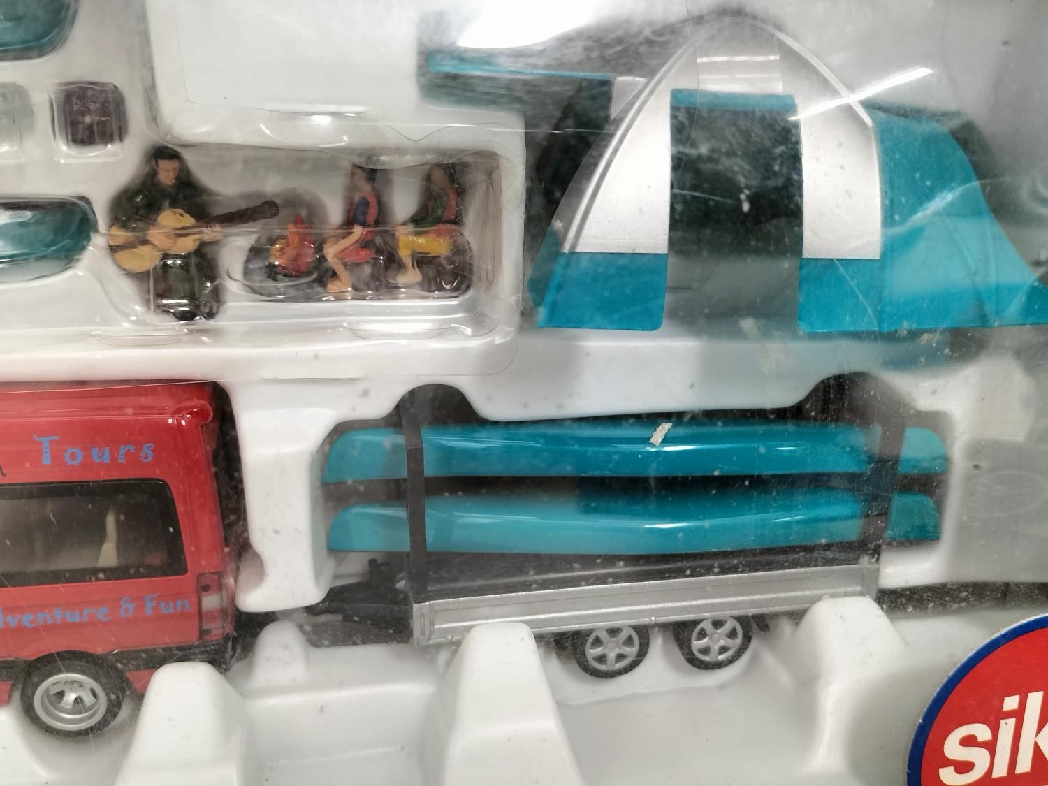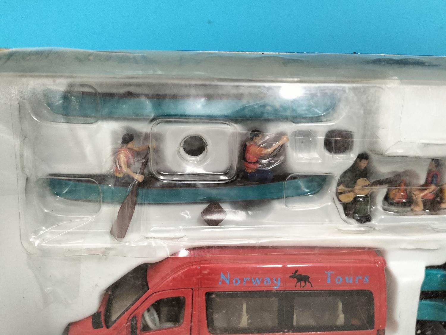 Collection of Die-Cast Vehicles (5) to include Boxed Siku 2545 Mercedes Sprinter with Canoe Trailer (Complete), Boxed Tekno Scanoa 143M Box Van, Cased Kassbohrer Setra Bus Type S, Boxed Polistil March 761 Ovoro F1 Car and a Boxed Franklin Mint 1938 Jaguar SS-100.