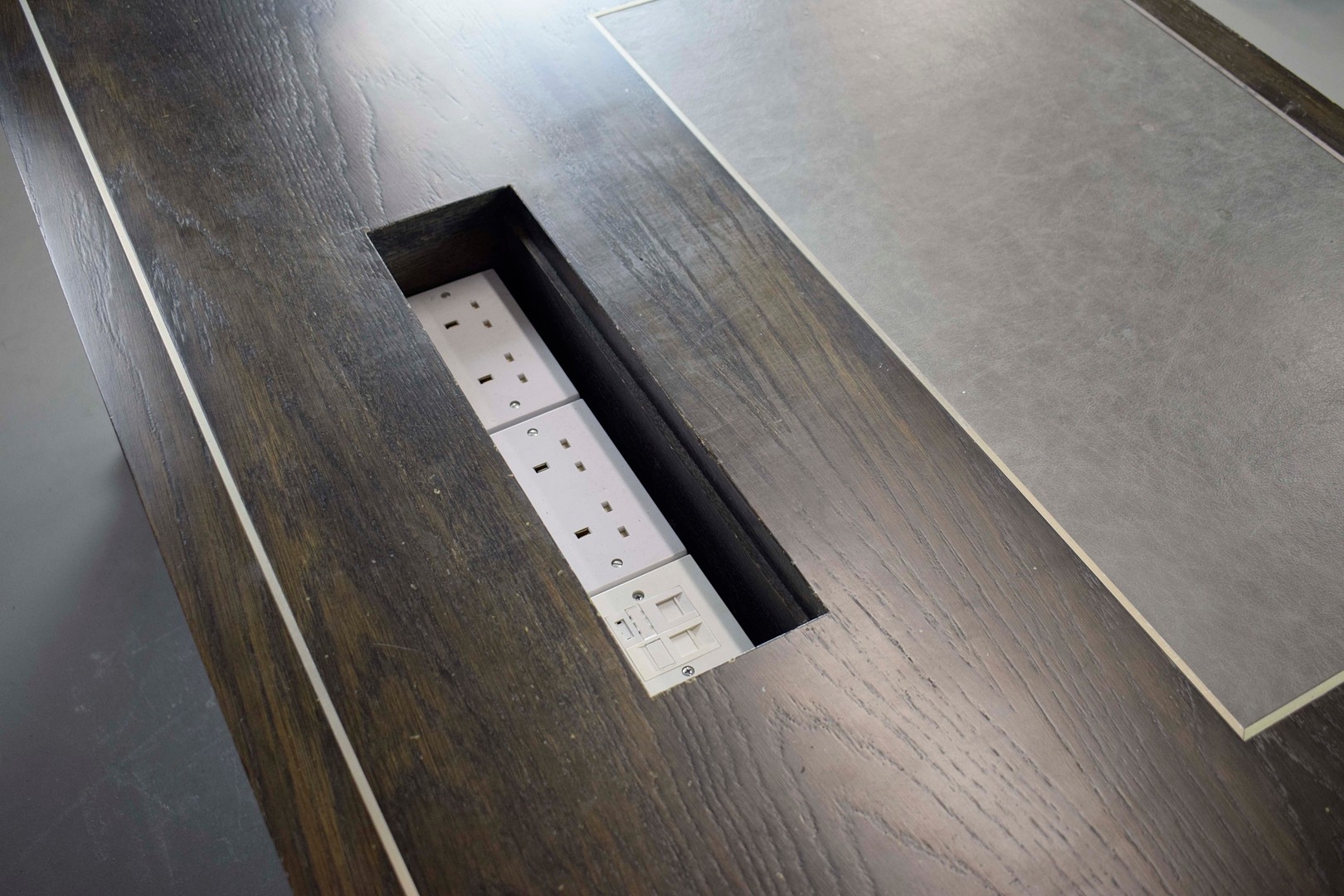 DESK, BY ARCHER AND SMITH. executive style 90cm d x 183cm w.