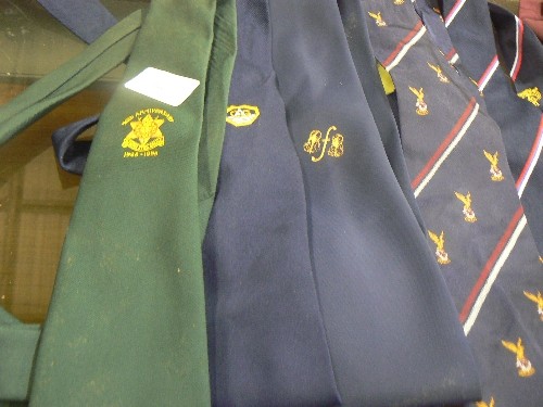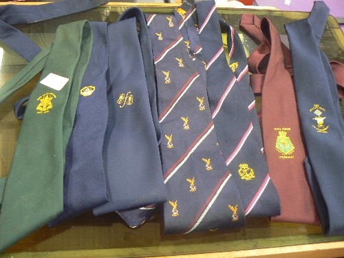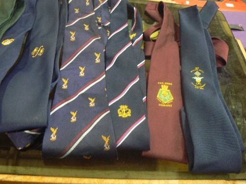 TIES WITH EMBLEMS. INCLUDES 50TH ANNIVERSARY-BURMA STAR, HMS COMUS 'LEAD ON APACE COMRADES'