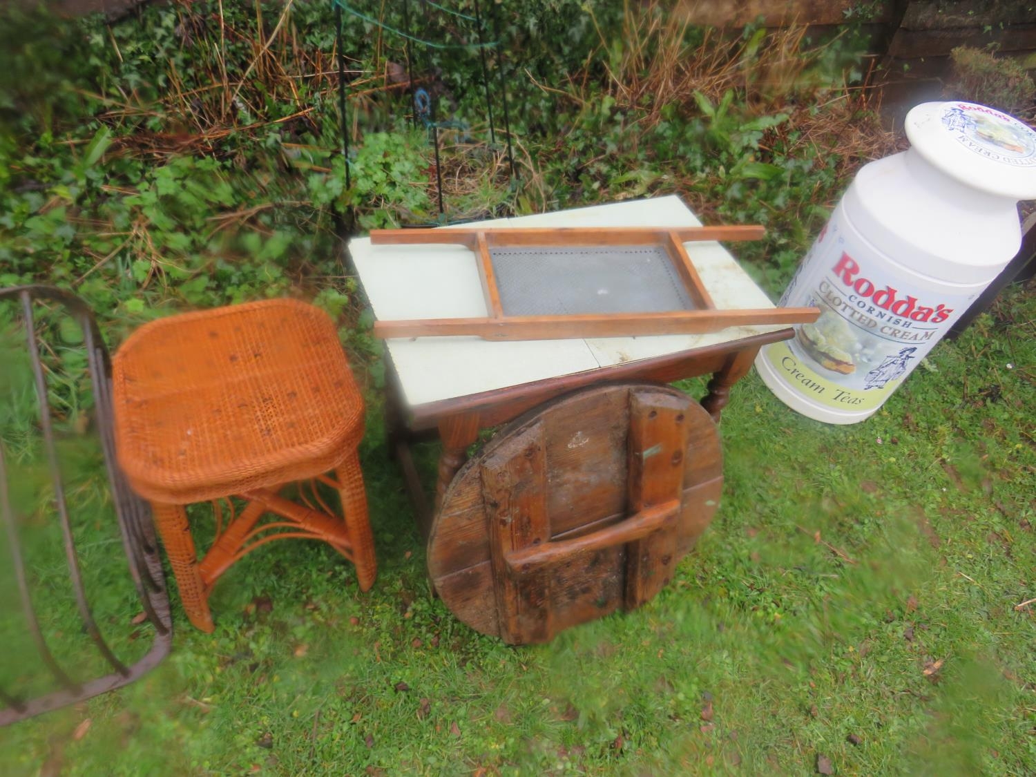 Scrub board,table,chair & wooden lid