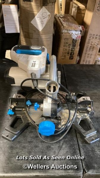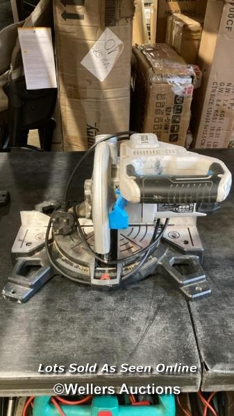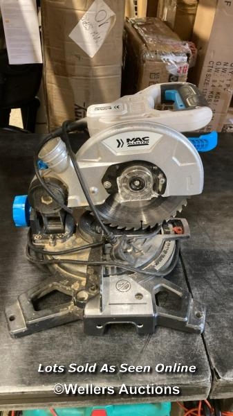 MAC ALLISTER 1500W 220-240V 210MM CORDED COMPOUND MITRE SAW / VIEW, BID AND BUY IN THE ROOM, THEN TAKE AWAY THE SAME DAY / VIEWING FROM 8AM ON THE DAY OF THE SALE