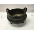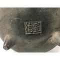 A Chinese bronze censer with twin handles marked to the base DE Xuan . 10 cm .