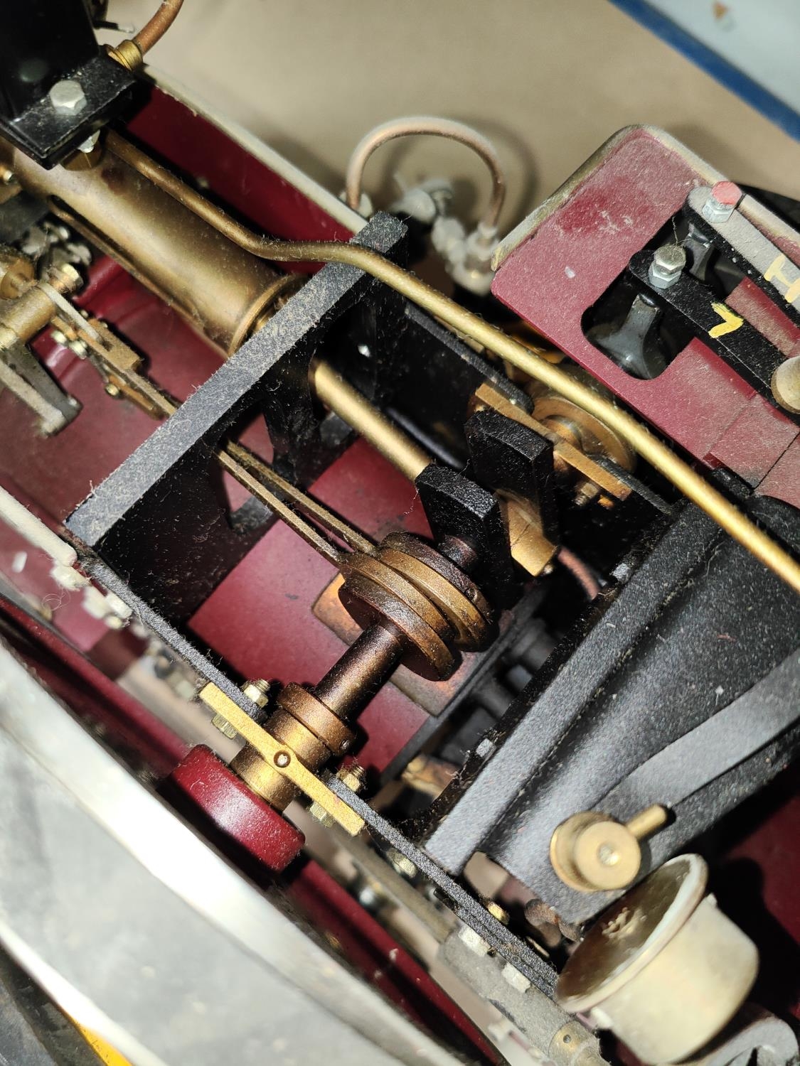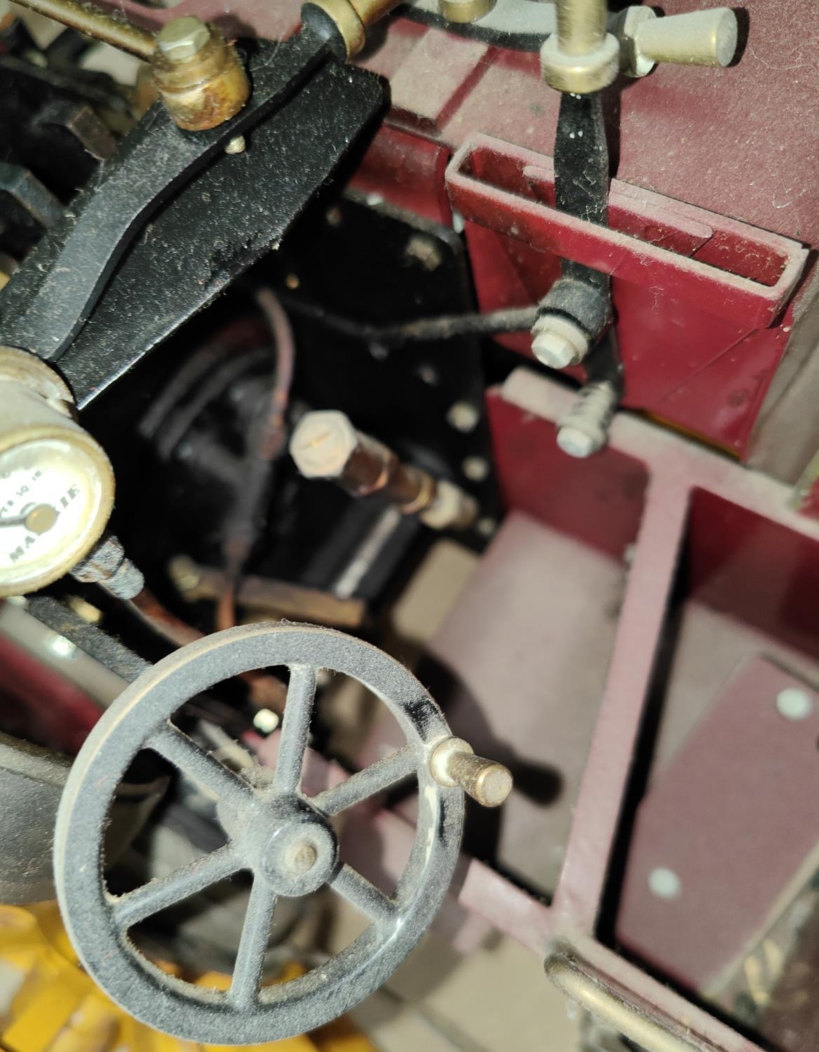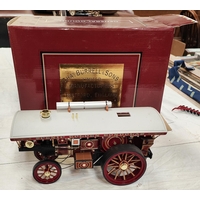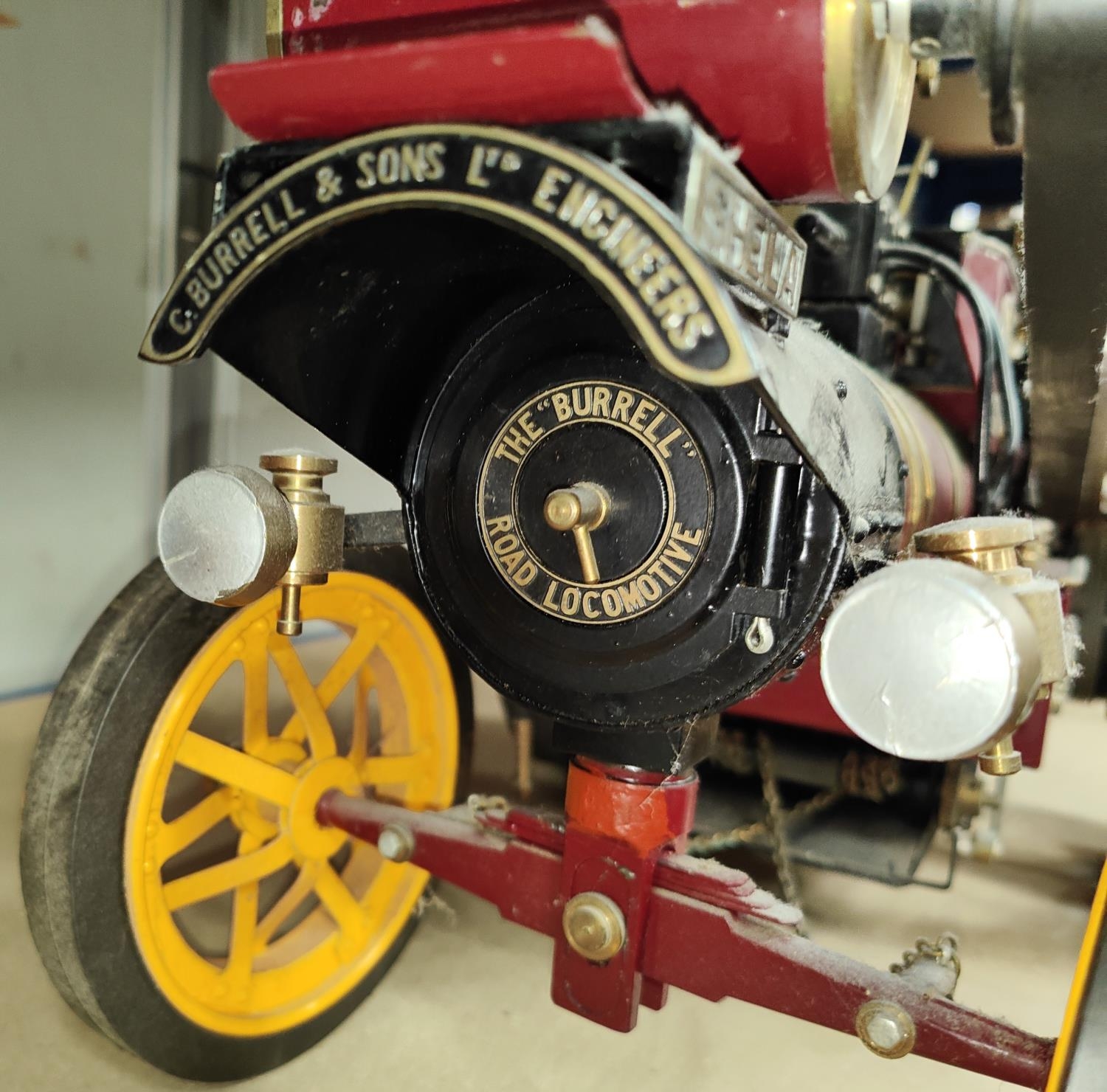 Markie Models: 1/10th scale live steam model of a Burrell Showman's engine No. Arj-2064, name plate Sheila, with spare chimney and roof, 'Ray Daniels Poynton' in maroon livery, yellow wheels, length 55cm (from deceased's estate - not known when last used, no box or papers)