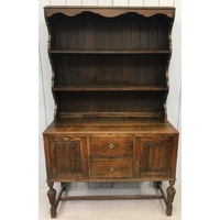 Three piece Double Wardrobe. Double doors aside glass/curtained centrepiece, over a single deep drawer. Bevelled-edged mirror glass doors. Interior brass hooks. No key present.