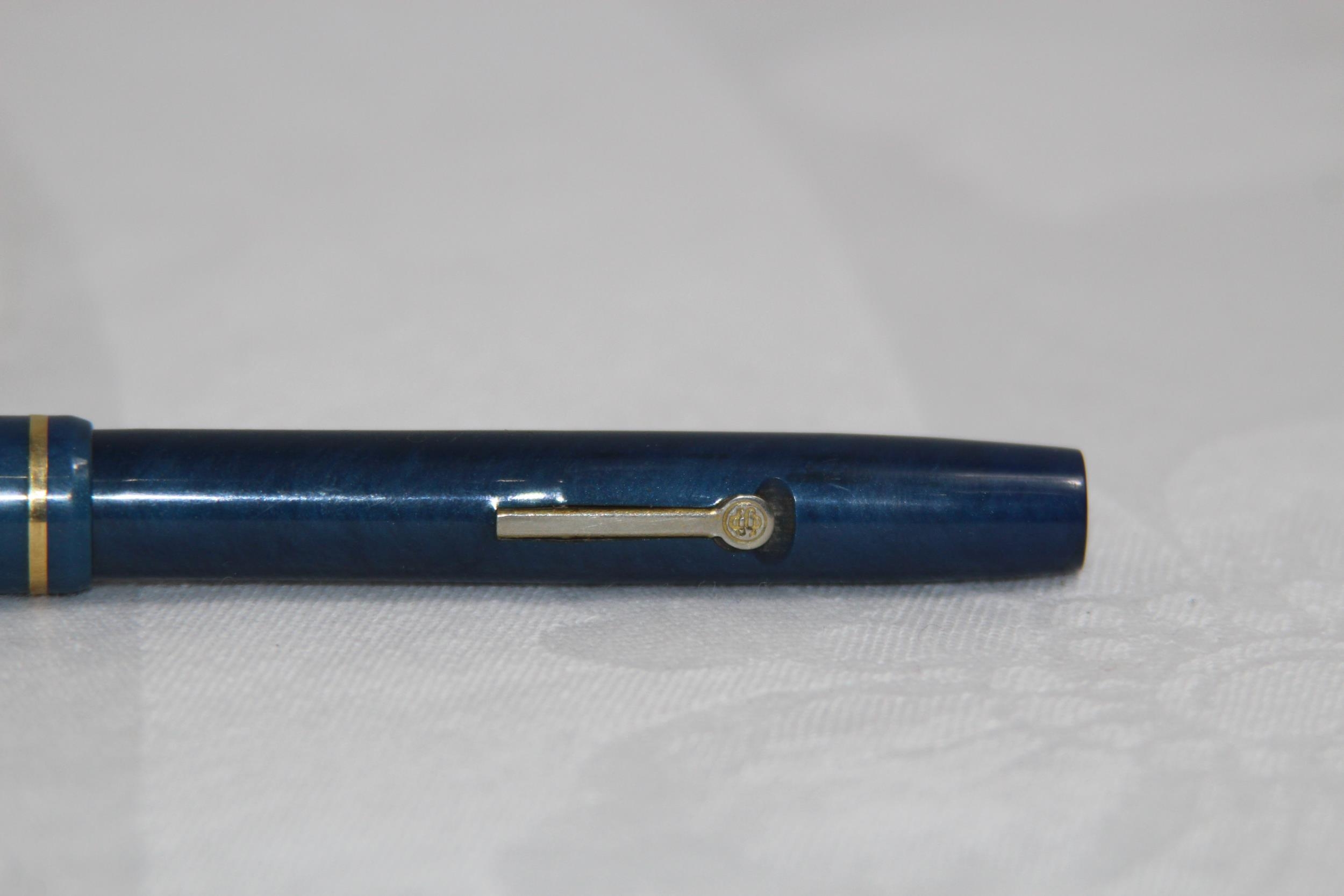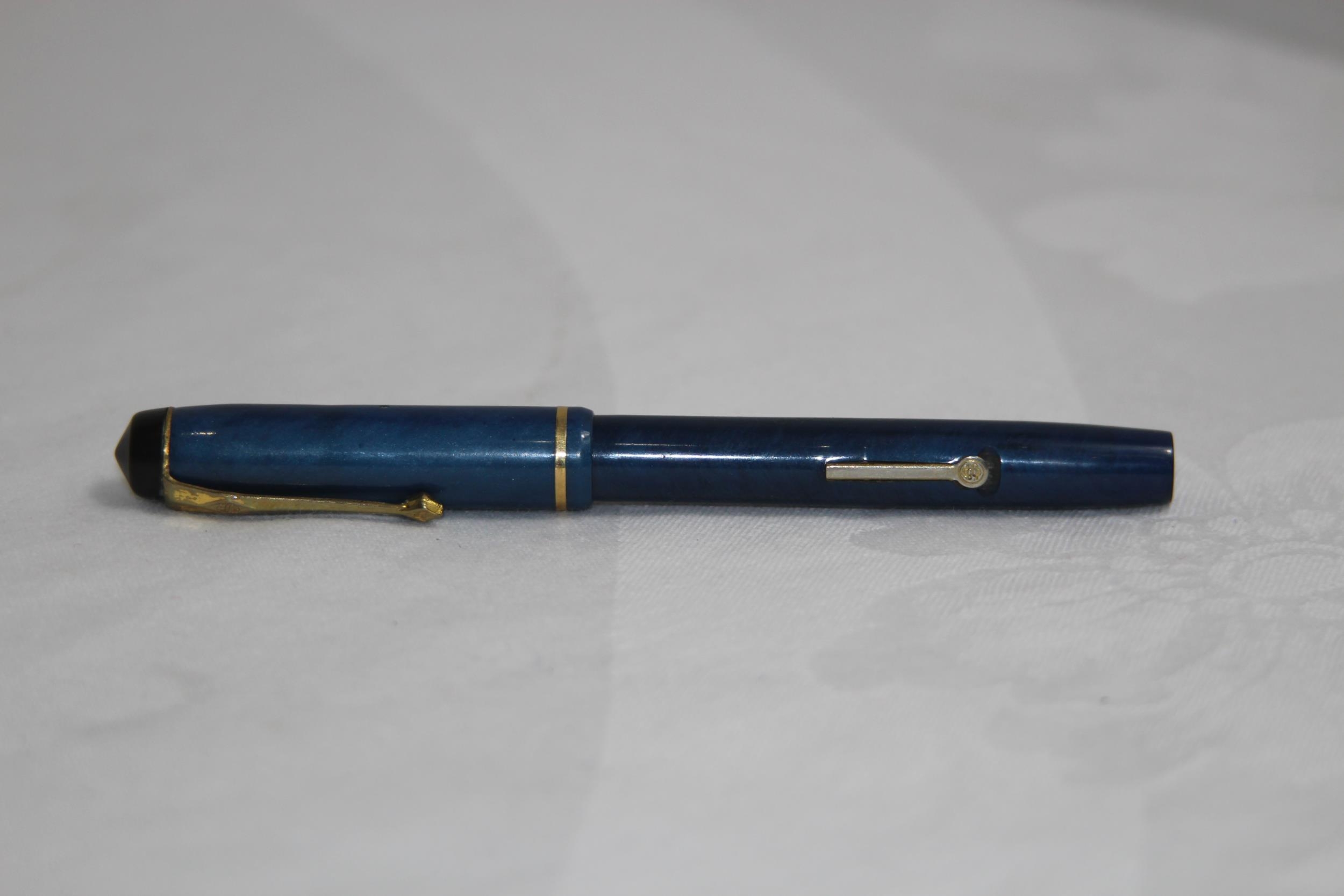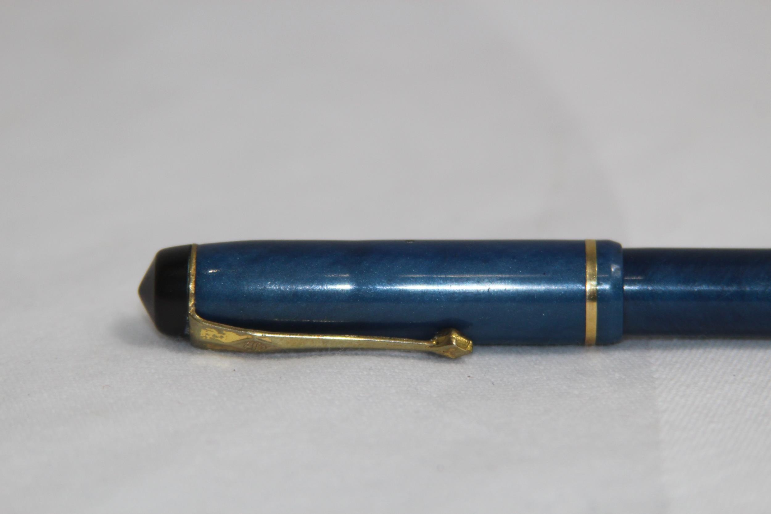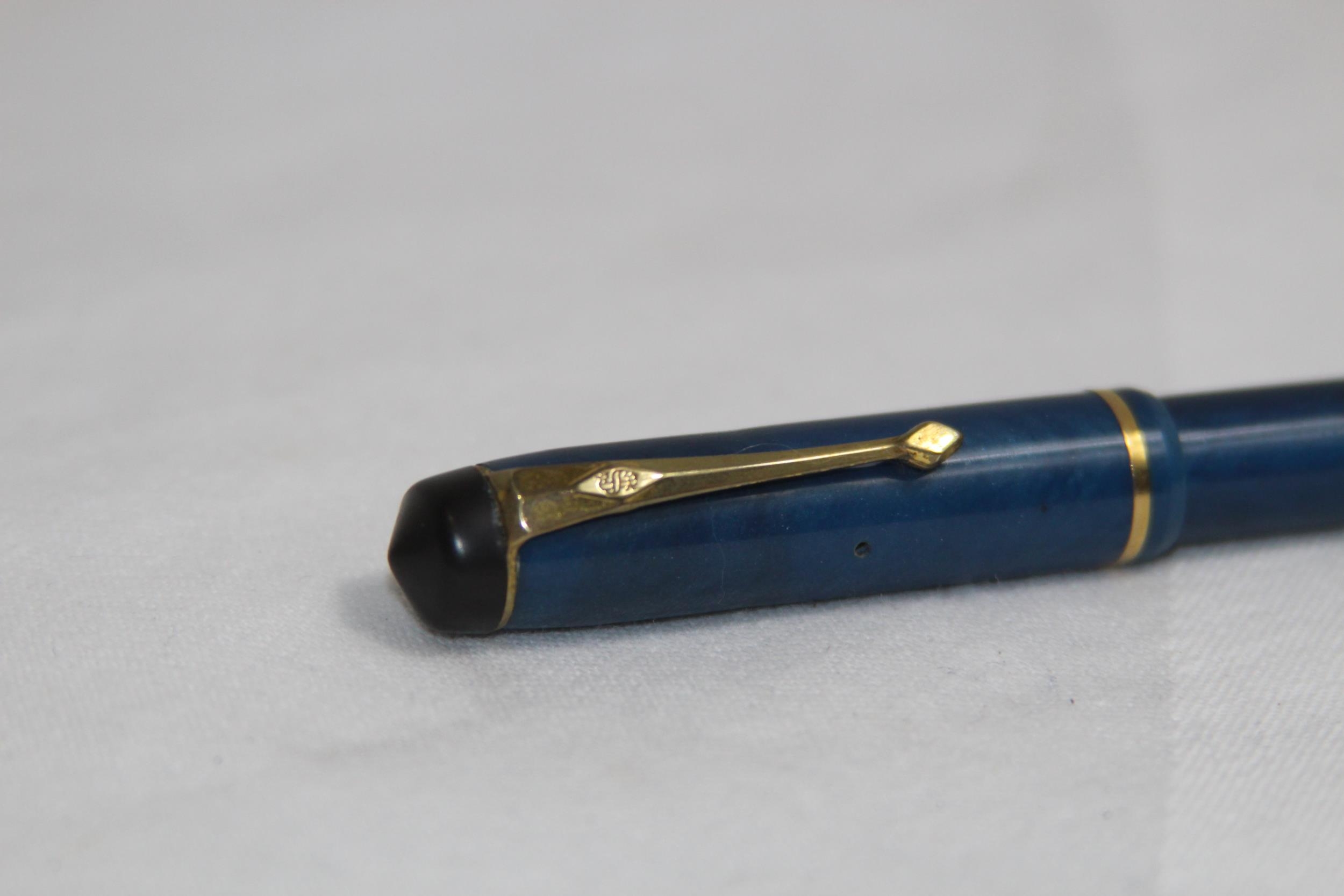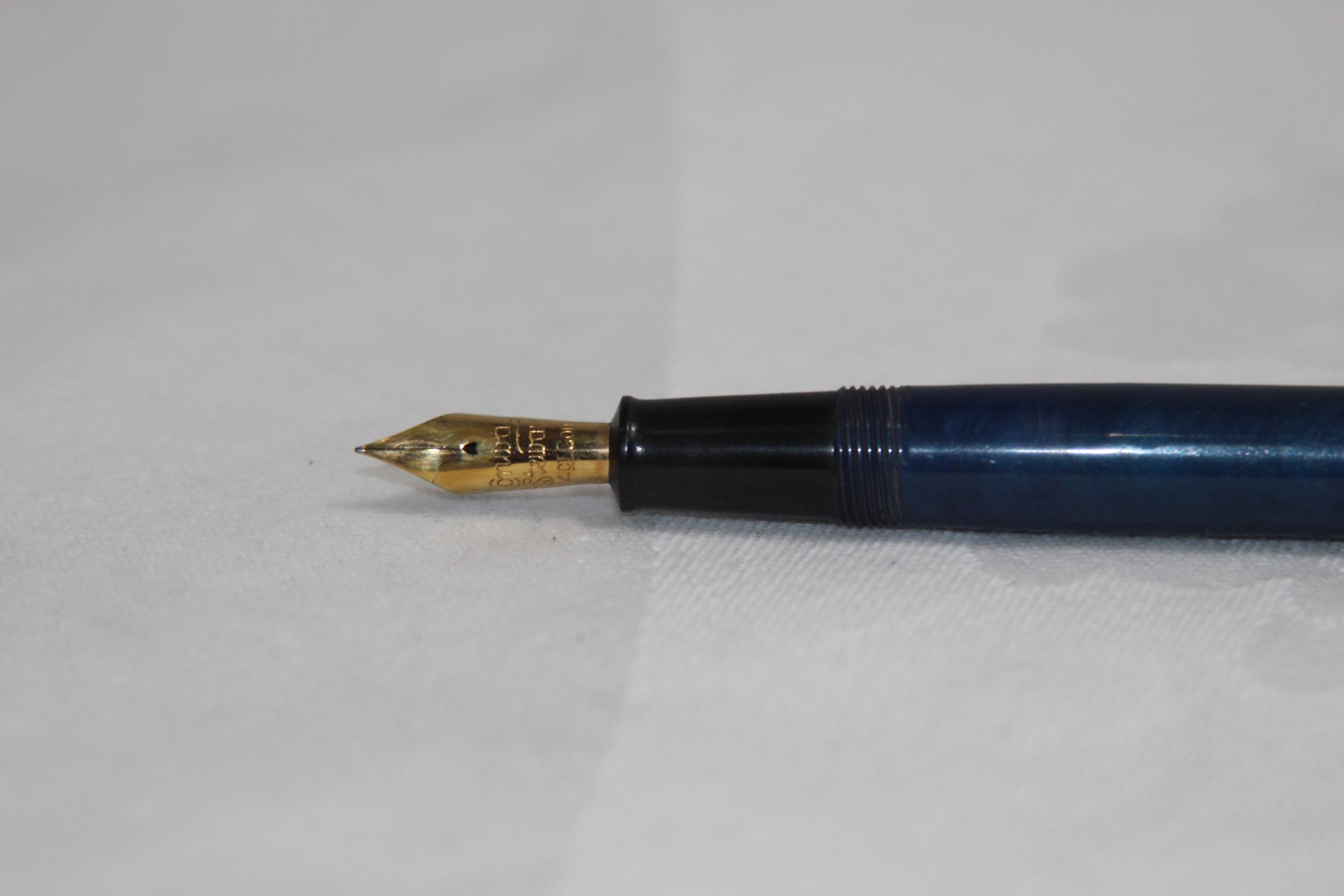 "CONWAY" PEN No 759, A 14 CT GOLD NIB VINTAGE CONWAY STEWART FOUNTAIN PEN WITH BLUE LACQUERED BODY