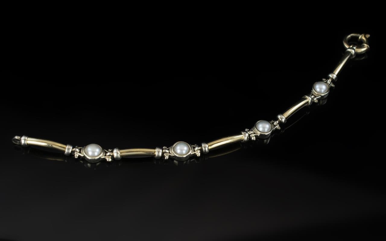 Ladies - Attractive Two-Tone 9ct Gold Contemporary Designed Pearl Set Bracelet with Excellent Clasp. Marked 9ct. All Aspects of Condition Is Excellent, Includes Clasp. Length 8 Inches - 20 cms. 20.5 grams.