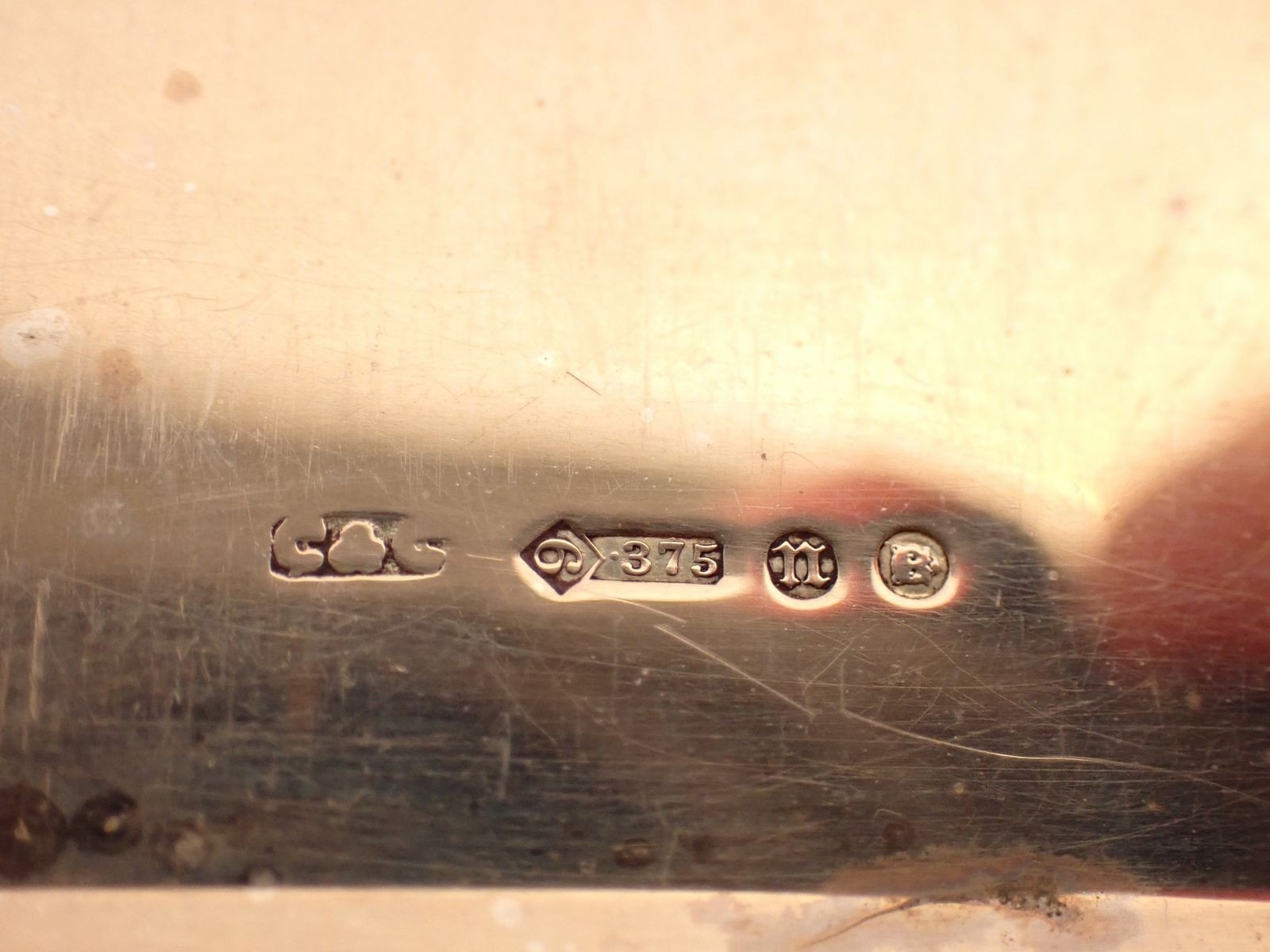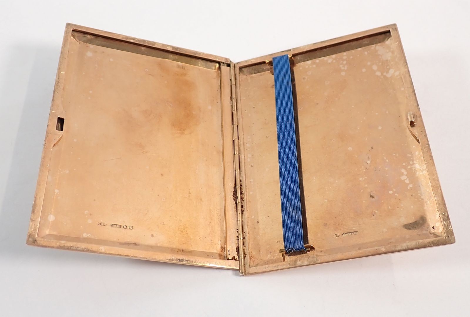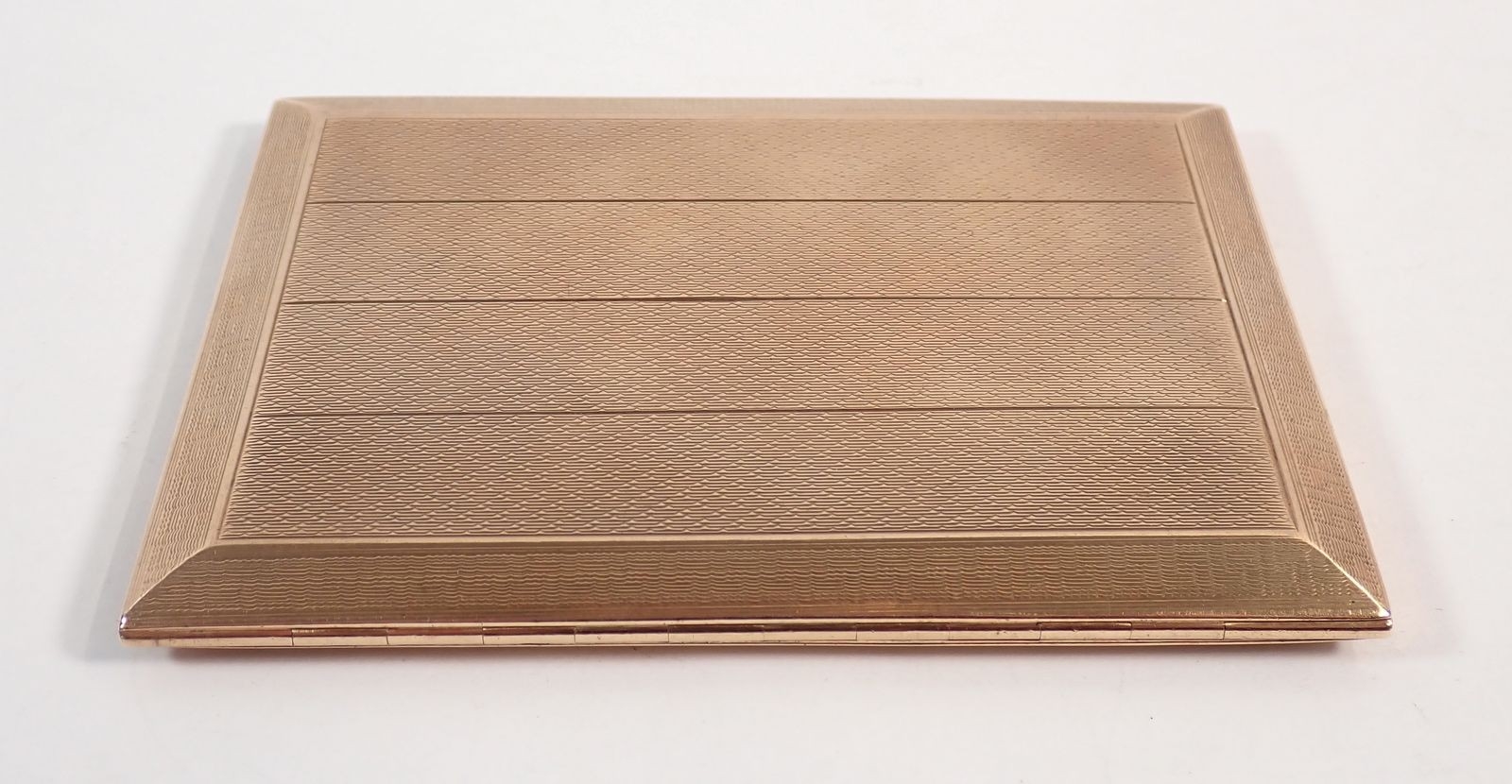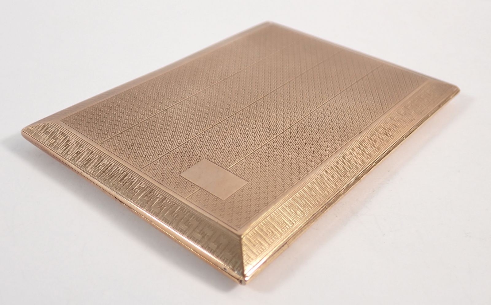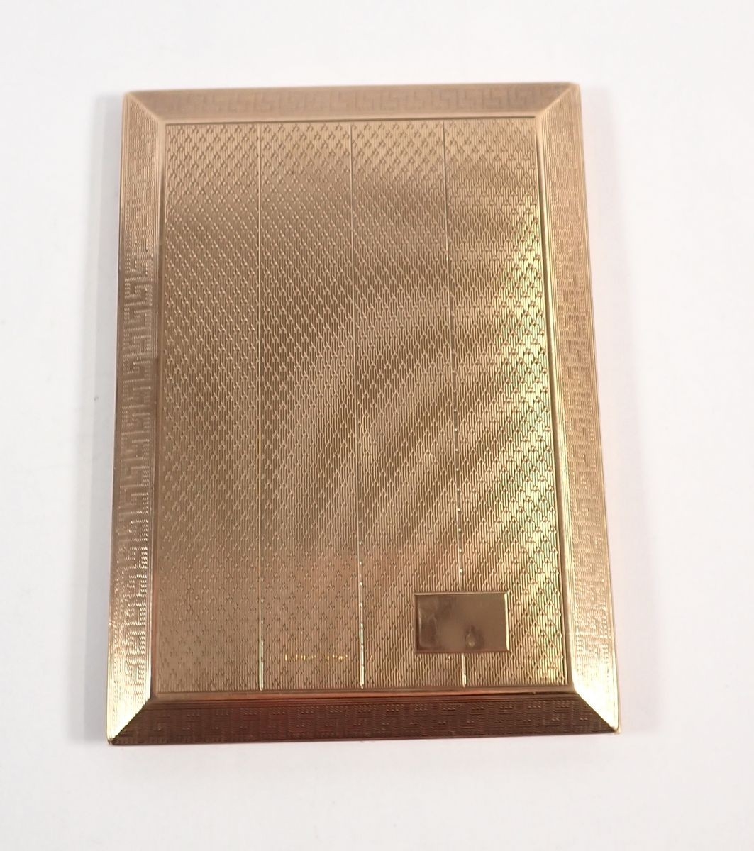 A 9 carat gold engine turned cigarette case with Greek key b...