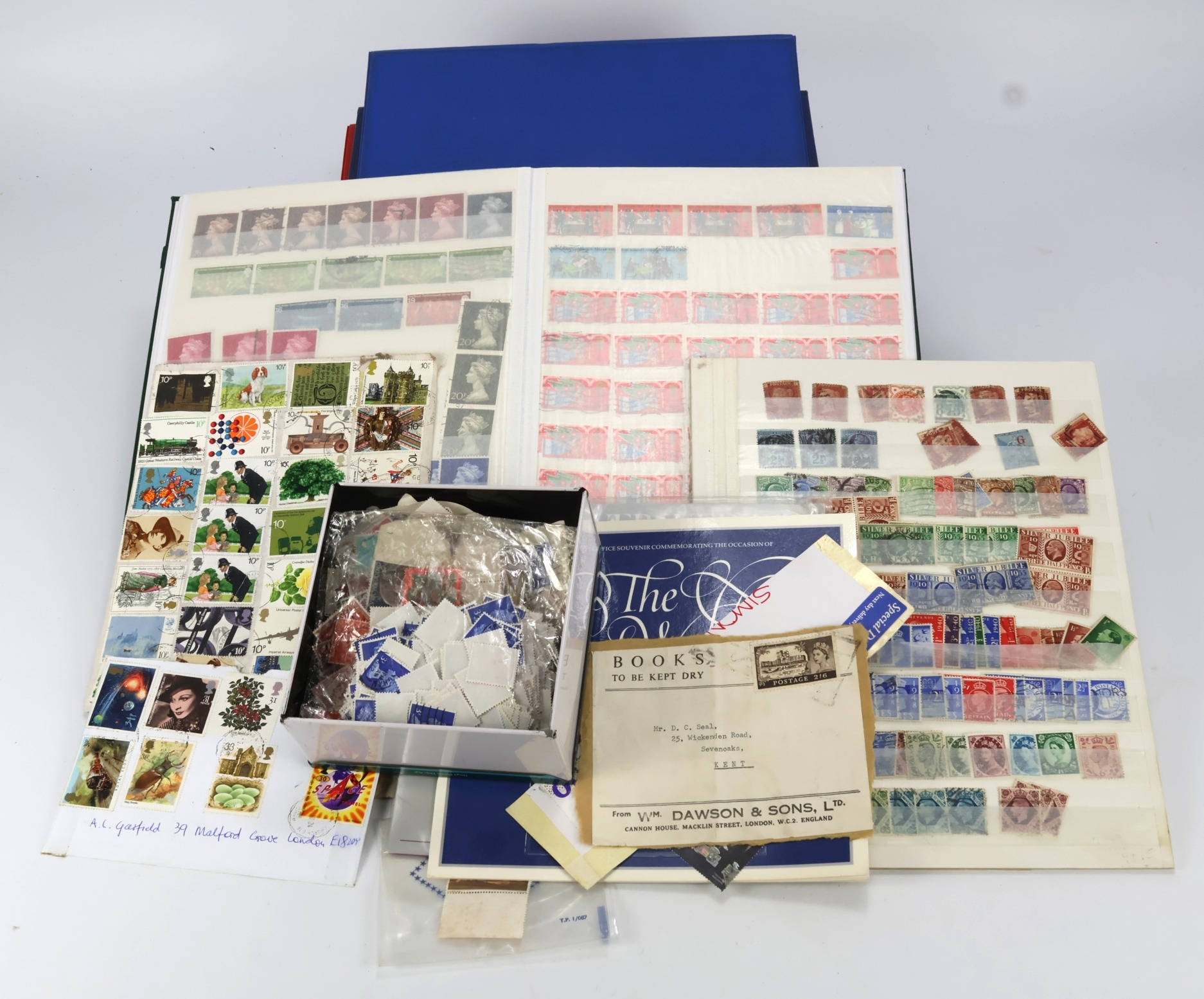 GB - various binders, albums, stockbooks, album pages, stamps in packets, tins and box. Main value in FV. Considerable qty in used QE2 special issues. Hingeless Lighthouse album stamps UM from 1953 QE2 Coronation to 1992 commemoratives / special issues only. Some phosphors from the 1960's noted. Small qty of QV. Wilding sets - Tudor, Graphites and multiple crowns. Much to view (Qty)