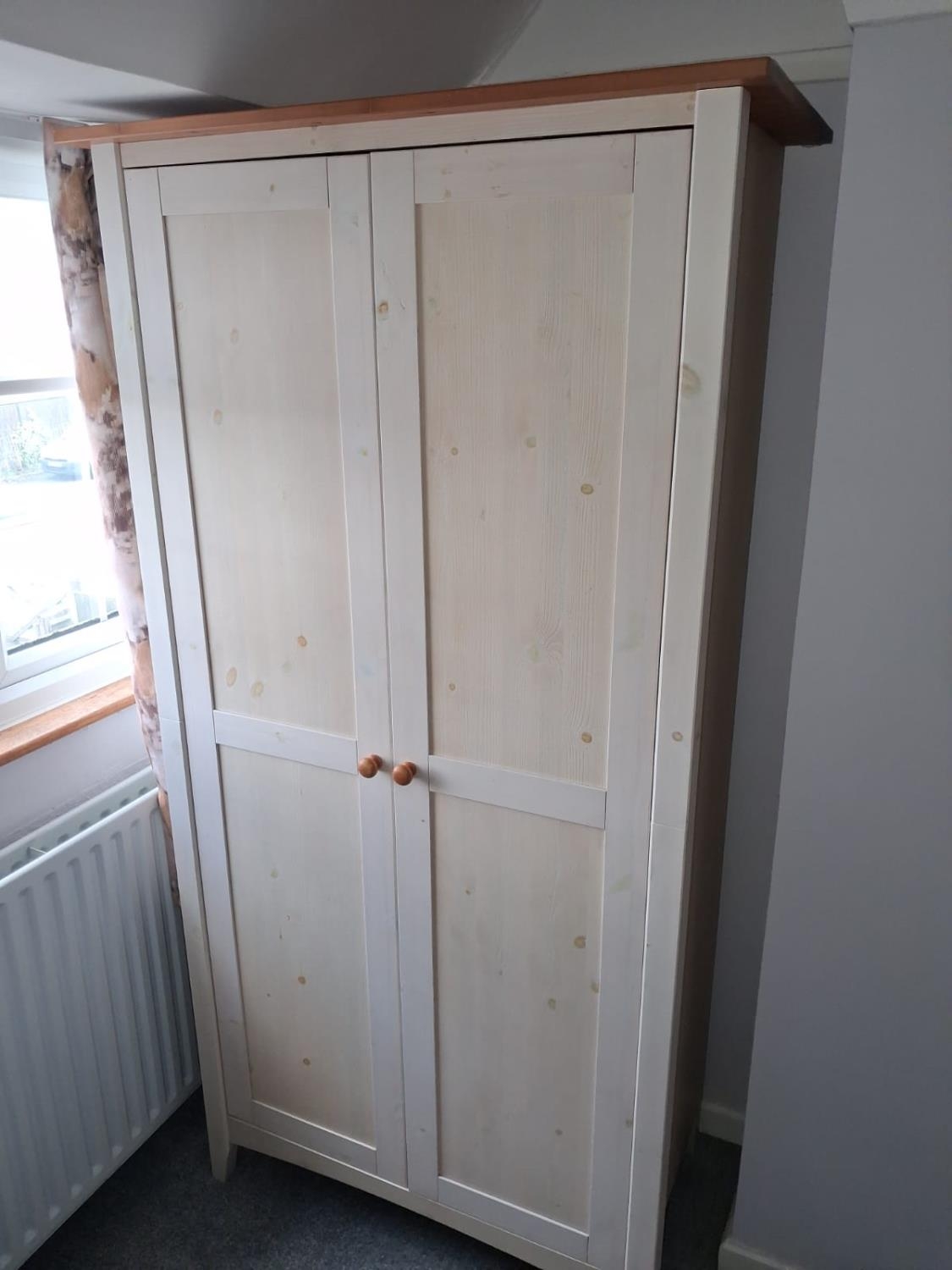 2 Door Pine Wardrobe In A Light Wash Finish