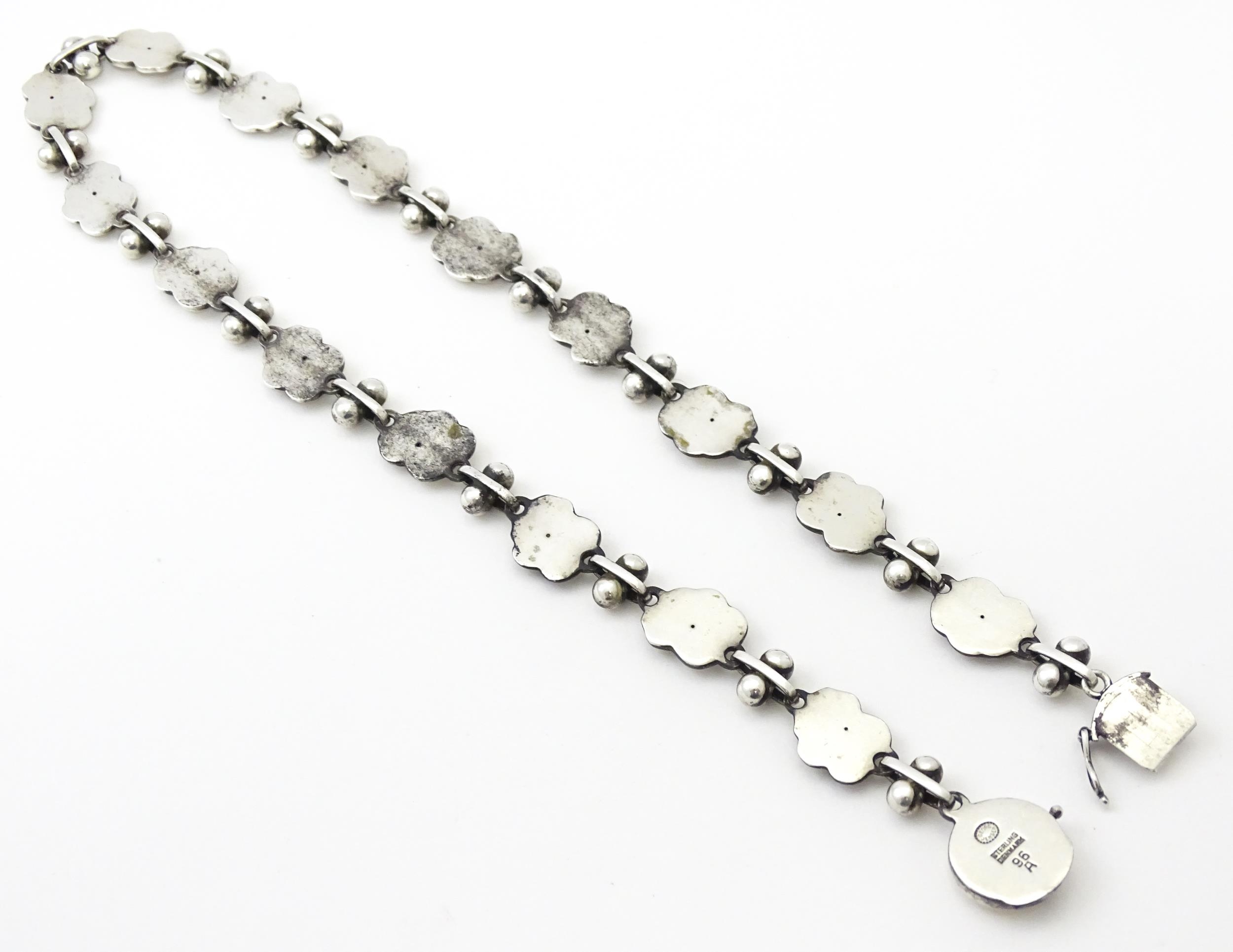 Scandinavian Silver : A Danish Georg Jensen necklace in the Moonlight Grapes pattern. Marked Georg Jensen Sterling Denmark and numbered 96A. Approx 17"long (weight approx 41g)