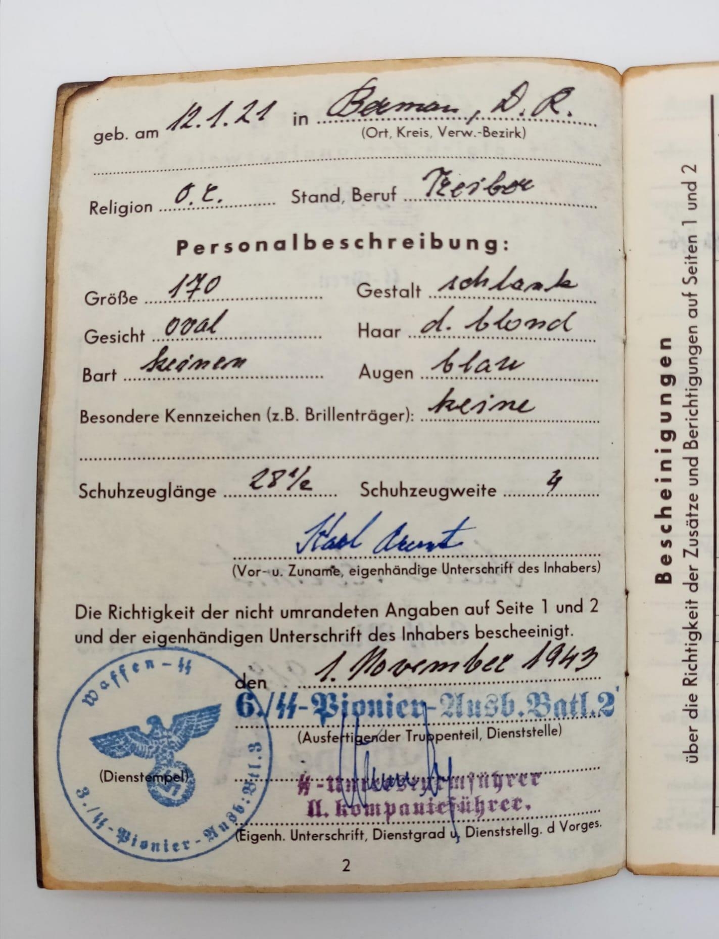 3rd Rich Waffen SS Soldbuch. Lots of entries.