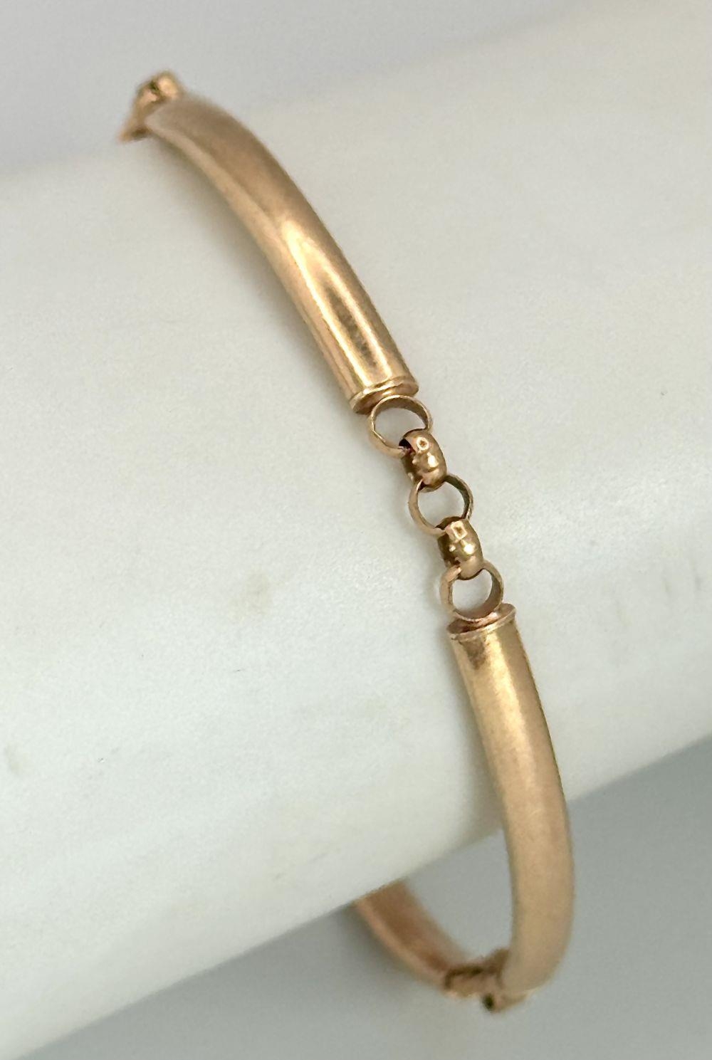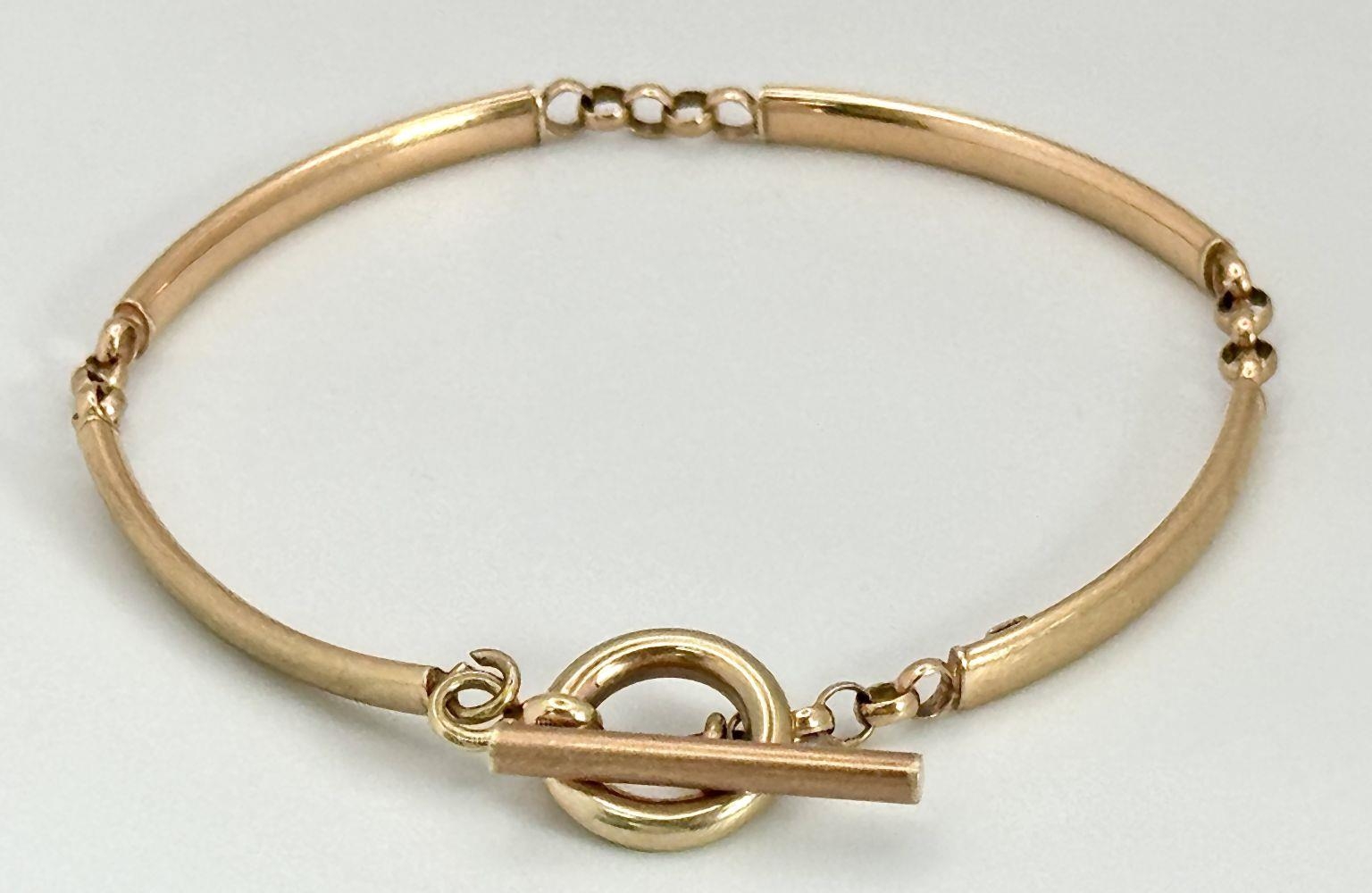 A 9K Rose Gold Bar Bracelet with T Bar Clasp. 17cm. 4.44g weight.