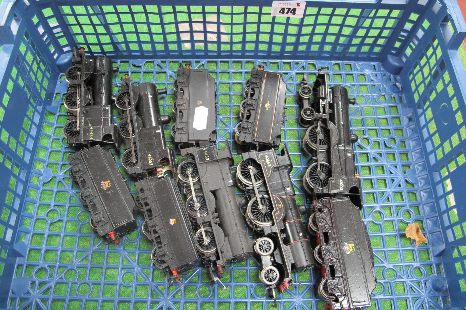 Five 'OO' Gauge/4mm Unboxed Steal Locomotives BR Black with Six Wheel Tenders, two Hornby 4-4-0 Class 2P, R/No's 40663 and 41003 (good, but over painting to 41003), and two class 3F 0-6-0. an Airfix R/No 44455 and Bachmann R/N 43257 (good, over painting noted to 44454).