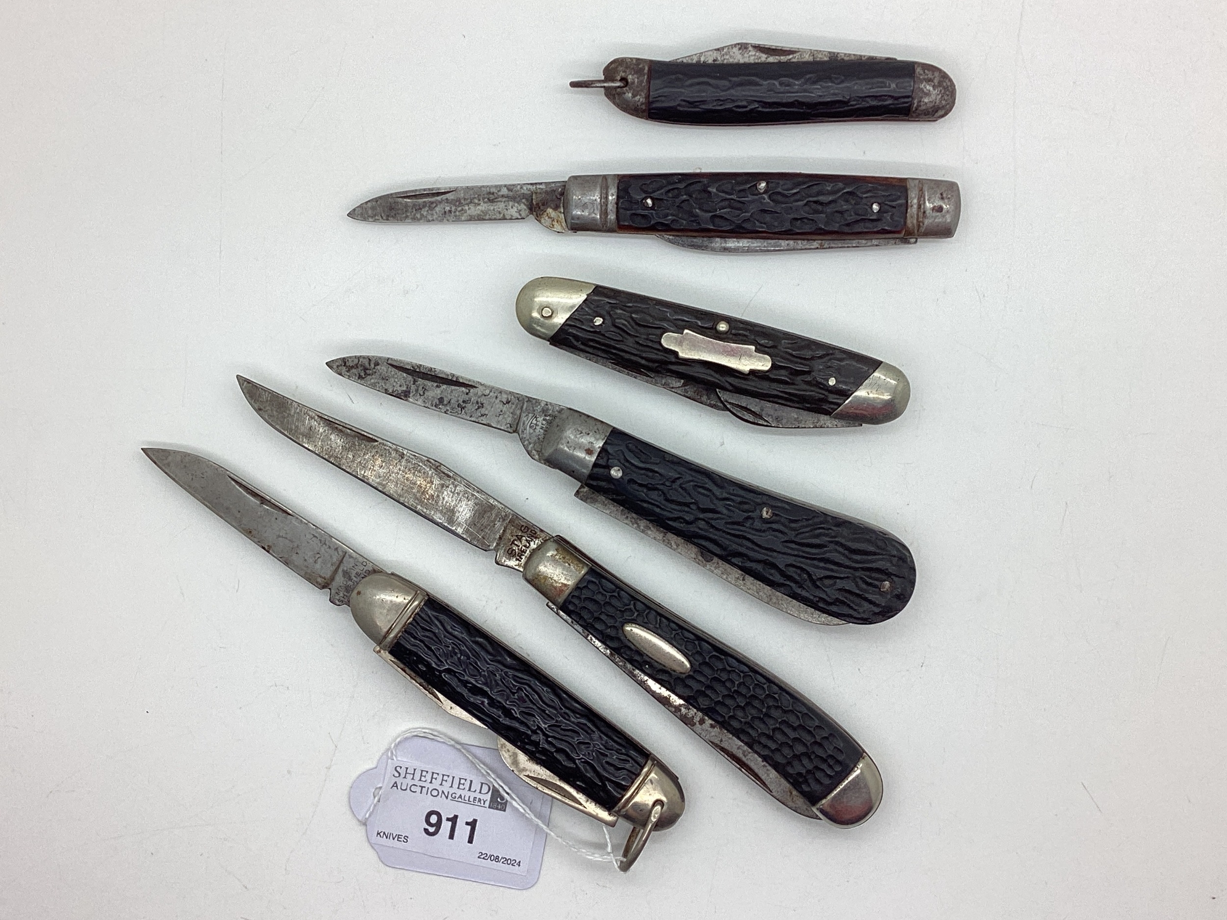 Folding Pocket Knives, including Taylors Eye Witness, Stag Ireland, Made In Sheffield, etc. (6)